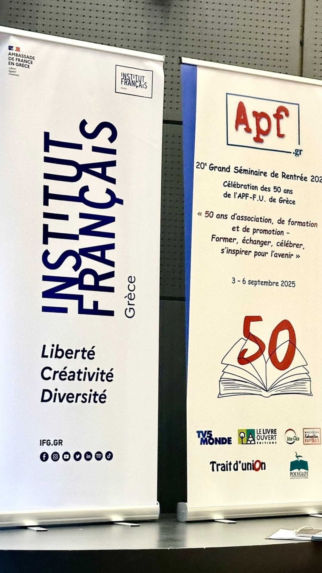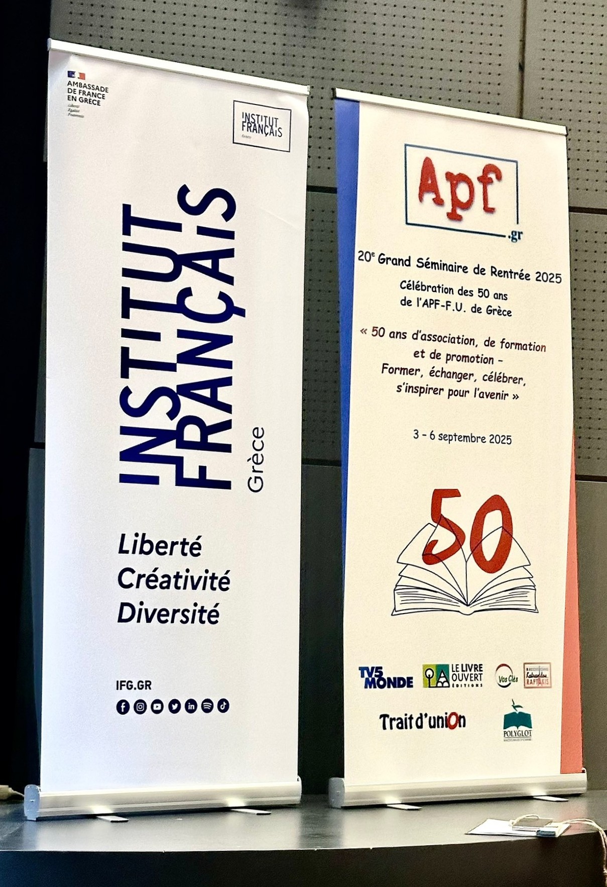 Υπό την αιγίδα του Υπουργείου Παιδείας, Θρησκευμάτων και Αθλητισμού και με αφορμή τον εορτασμό των 50 χρόνων της APF – F.U. de Grèce, το Γαλλικό Ινστιτούτο φιλοξένησε το ετήσιο συνέδριο με θέμα: