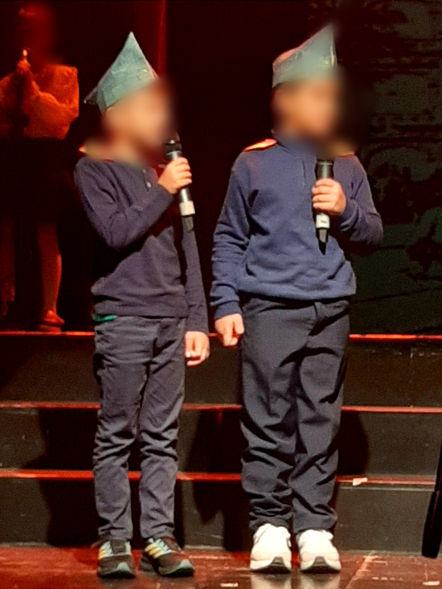 Συγχαίρω τις κυρίες Δανάη Μαξιμιάδη (Β1), Άννα Λουγιάκη (Β2), Μαρία Μαθιουδάκη (Β3), Νικόλ Πρίντεζη (Μαέστρο Χορωδίας), Ρέμη Τσέλεκα (σκηνικά και στρατιωτικά καπέλα) καθώς και τους δύο μουσικούς μας, στο πιάνο τον κ. Λυσίμαχο Ζαρίφη και στην κλασική κιθάρα τον κ. Βασίλη Γιώτη, για την άρτια παρουσίαση της όλης Γιορτής.