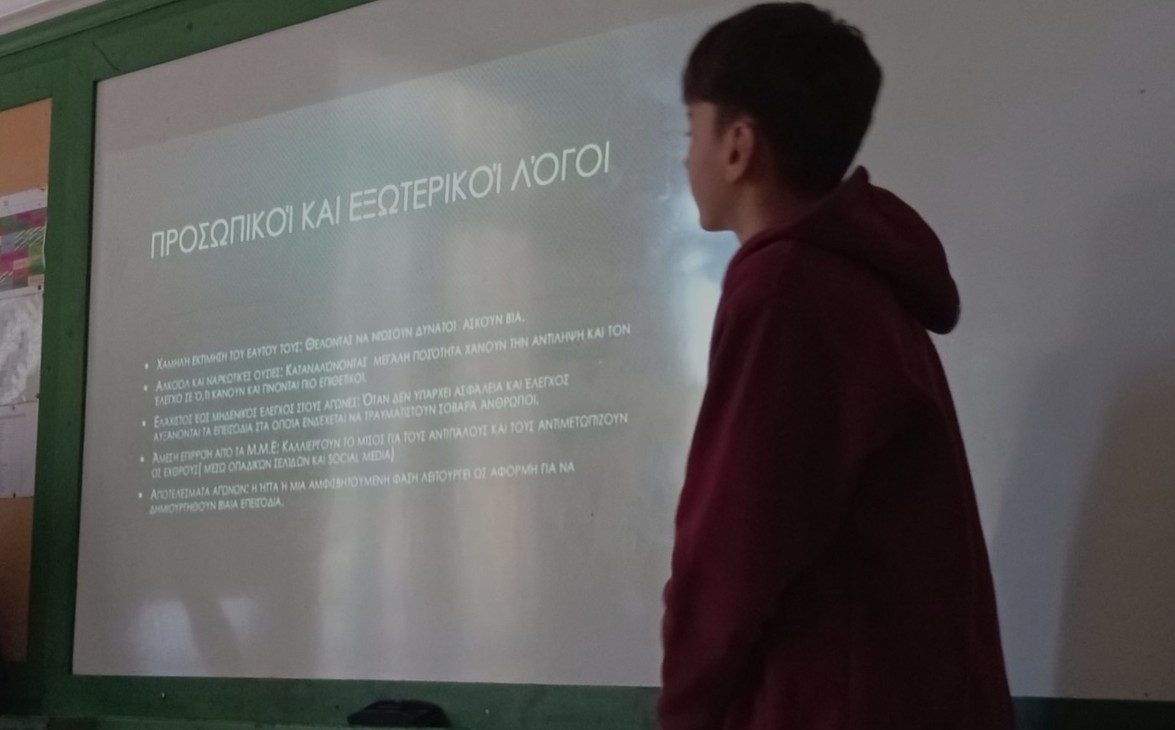 Έμφυλη βία, ανεργία, χουλιγκανισμός, ρατσισμός, σχολικός εκφοβισμός — θέματα που μας αφορούν όλους. Τα παιδιά τα προσέγγισαν με ωριμότητα, συνεργάστηκαν, προβληματίστηκαν και μοιράστηκαν σκέψεις και προτάσεις.
