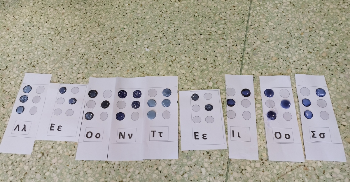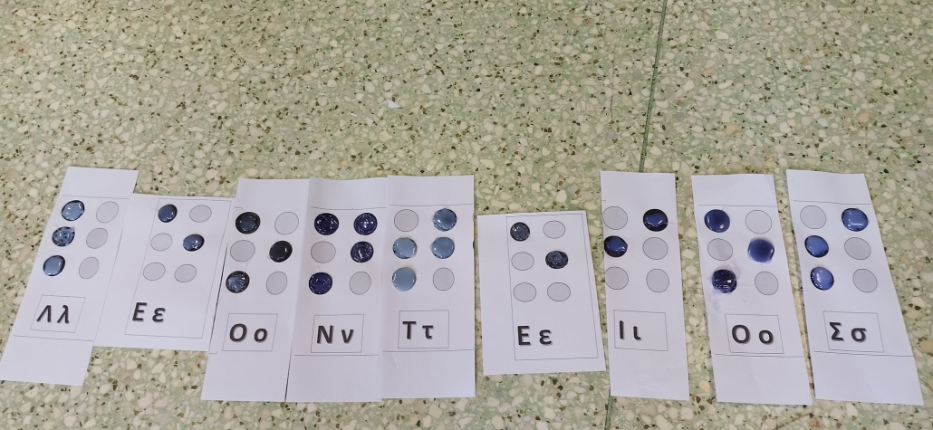 Σε δεύτερη φάση προσπάθησαν και γνώρισαν μέσω βιωματικών δράσεων και τη χρήση των αισθήσεών τους, και συγκεκριμένα της αφής, το ελληνικό αλφάβητο της γραφής Braille, μέσα από κατασκευές που έφτιαξαν οι ίδιοι, με στόχο να νιώσουν και να έρθουν πιο κοντά τους τυφλούς συνανθρώπους τους...