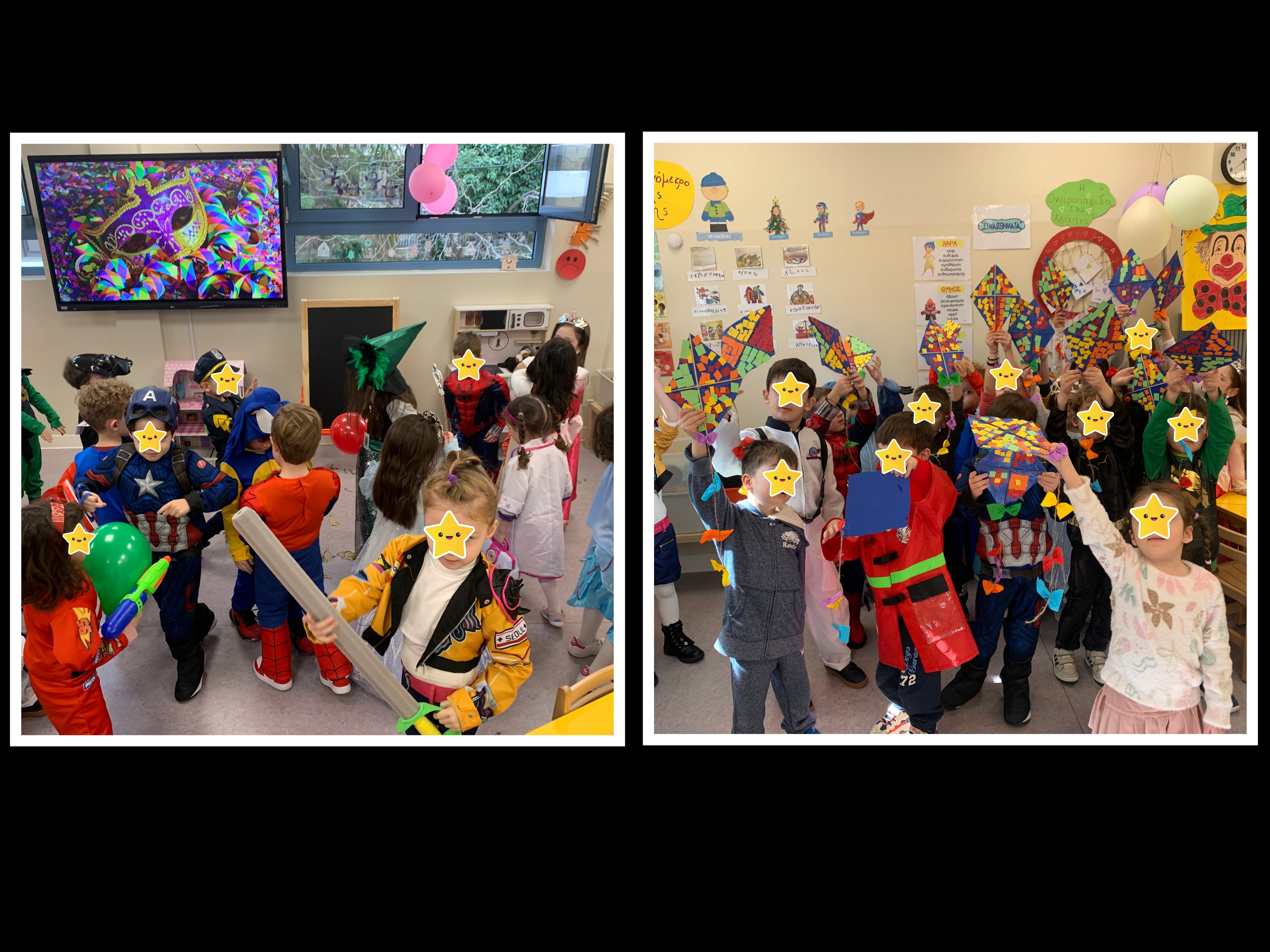 Στο Διαμαντίδειο Νηπιαγωγείο της Λεοντείου Σχολής Αθηνών γιορτάσαμε τις Απόκριες με μεγάλη χαρά και ενθουσιασμό. Τα παιδιά ήρθαν ντυμένα με όμορφες και πολύχρωμες στολές, γεμάτα χαμόγελα και ανυπομονησία. Στην τάξη κάναμε ένα όμορφο αποκριάτικο πάρτυ, χορέψαμε, παίξαμε παιχνίδια και διασκεδάσαμε όλοι μαζί. Στη συνέχεια, παρακολουθήσαμε μια πολύ ωραία παράσταση που μας εντυπωσίασε και μας χάρισε γέλιο και χαρά. Ήταν μια ξεχωριστή μέρα που θα θυμόμαστε με αγάπη!!!