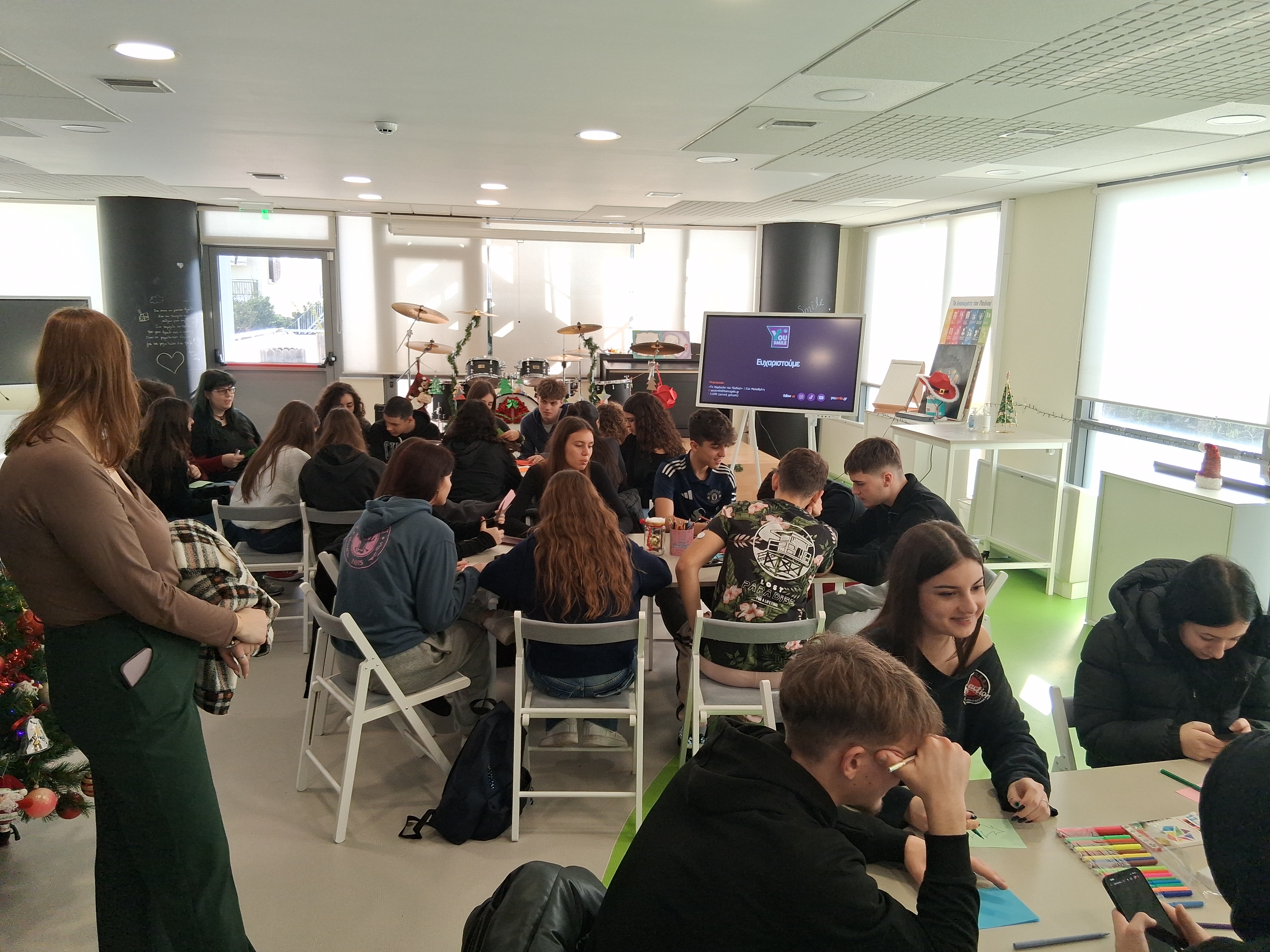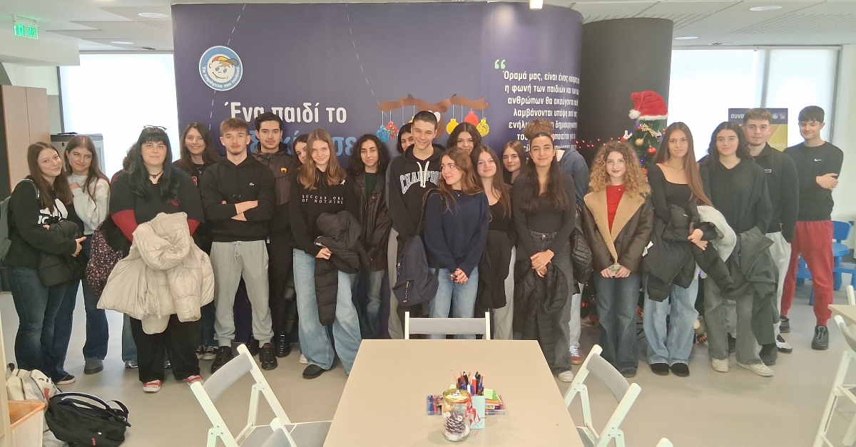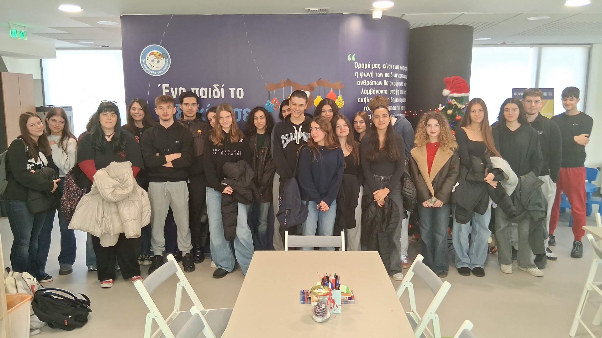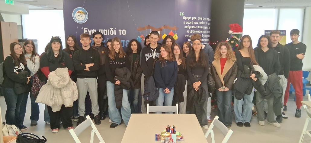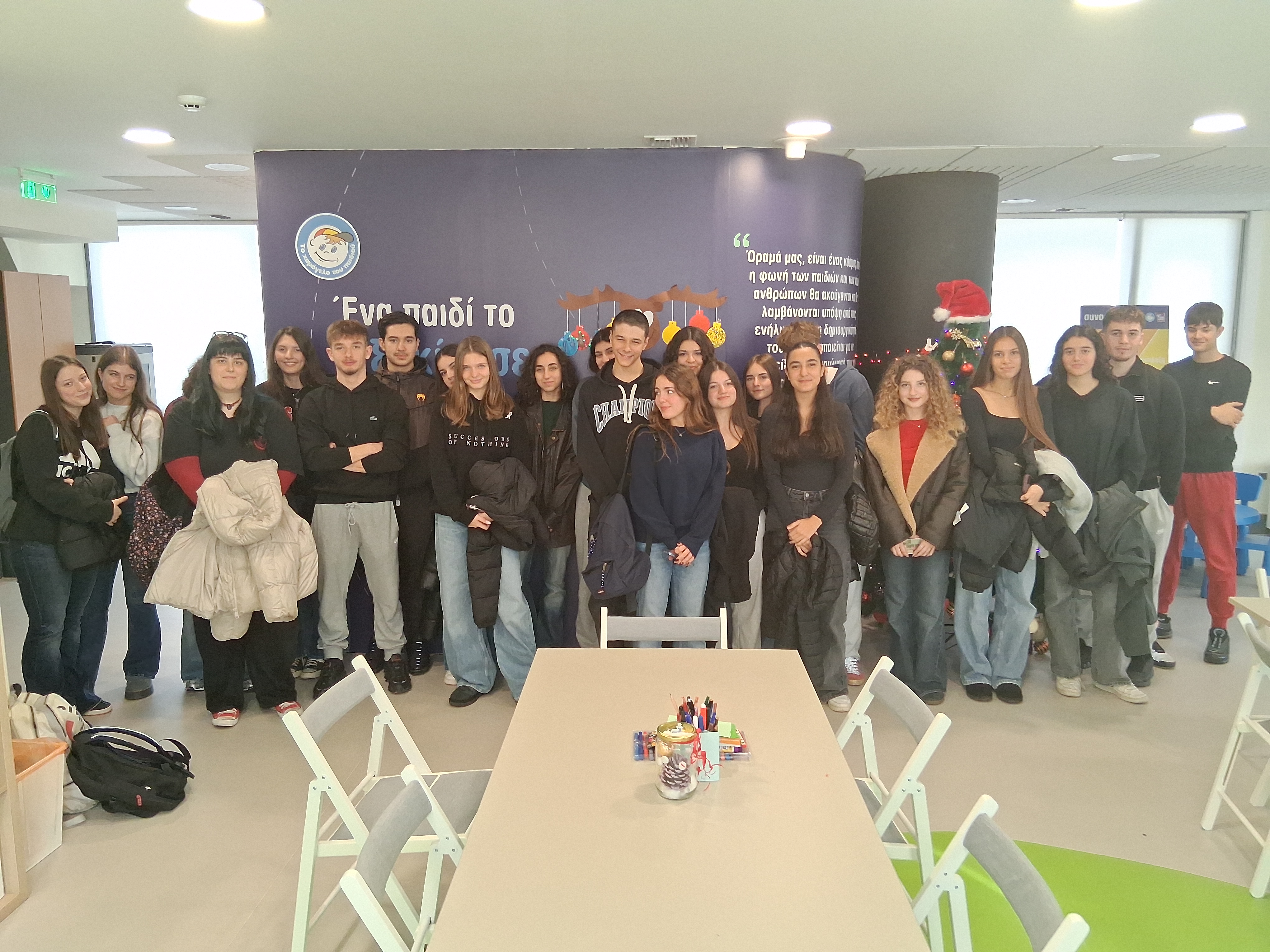 Τη Δευτέρα 8 Δεκεμβρίου 2025 πραγματοποιήθηκε η 2η επίσκεψη μαθητών και μαθητριών μας στο ΄΄ΧΑΜΟΓΕΛΟ ΤΟΥ ΠΑΙΔΙΟΥ΄΄ στις κεντρικές εγκαταστάσεις του στην Αγία Παρασκευή στο πλαίσιο του προγράμματος εθελοντισμού του σχολείου μας. Οι μαθητές και οι μαθήτριες της δεύτερης ομάδας είχαν και αυτοί/-τές την ευκαιρία να γνωρίσουν από κοντά τους χώρους του ΧΑΜΟΓΕΛΟΥ ΤΟΥ ΠΑΙΔΙΟΥ΄΄, να δουν πώς λειτουργεί η τηλεφωνική γραμμή 1056 και να ενημερωθούν για τα προγράμματα εθελοντισμού και δράσεων του προγράμματος ΄΄YOU SMILE΄΄ και ΄΄ΜΙΛΑ ΤΩΡΑ΄΄, προκειμένου να συμμετάσχουν σε κάποιο από αυτά. Παράλληλα, όπως και την προηγούμενη φορά οι μαθητές μας έφτιαξαν κάρτες για τα παιδιά του ΧΑΜΟΓΕΛΟΥ ΤΟΥ ΠΑΙΔΙΟΥ, που για διάφορους λόγους νοσηλεύονται σε νοσοκομεία. Στην επίσκεψη παραβρέθηκε και η Κοινωνιολόγος και Διευθύντρια του Κέντρου Μελέτης ΄΄ΚΑΡΔΙΑ ΧΩΡΙΣ ΣΥΝΟΡΑ΄΄ κ. Μπρούνα, την οποία ευχαριστούμε θερμά για την παρουσία της στη συγκεκριμένη δράση.