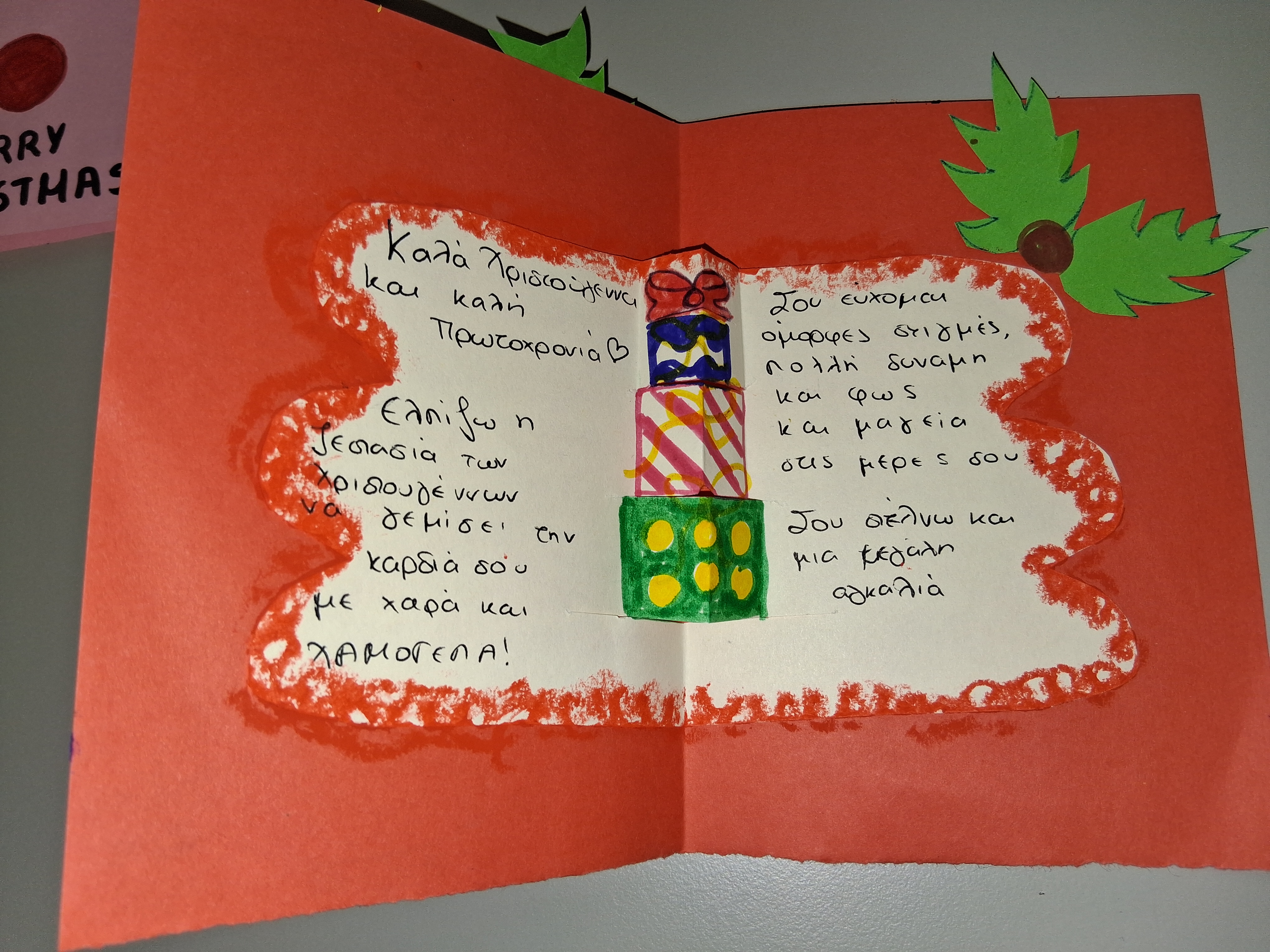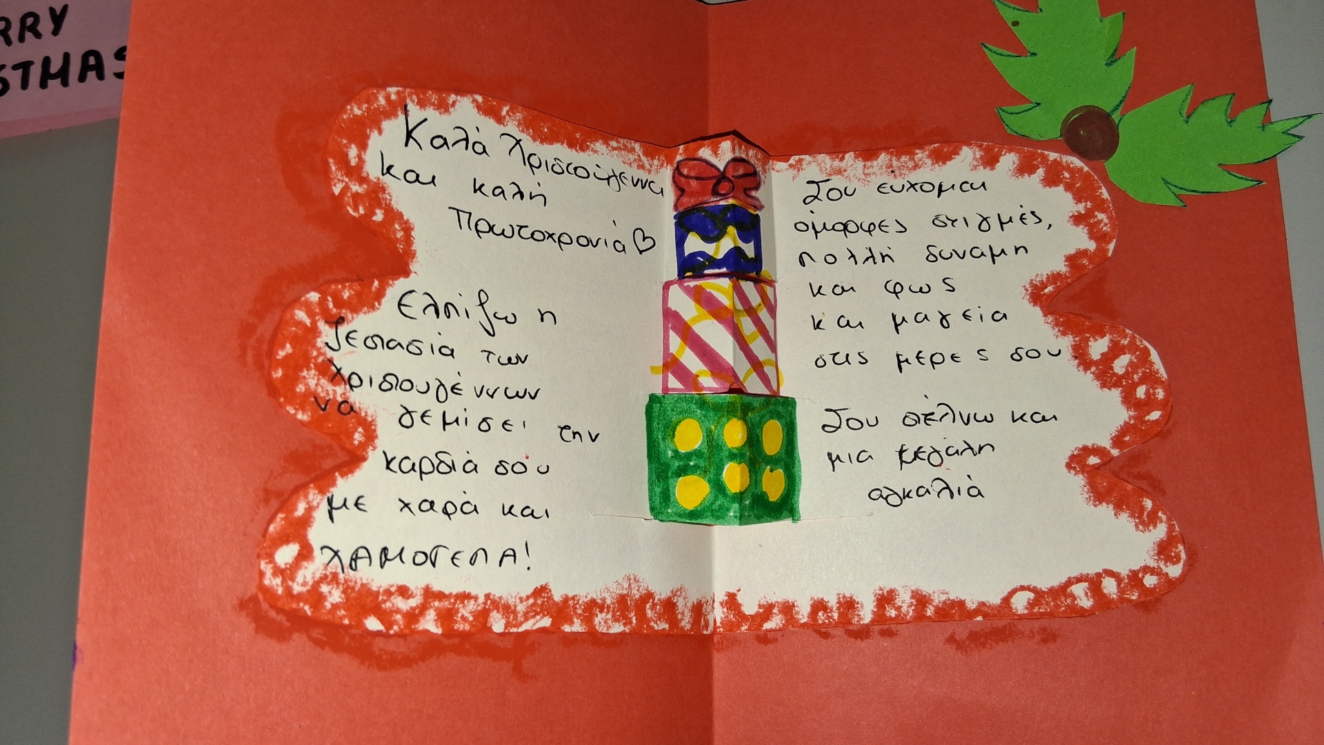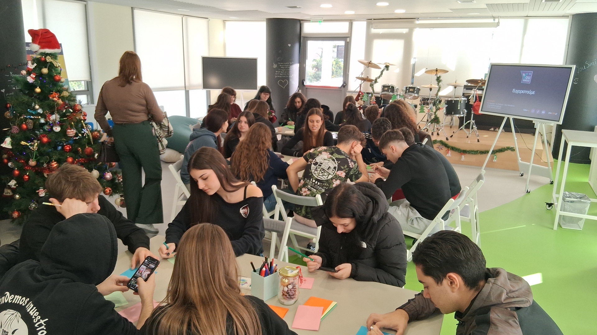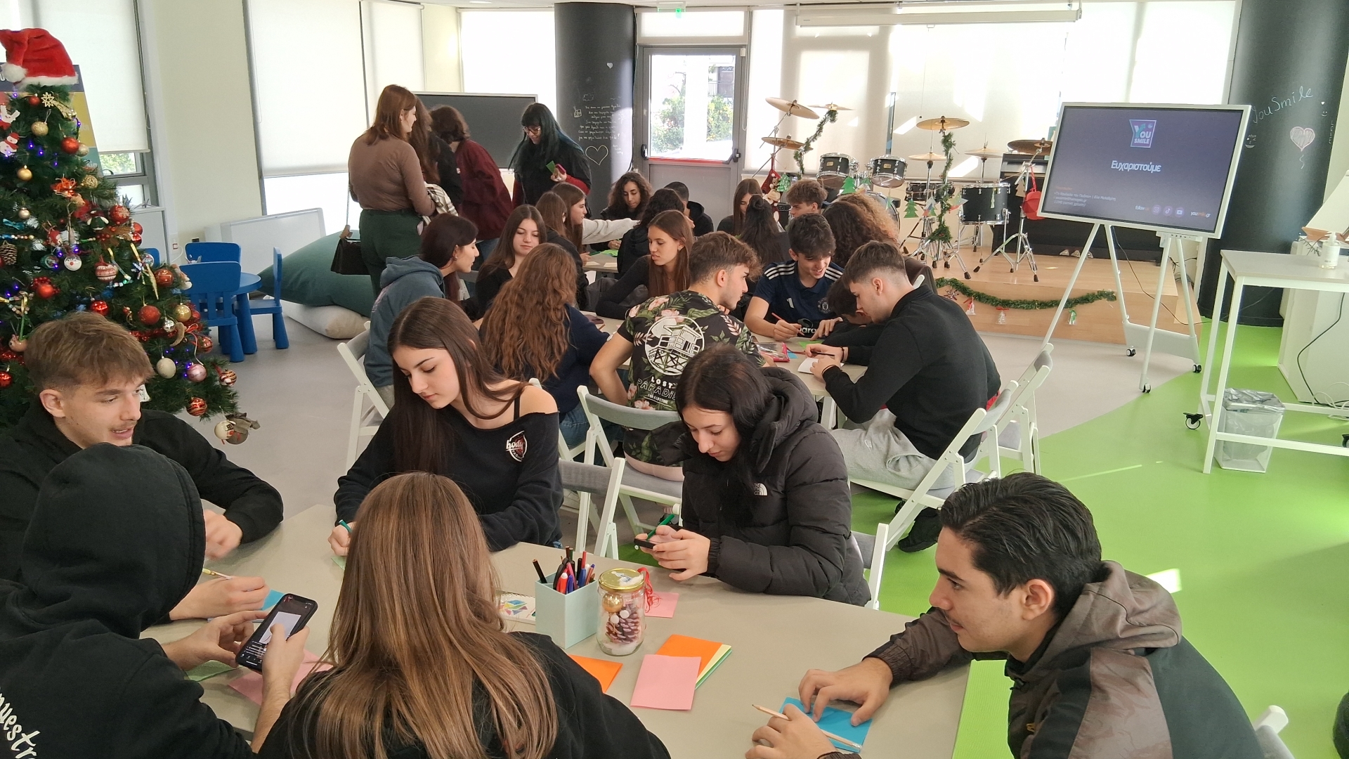 Τη Δευτέρα 8 Δεκεμβρίου 2025 πραγματοποιήθηκε η 2η επίσκεψη μαθητών και μαθητριών μας στο ΄΄ΧΑΜΟΓΕΛΟ ΤΟΥ ΠΑΙΔΙΟΥ΄΄ στις κεντρικές εγκαταστάσεις του στην Αγία Παρασκευή στο πλαίσιο του προγράμματος εθελοντισμού του σχολείου μας. Οι μαθητές και οι μαθήτριες της δεύτερης ομάδας είχαν και αυτοί/-τές την ευκαιρία να γνωρίσουν από κοντά τους χώρους του ΧΑΜΟΓΕΛΟΥ ΤΟΥ ΠΑΙΔΙΟΥ΄΄, να δουν πώς λειτουργεί η τηλεφωνική γραμμή 1056 και να ενημερωθούν για τα προγράμματα εθελοντισμού και δράσεων του προγράμματος ΄΄YOU SMILE΄΄ και ΄΄ΜΙΛΑ ΤΩΡΑ΄΄, προκειμένου να συμμετάσχουν σε κάποιο από αυτά. Παράλληλα, όπως και την προηγούμενη φορά οι μαθητές μας έφτιαξαν κάρτες για τα παιδιά του ΧΑΜΟΓΕΛΟΥ ΤΟΥ ΠΑΙΔΙΟΥ, που για διάφορους λόγους νοσηλεύονται σε νοσοκομεία. Στην επίσκεψη παραβρέθηκε και η Κοινωνιολόγος και Διευθύντρια του Κέντρου Μελέτης ΄΄ΚΑΡΔΙΑ ΧΩΡΙΣ ΣΥΝΟΡΑ΄΄ κ. Μπρούνα, την οποία ευχαριστούμε θερμά για την παρουσία της στη συγκεκριμένη δράση.