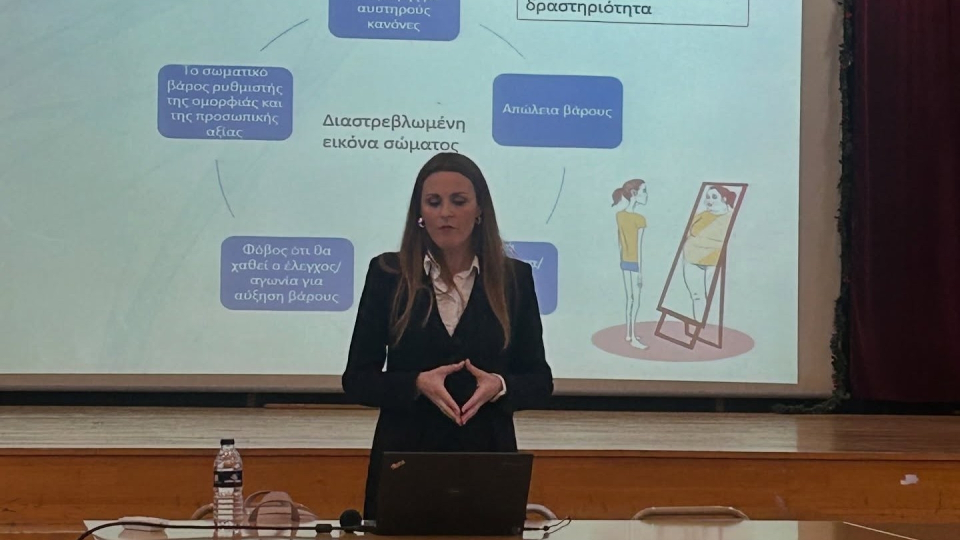 Καταστάσεις όπως η νευρική ανορεξία, η βουλιμία και η υπερφαγία δεν σχετίζονται μόνο με το φαγητό, αλλά —όπως τόνισε η προσκεκλημένη— με την αυτοεκτίμηση, την εικόνα σώματος και την ψυχική υγεία.