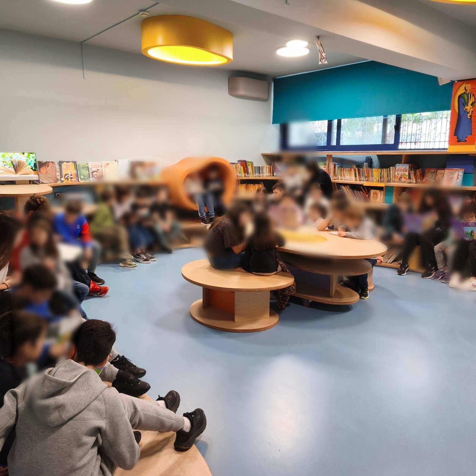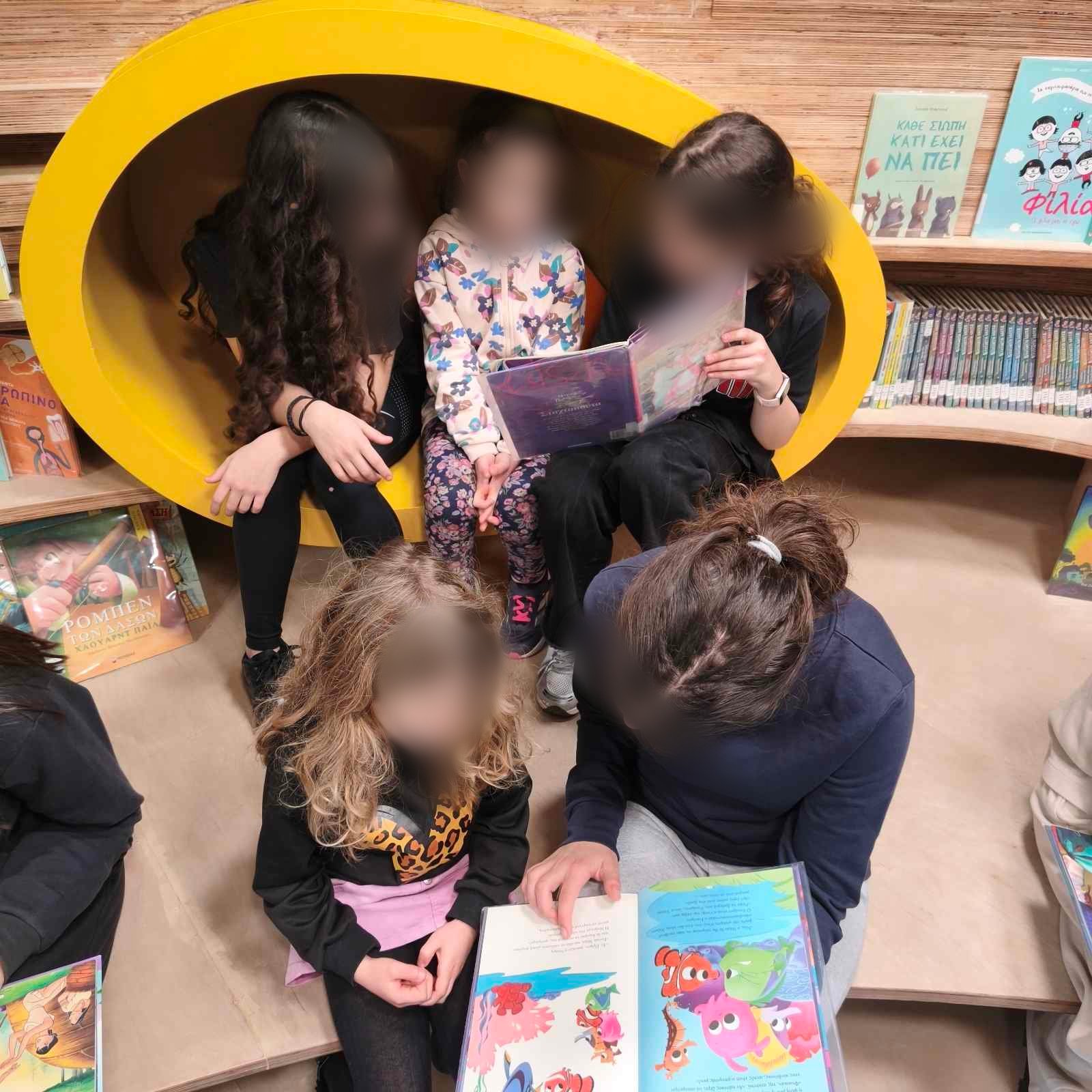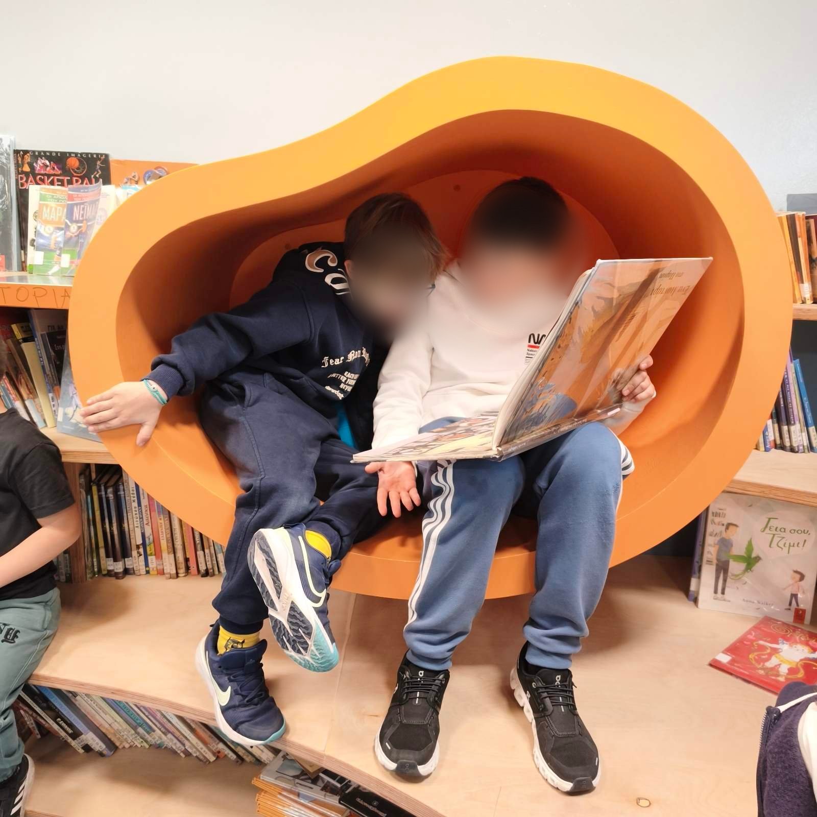 Μικροί και μεγάλοι καθισμένοι ανά ζευγάρια ανάμεσα στα βιβλία, μοιράστηκαν την εμπειρία της ανάγνωσης.