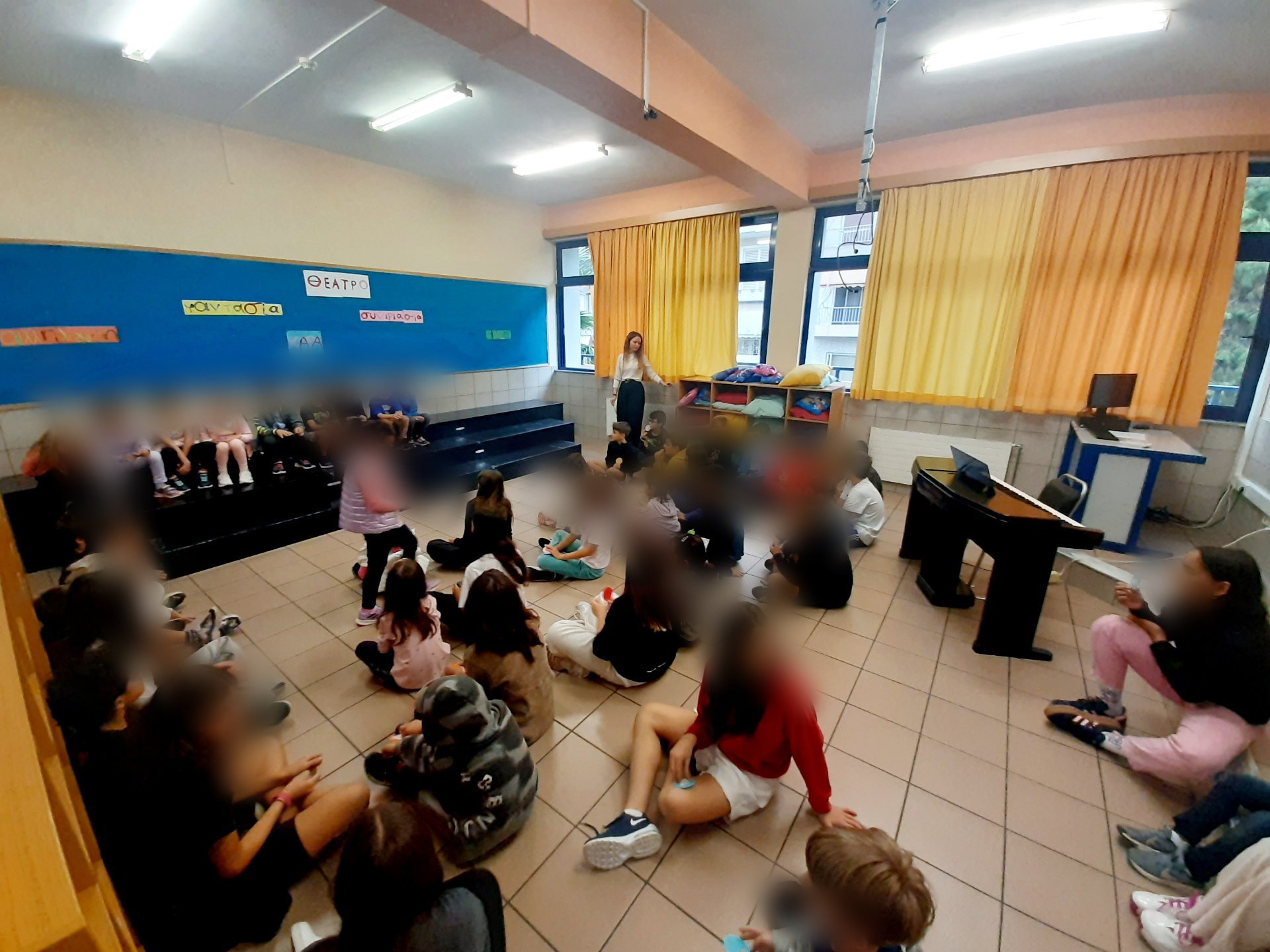 Τη Δευτέρα, 6 Οκτωβρίου, μια όμορφη έκπληξη περίμενε τους μαθητές και τις μαθήτριες της Α δημοτικού στο προαύλιο του σχολείου μας, καθώς πραγματοποιήθηκε η πρώτη συνάντησή τους με τα παιδιά της Στ στο πλαίσιο της δράσης αδελφοποίησης που υλοποιείται κάθε χρόνο. Μέσα από ένα παιχνίδι γνωριμίας δημιουργήθηκαν ζευγάρια μεταξύ μικρών και μεγάλων, τα οποία συνομίλησαν για λίγη ώρα και στη συνέχεια εξέφρασαν το πιο έντονο συναίσθημα που τους προκάλεσε η παιγνιώδης δράση.