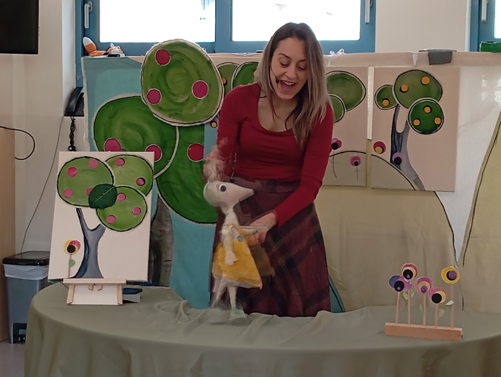 Η ομάδα "Παραμύθι χώρας" παρουσίασε τον μύθο του Αισώπου μέσα από μια παράσταση γεμάτη χιούμορ, χειροποίητες κούκλες και σκηνικά για την υγιεινή διατροφή, την προστασία της φύσης και τον υπερκαταναλωτισμό.