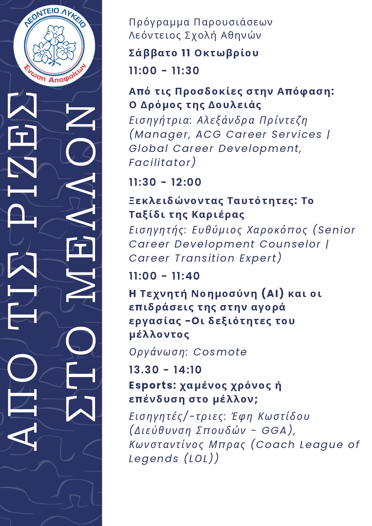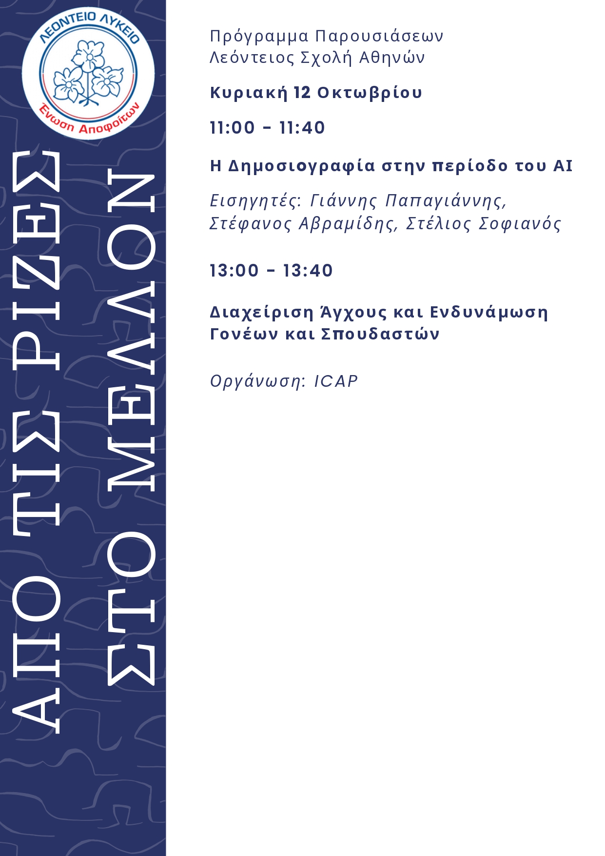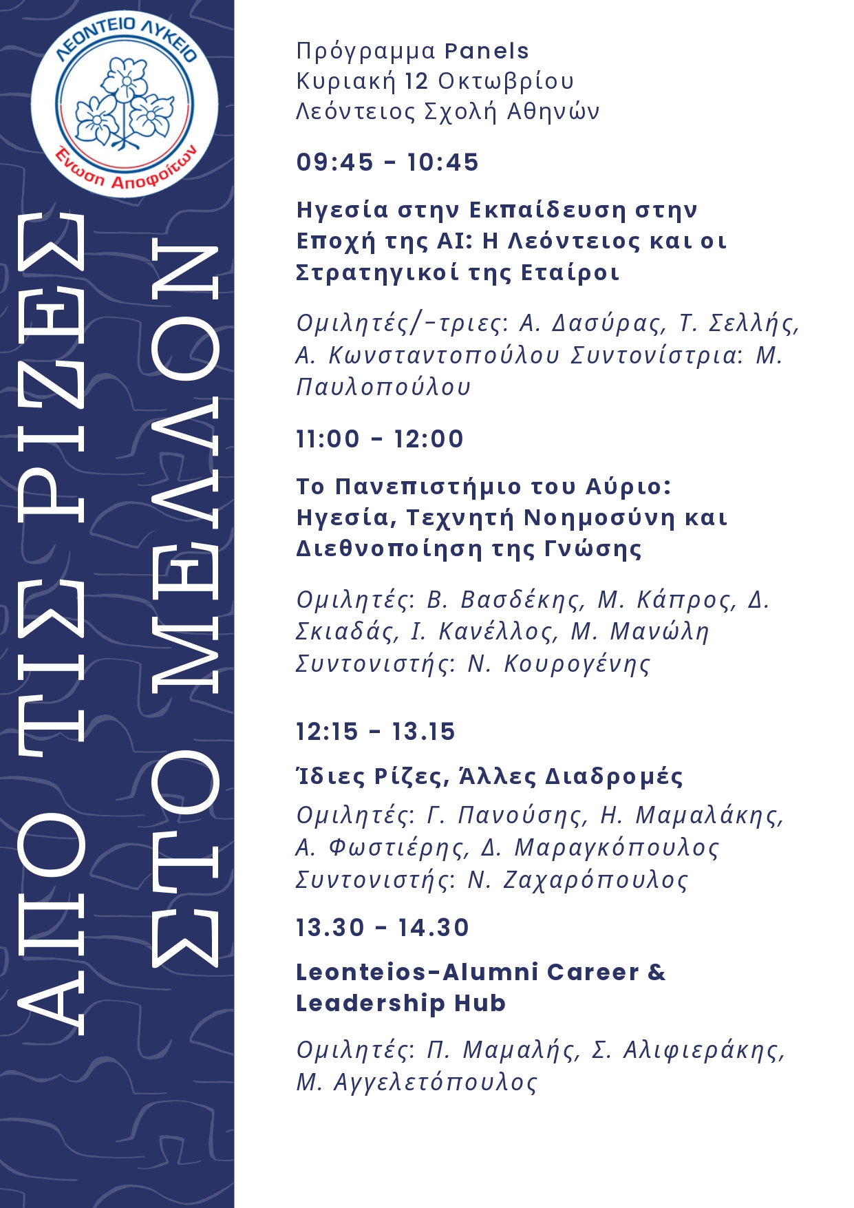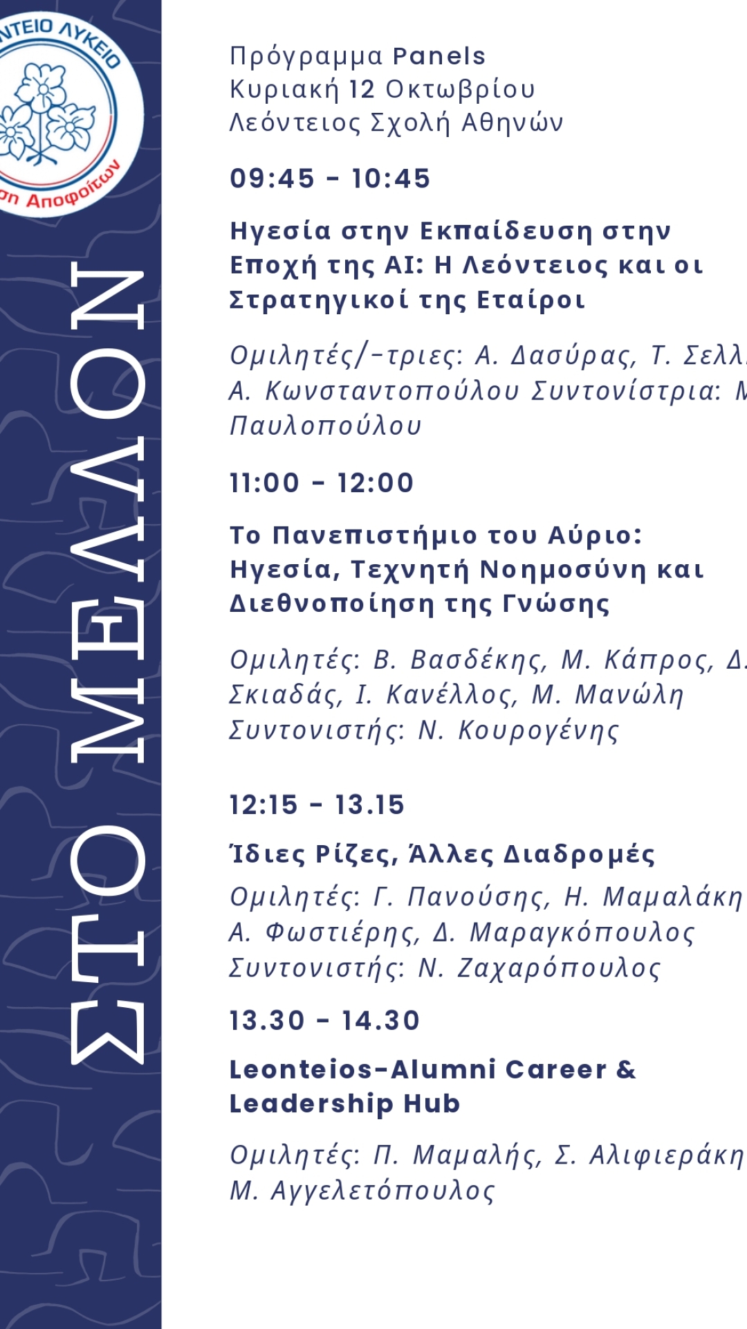 Επετειακή Εκδήλωση για τα 100 χρόνια της Ένωσης Αποφοίτων Λεοντείου Λυκείου "Από τις ρίζες στο μέλλον" 10-12 Οκτωβρίου 2025