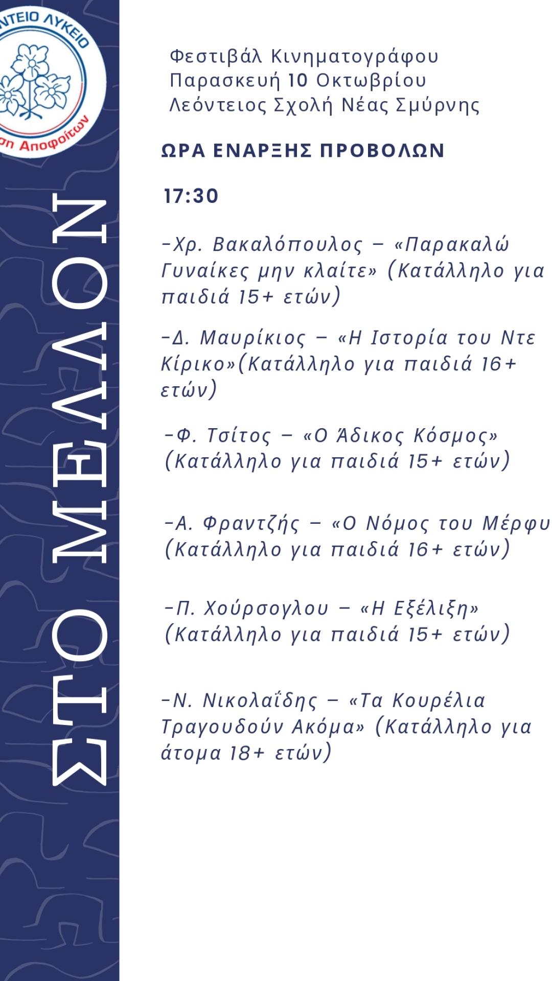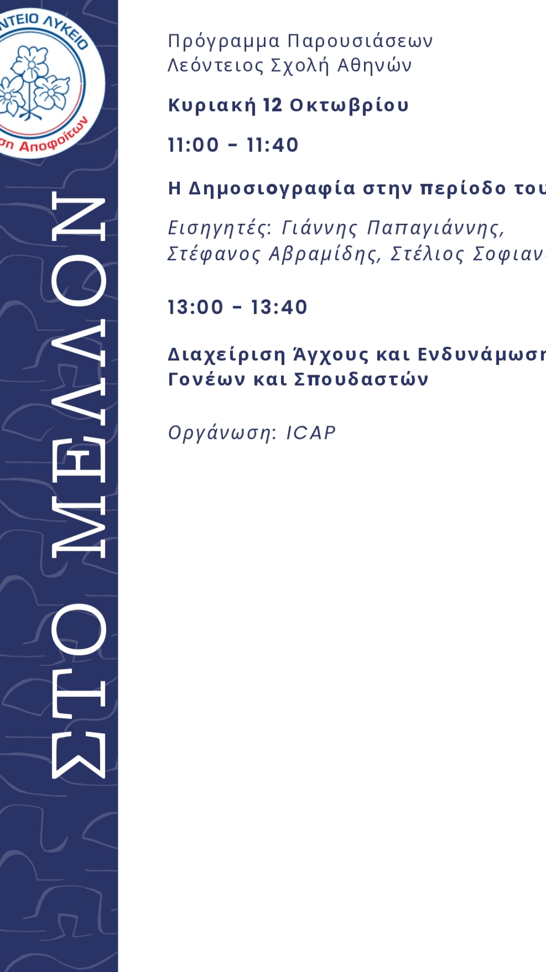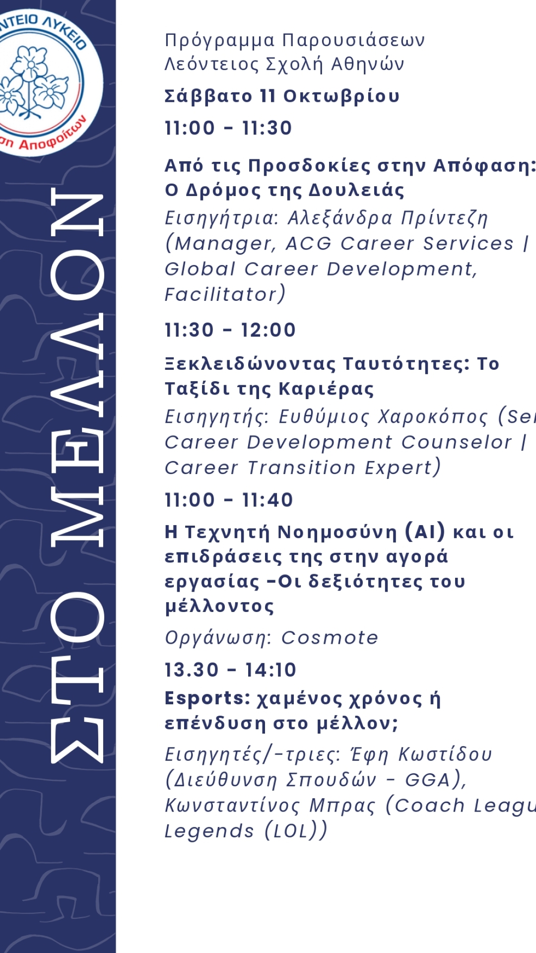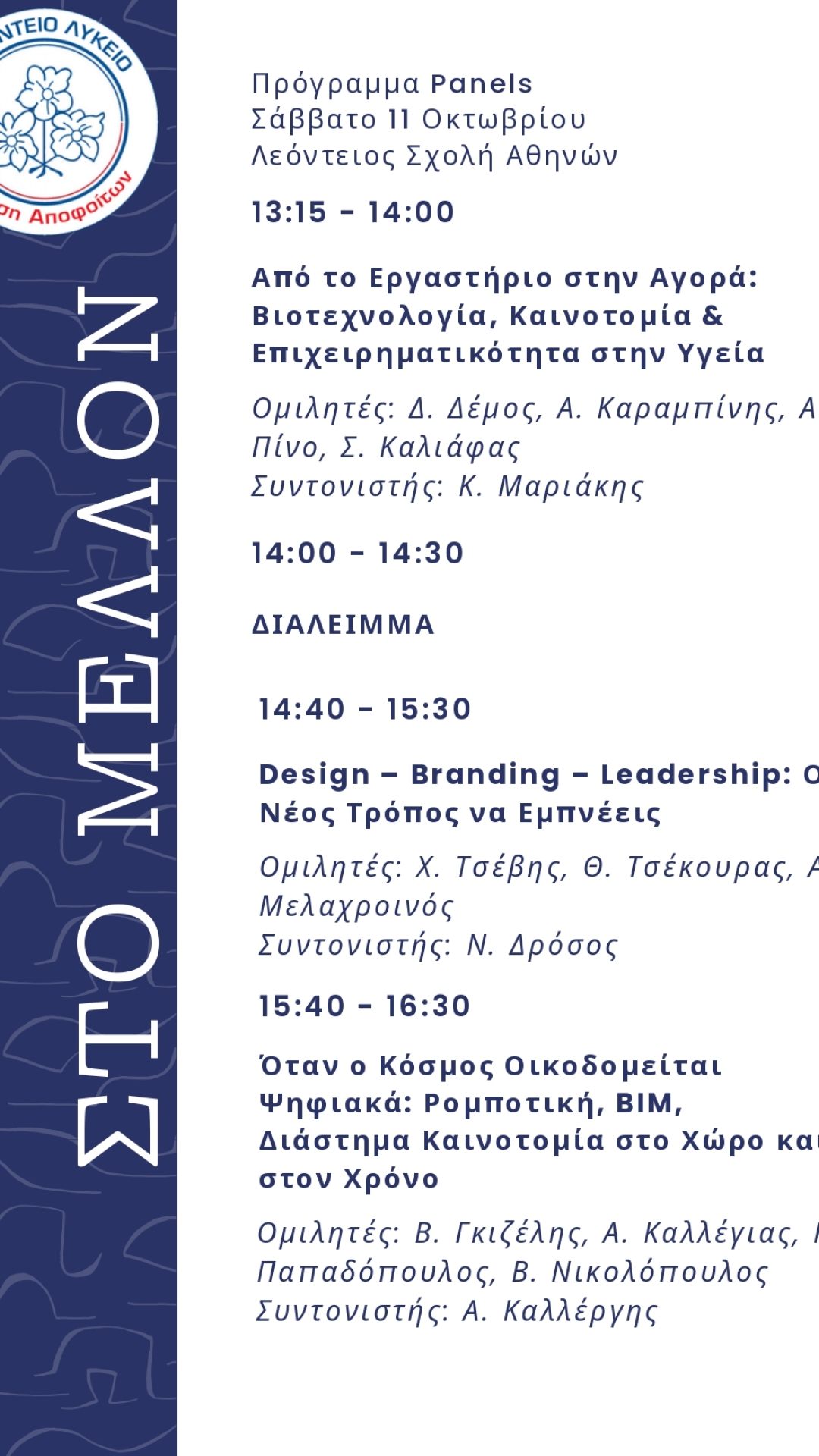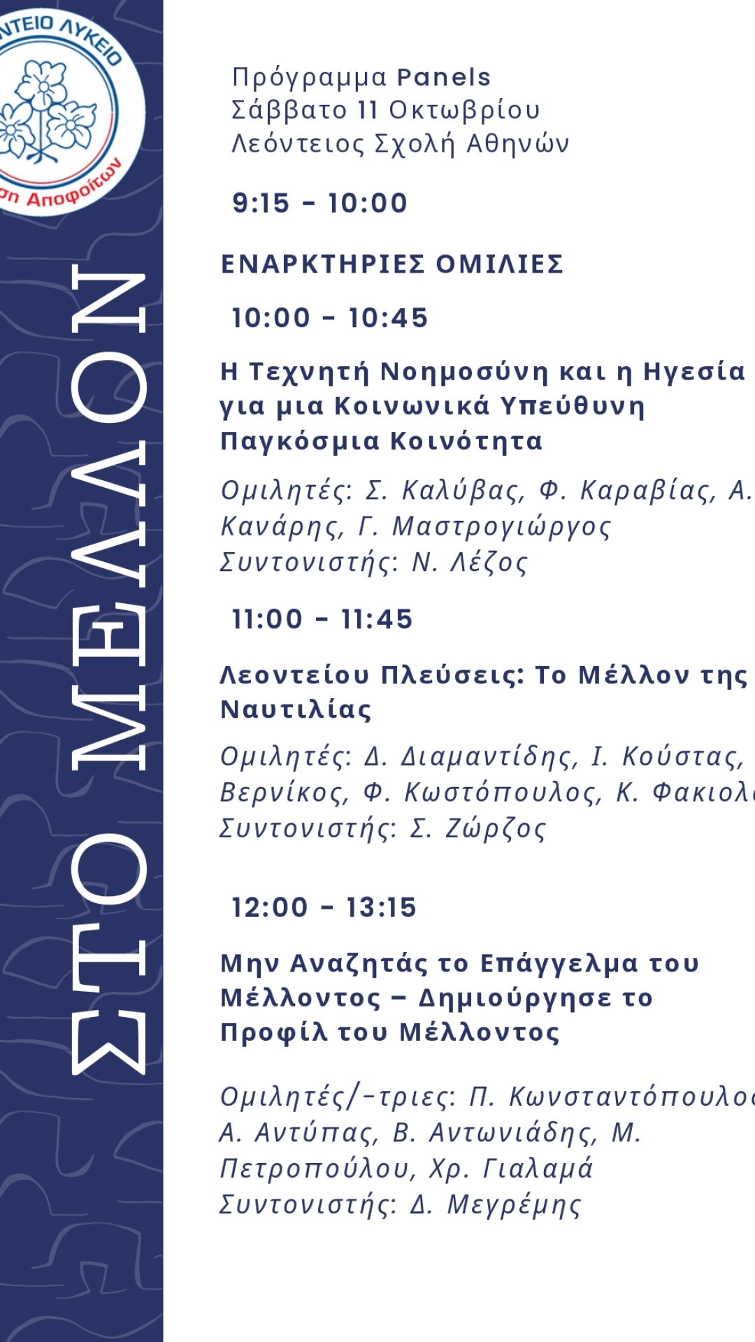 Επετειακή Εκδήλωση για τα 100 χρόνια της Ένωσης Αποφοίτων Λεοντείου Λυκείου "Από τις ρίζες στο μέλλον" 10-12 Οκτωβρίου 2025