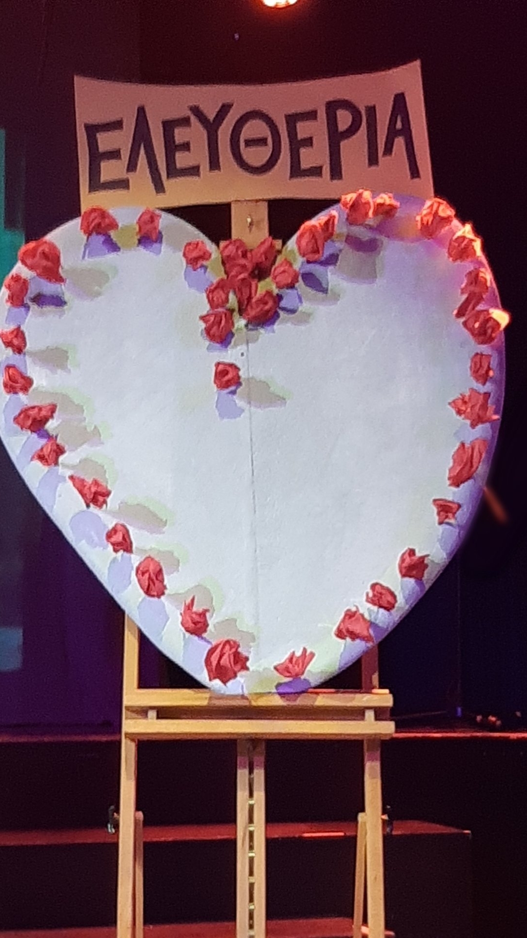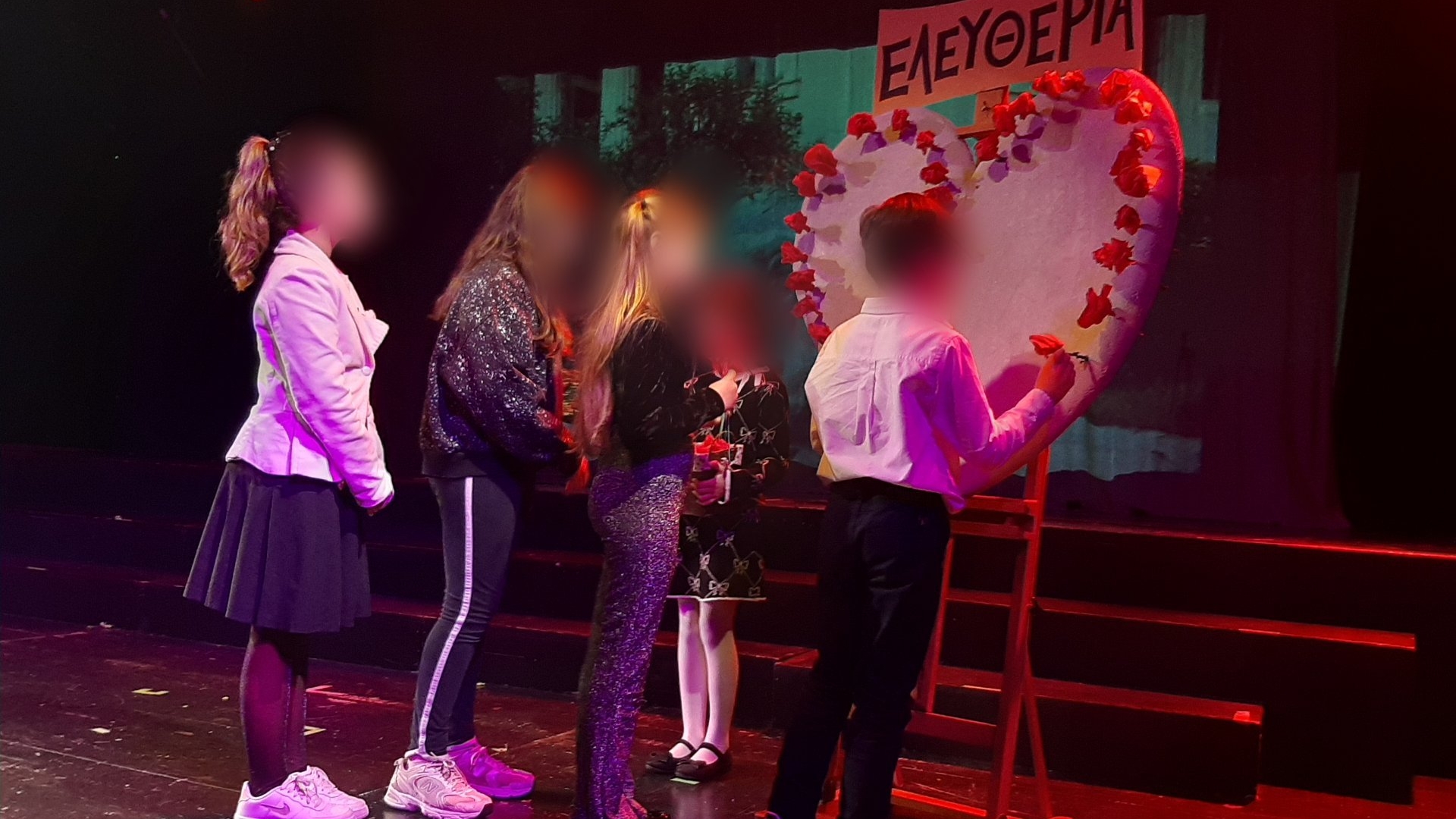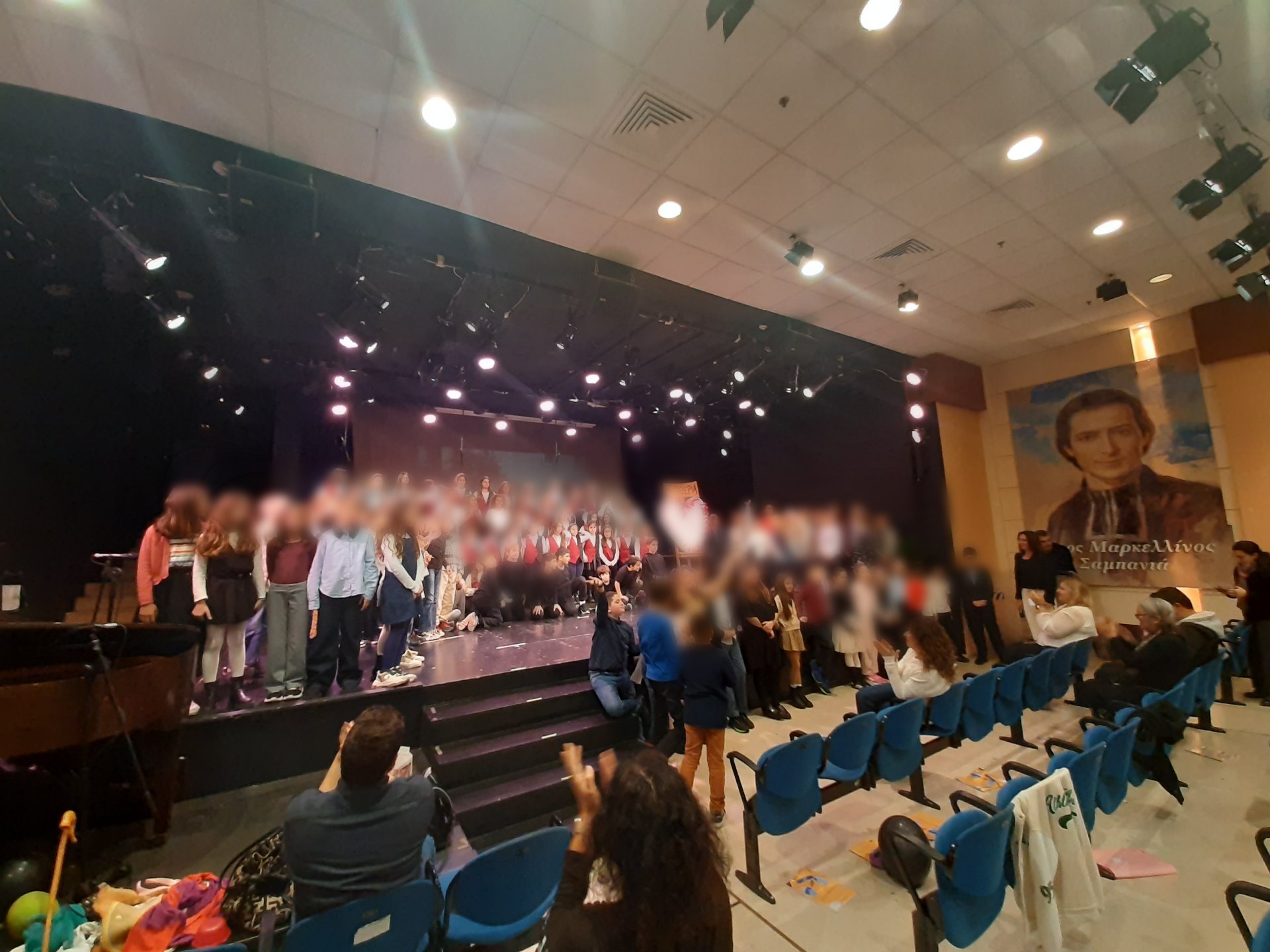 Μαθήτριες και μαθητές της Ε' τάξης με τη συνδρομή της Χορωδίας παρουσίασαν μια σπονδυλωτή και άρτια παρουσίαση όλων των γεγονότων που στιγμάτισαν ανεξίτηλα εκείνο το βράδυ της 17ης Νοέμβρη του 1973...