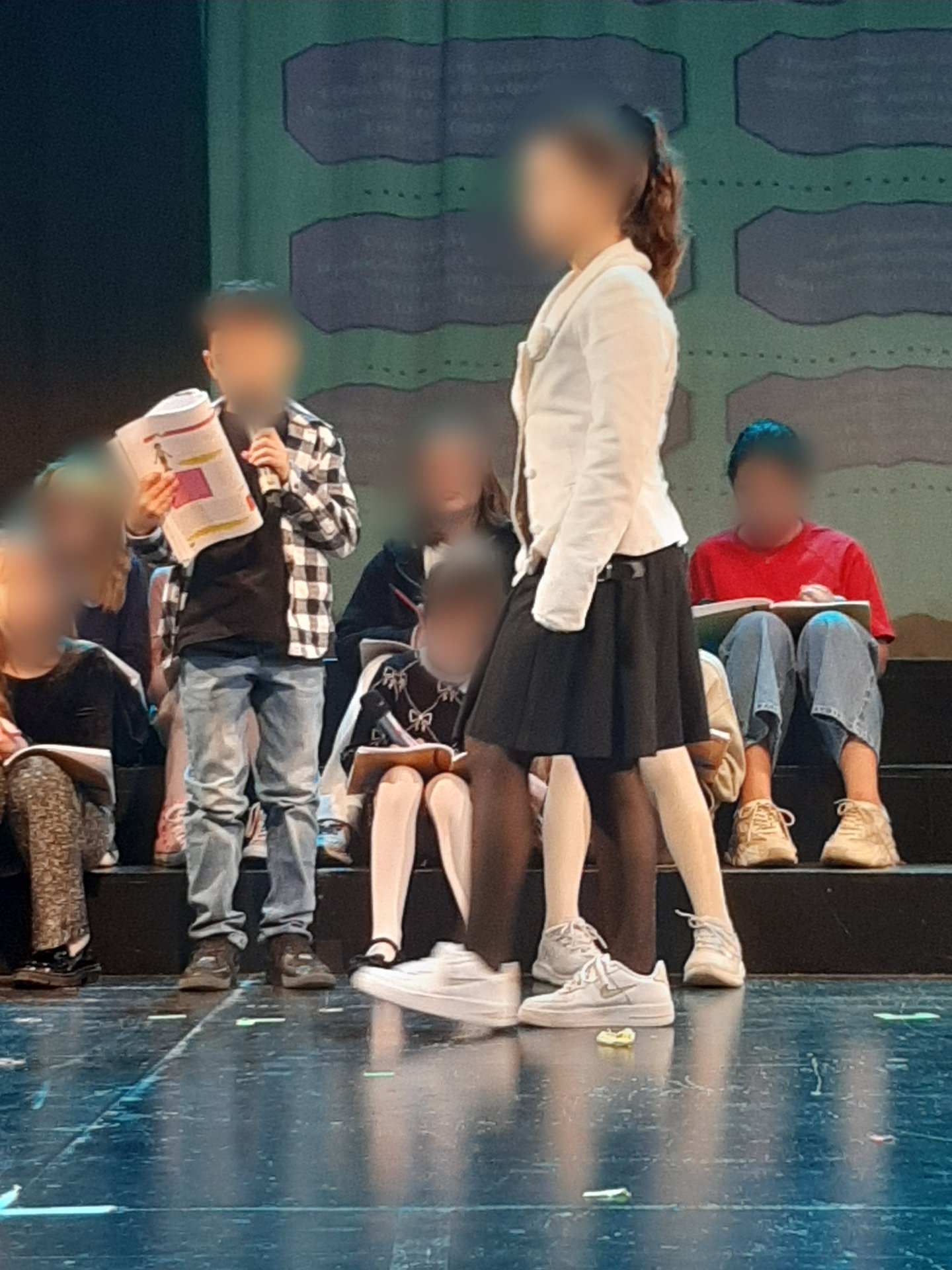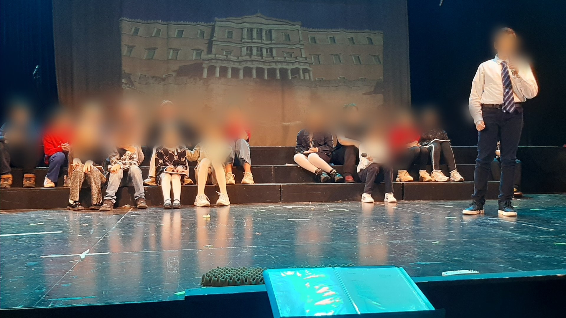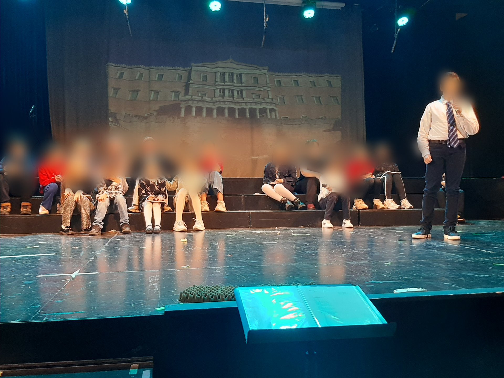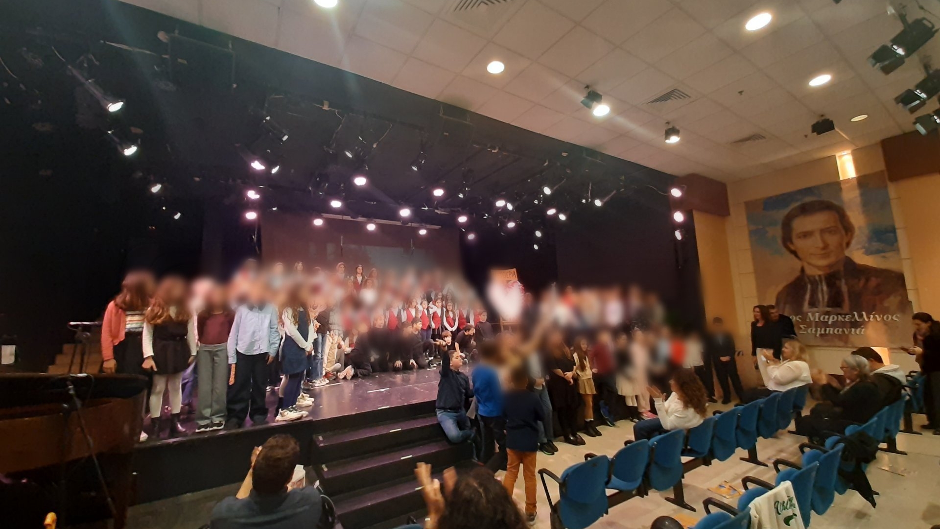 Μαθήτριες και μαθητές της Ε' τάξης με τη συνδρομή της Χορωδίας παρουσίασαν μια σπονδυλωτή και άρτια παρουσίαση όλων των γεγονότων που στιγμάτισαν ανεξίτηλα εκείνο το βράδυ της 17ης Νοέμβρη του 1973...
