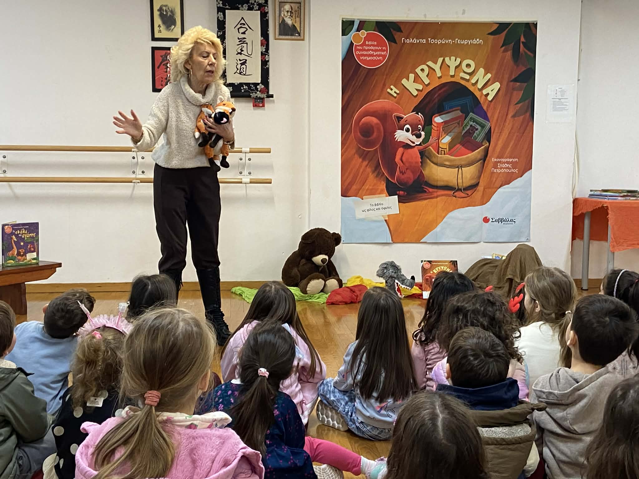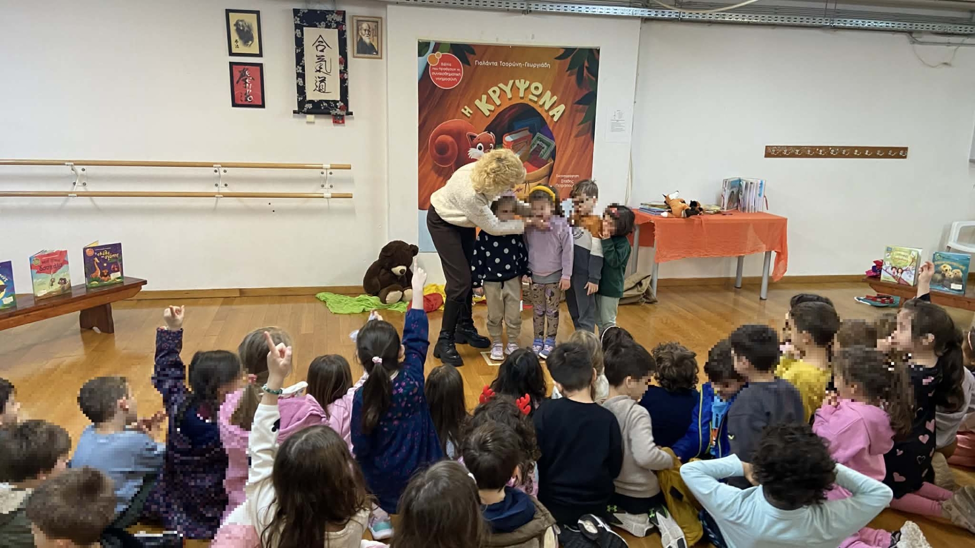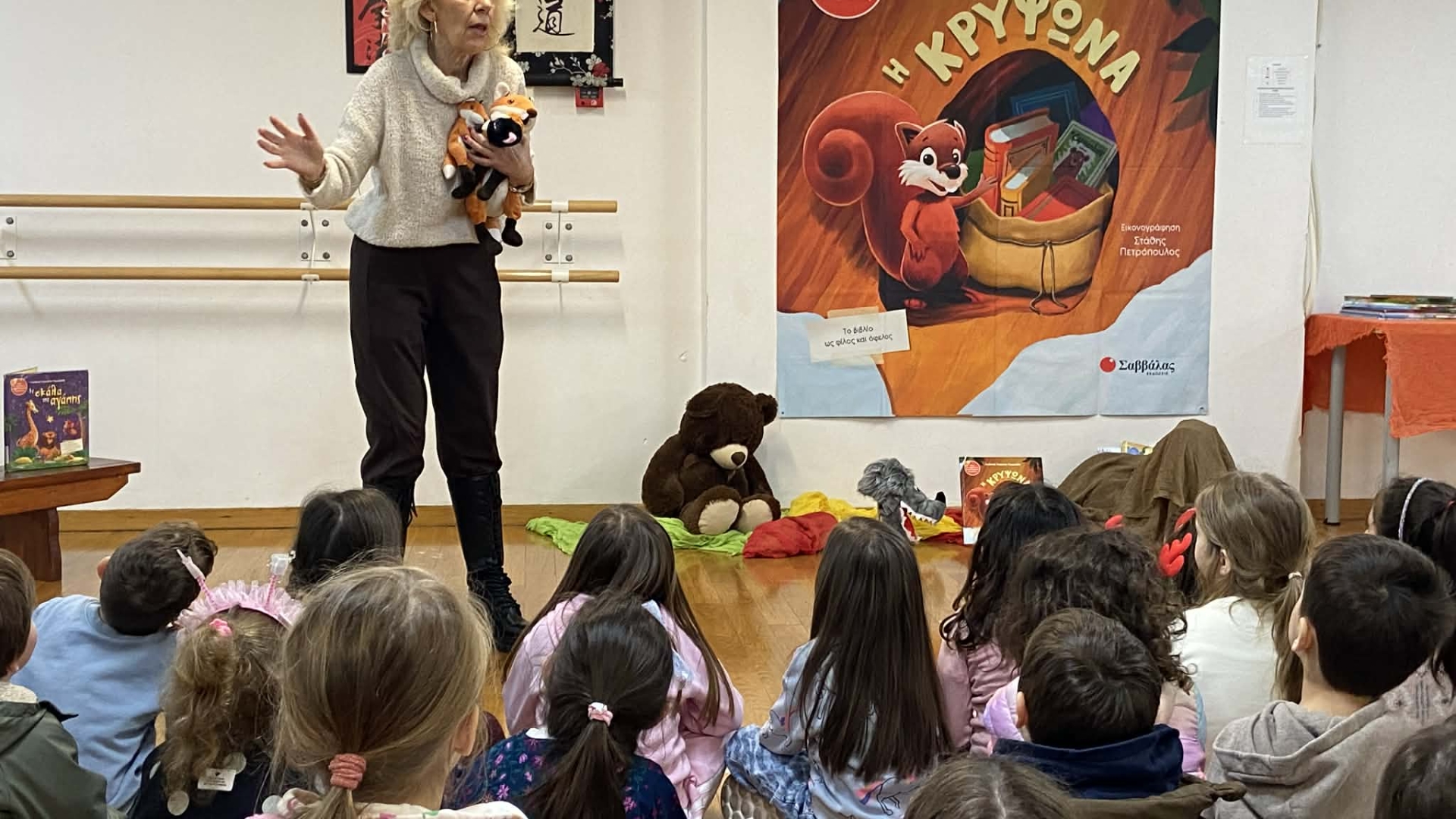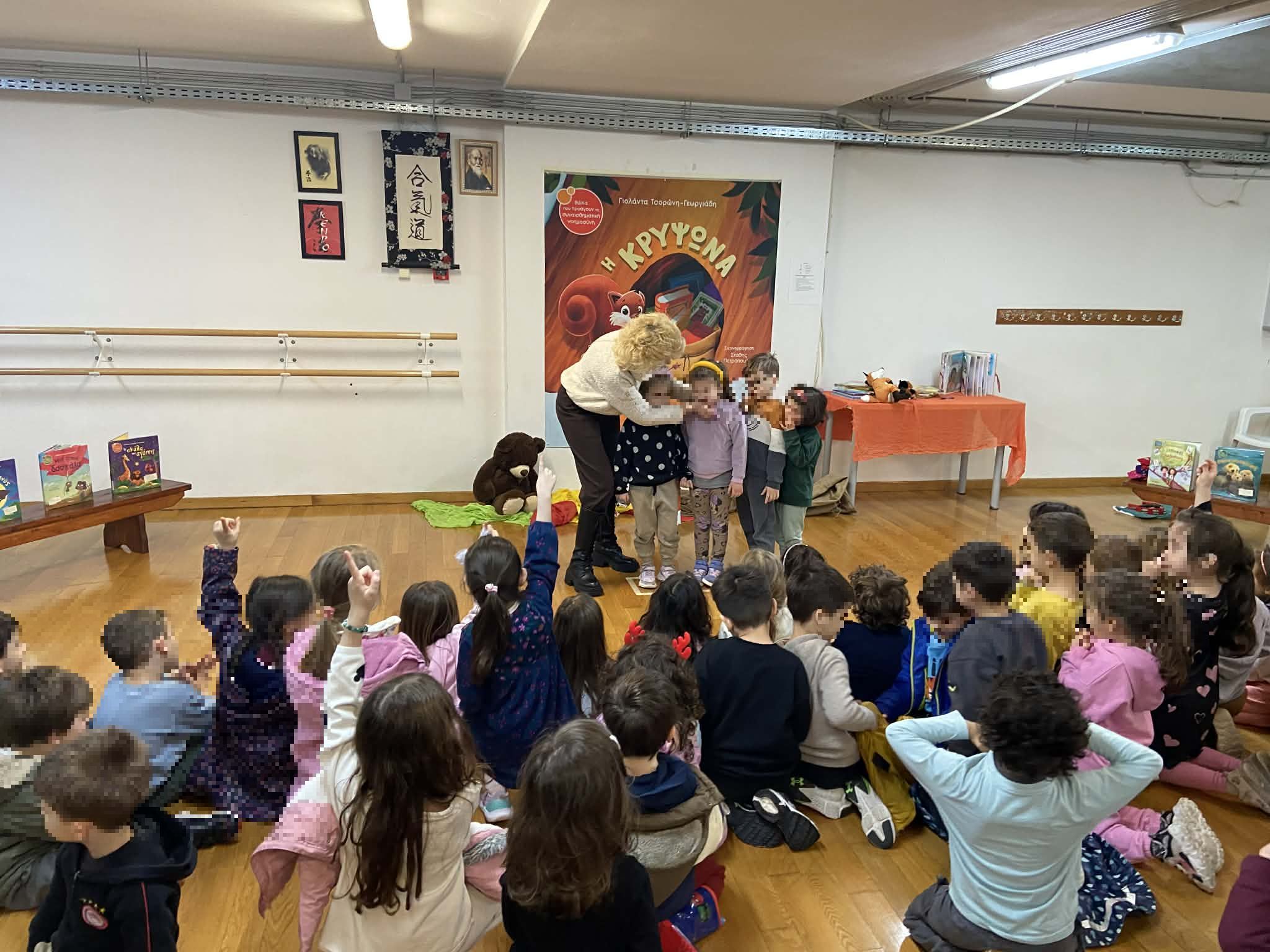 Η αγαπημένη συγγραφέας παρουσίασε στα παιδιά το παραμύθι της «ΗΚρυψώνα» με έναν ιδιαίτερα διαδραστικό και ζωντανό τρόπο. Μέσα από την αφήγηση, τη συζήτηση και τη δημιουργική αλληλεπίδραση, τα παιδιά ταξίδεψαν στον μαγικό κόσμο της ιστορίας, ανακάλυψαν τα μηνύματά της και εξέφρασαν με αυθορμητισμό τις σκέψεις και τα συναισθήματά τους.