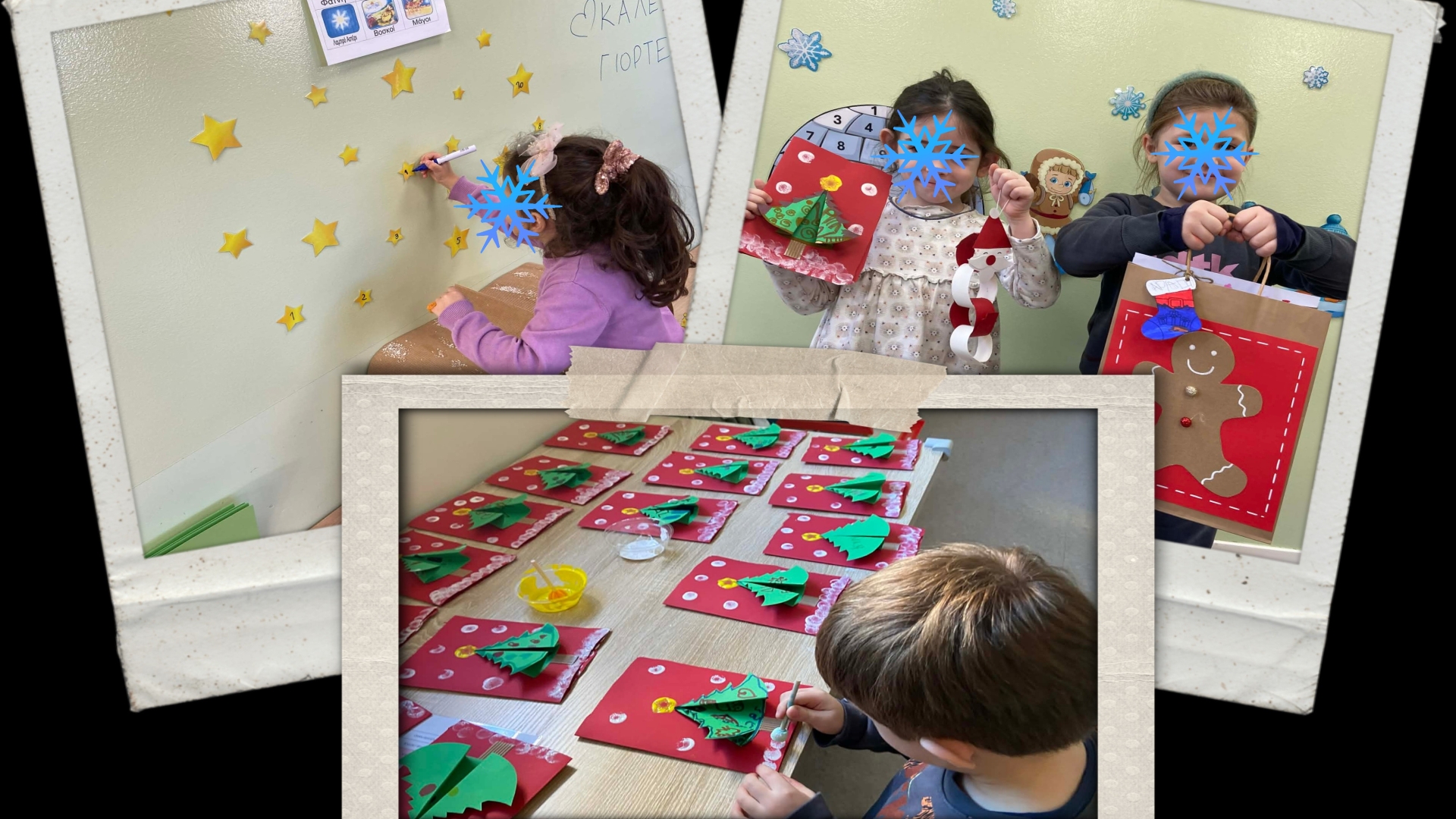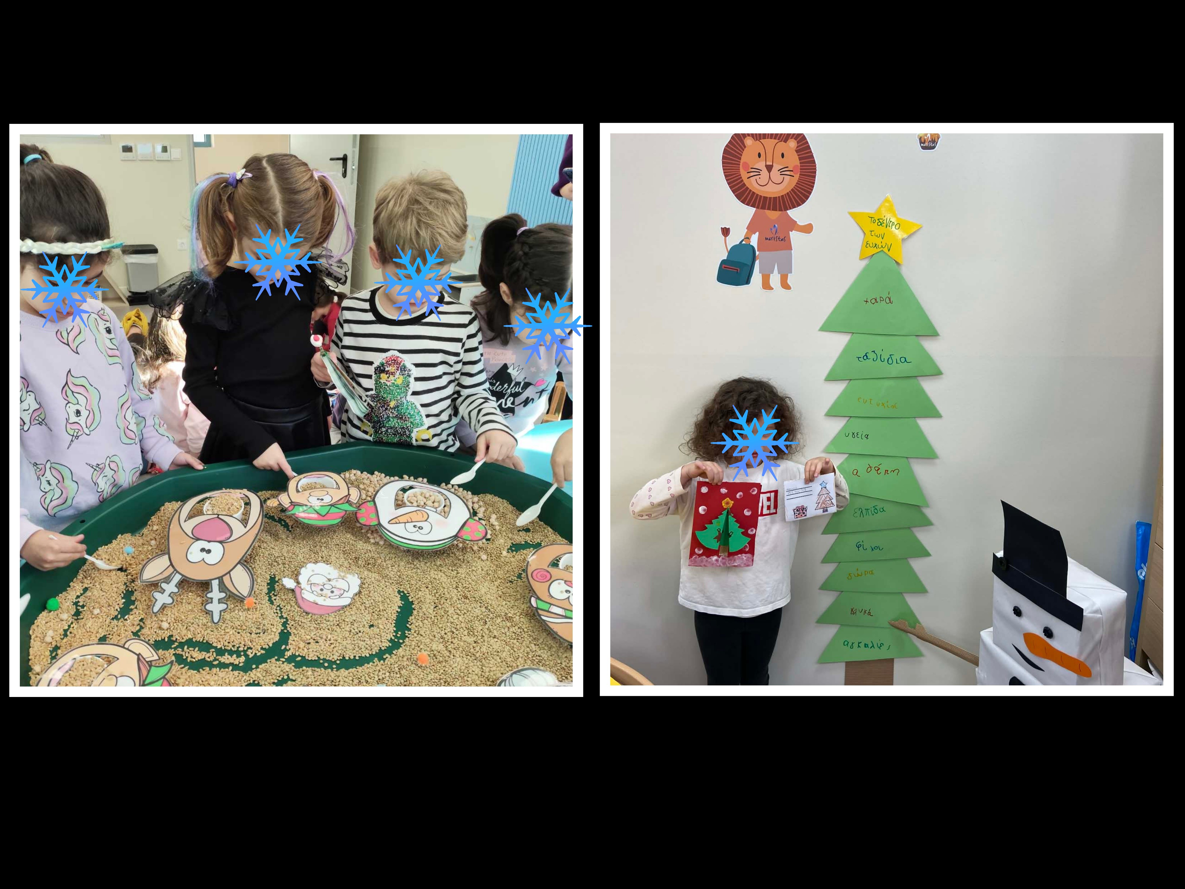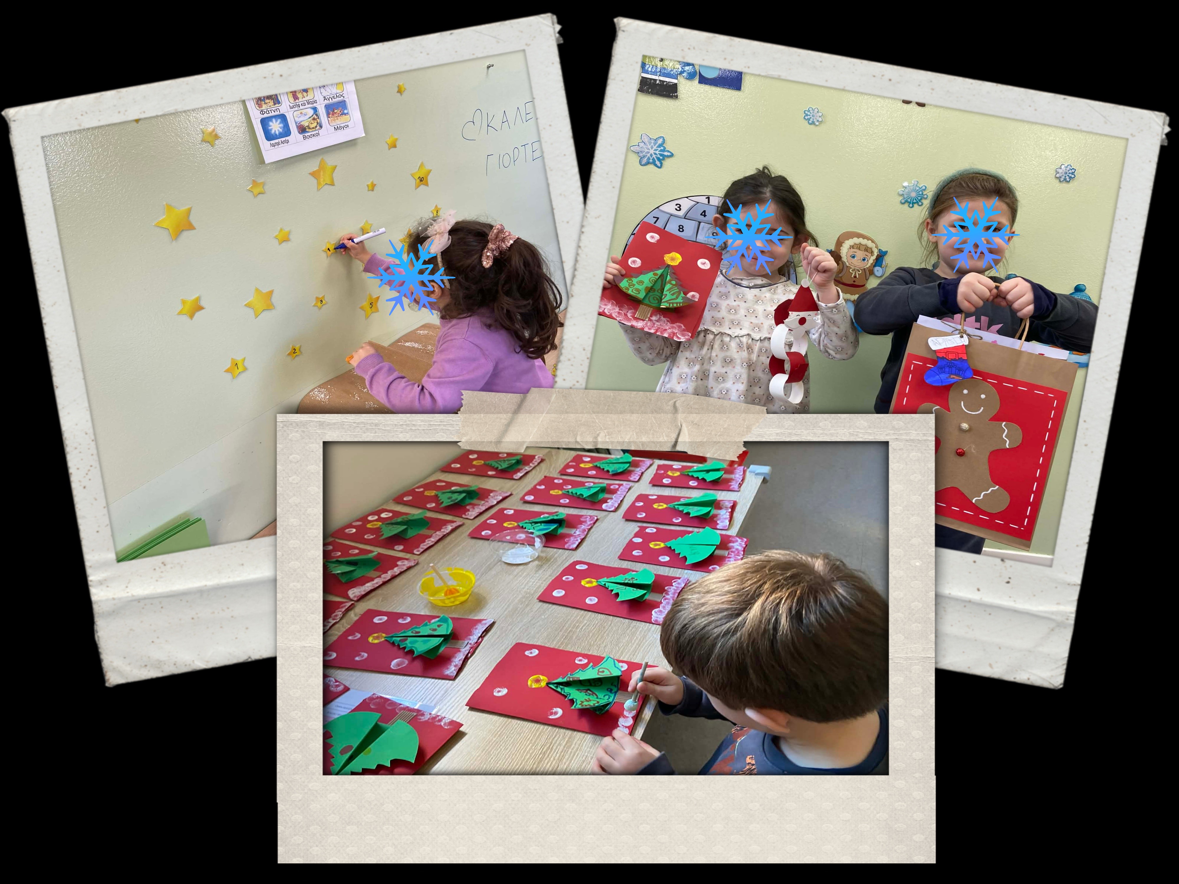 Στολίσαμε όλοι μαζί το χριστουγεννιάτικο δέντρο, φτιάξαμε όμορφες κατασκευές, τραγουδήσαμε χριστουγεννιάτικα τραγούδια και μάθαμε τα κάλαντα. Διαβάσαμε παραμύθια, παίξαμε παιχνίδια και μοιραστήκαμε αγάπη και χαμόγελα με τους φίλους μας.