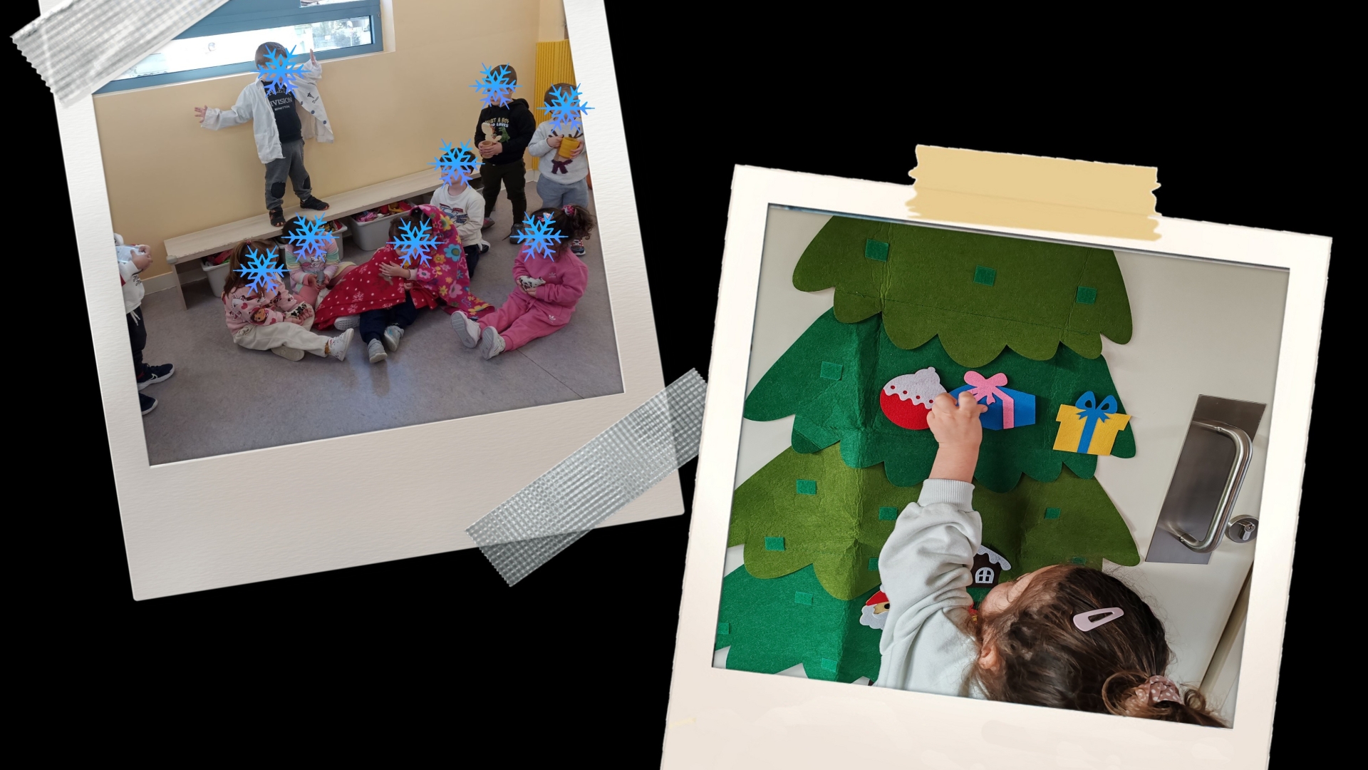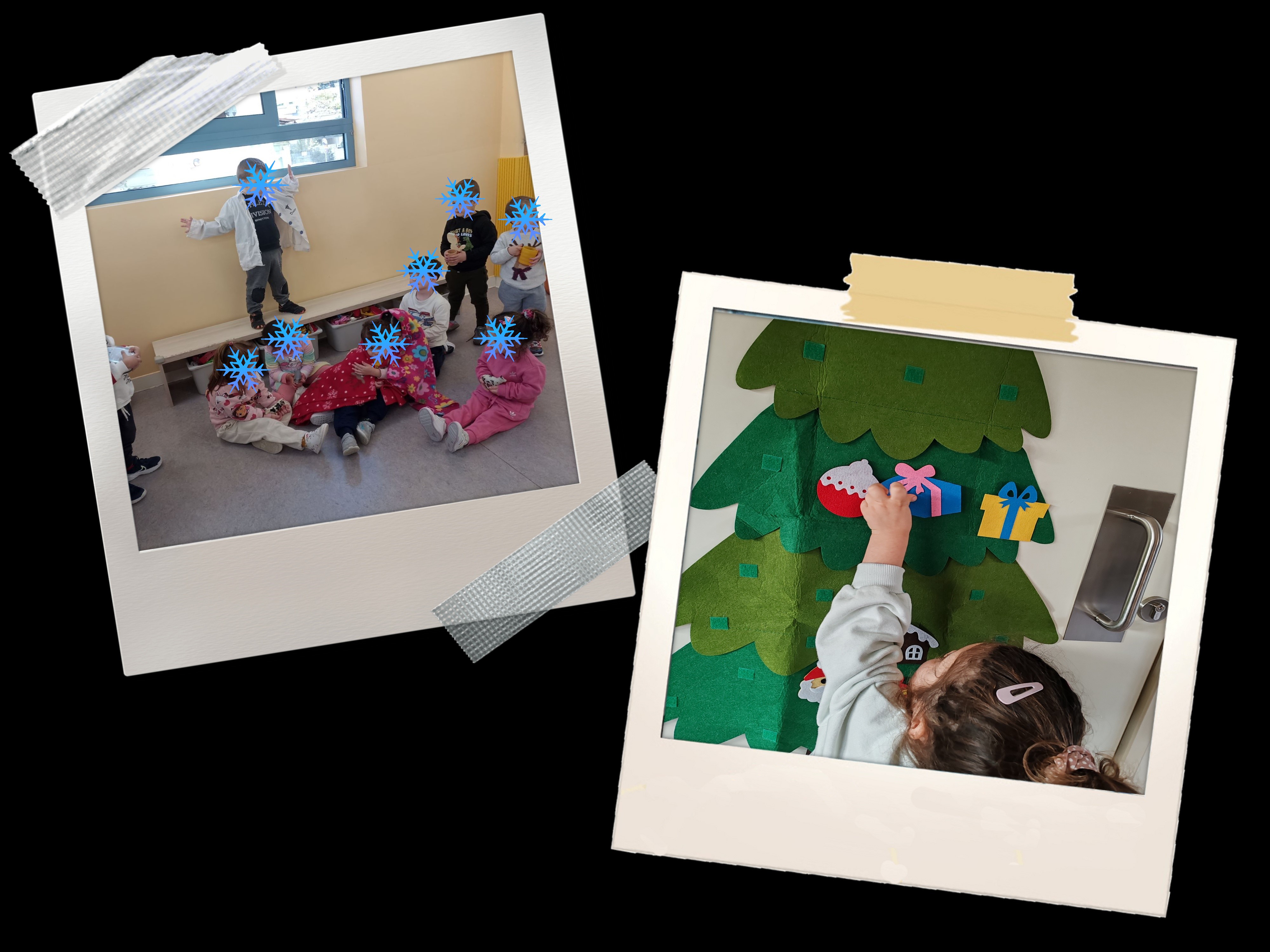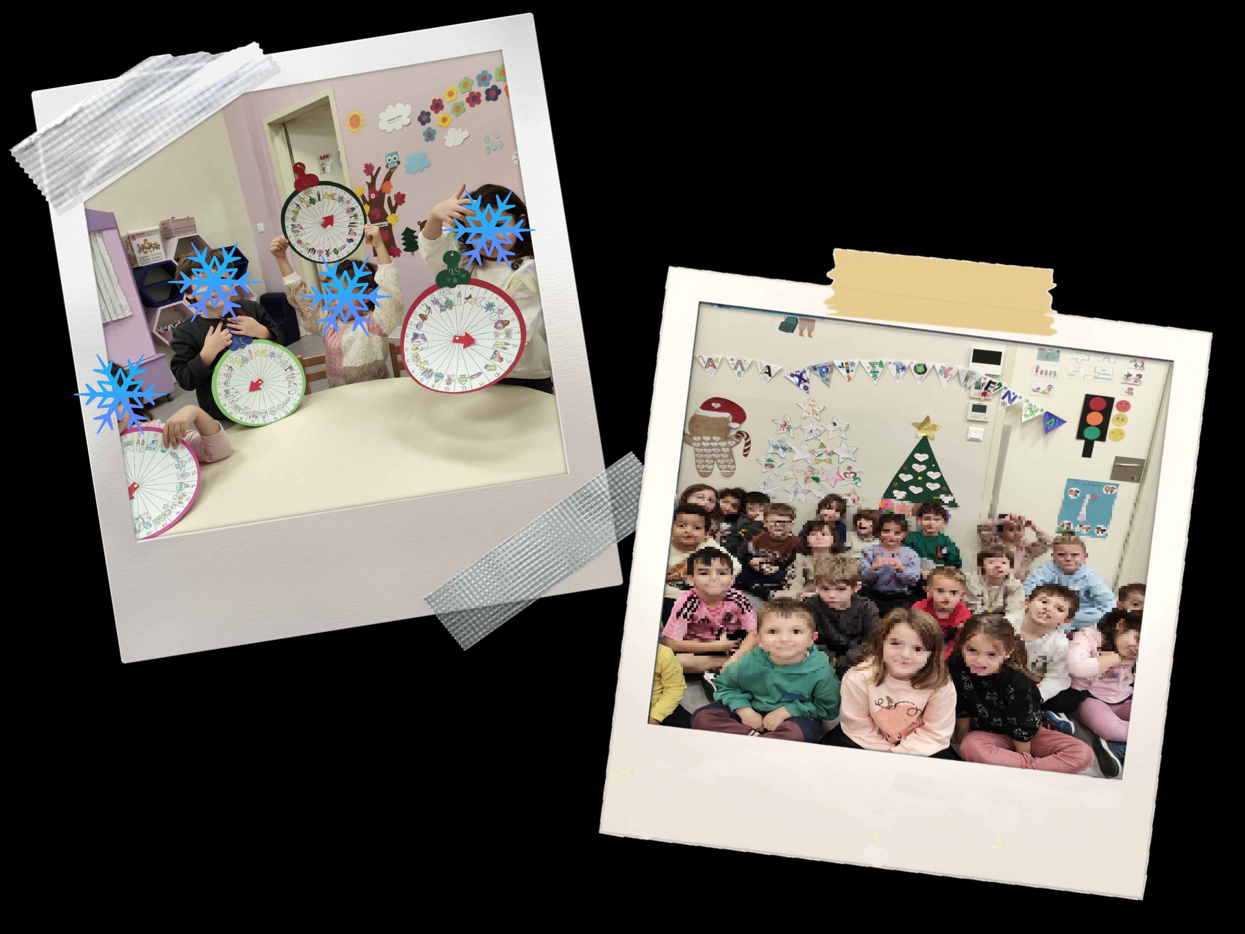 Στολίσαμε όλοι μαζί το χριστουγεννιάτικο δέντρο, φτιάξαμε όμορφες κατασκευές, τραγουδήσαμε χριστουγεννιάτικα τραγούδια και μάθαμε τα κάλαντα. Διαβάσαμε παραμύθια, παίξαμε παιχνίδια και μοιραστήκαμε αγάπη και χαμόγελα με τους φίλους μας.
