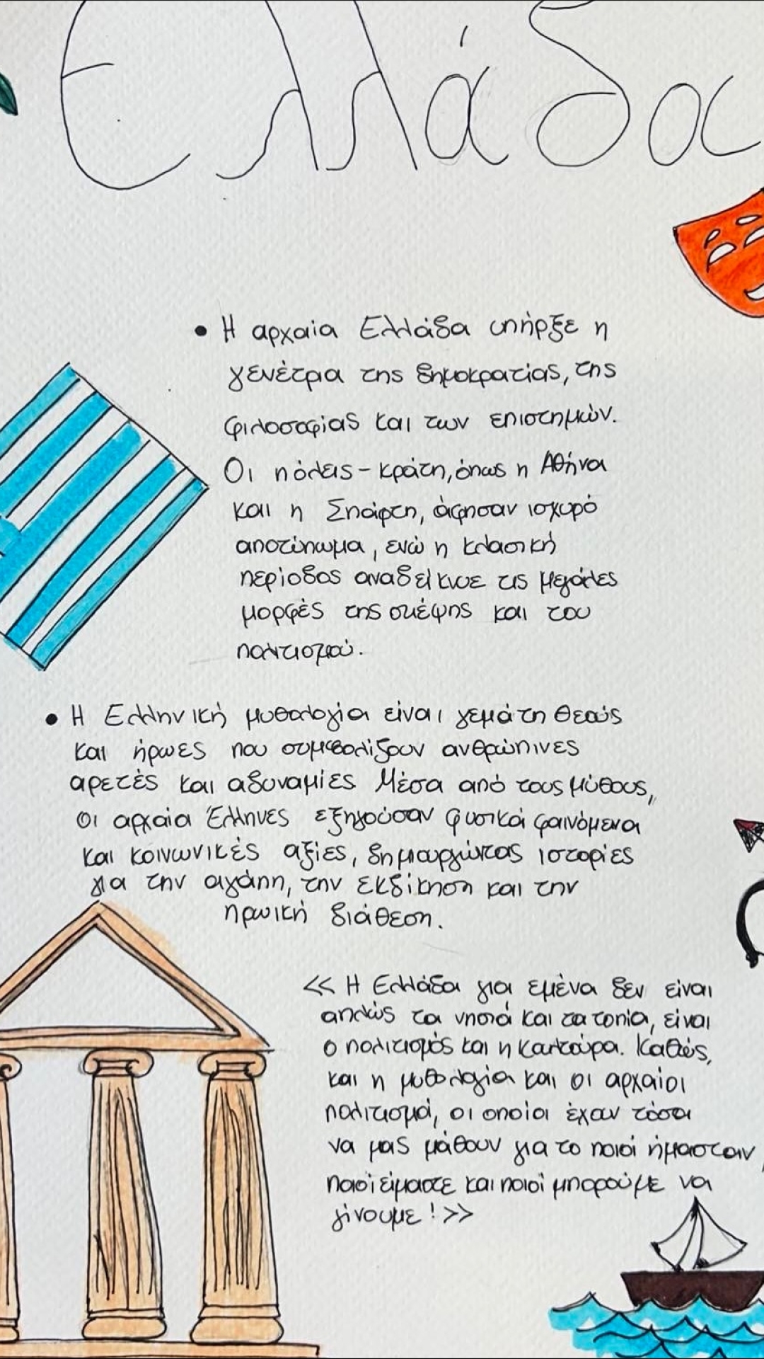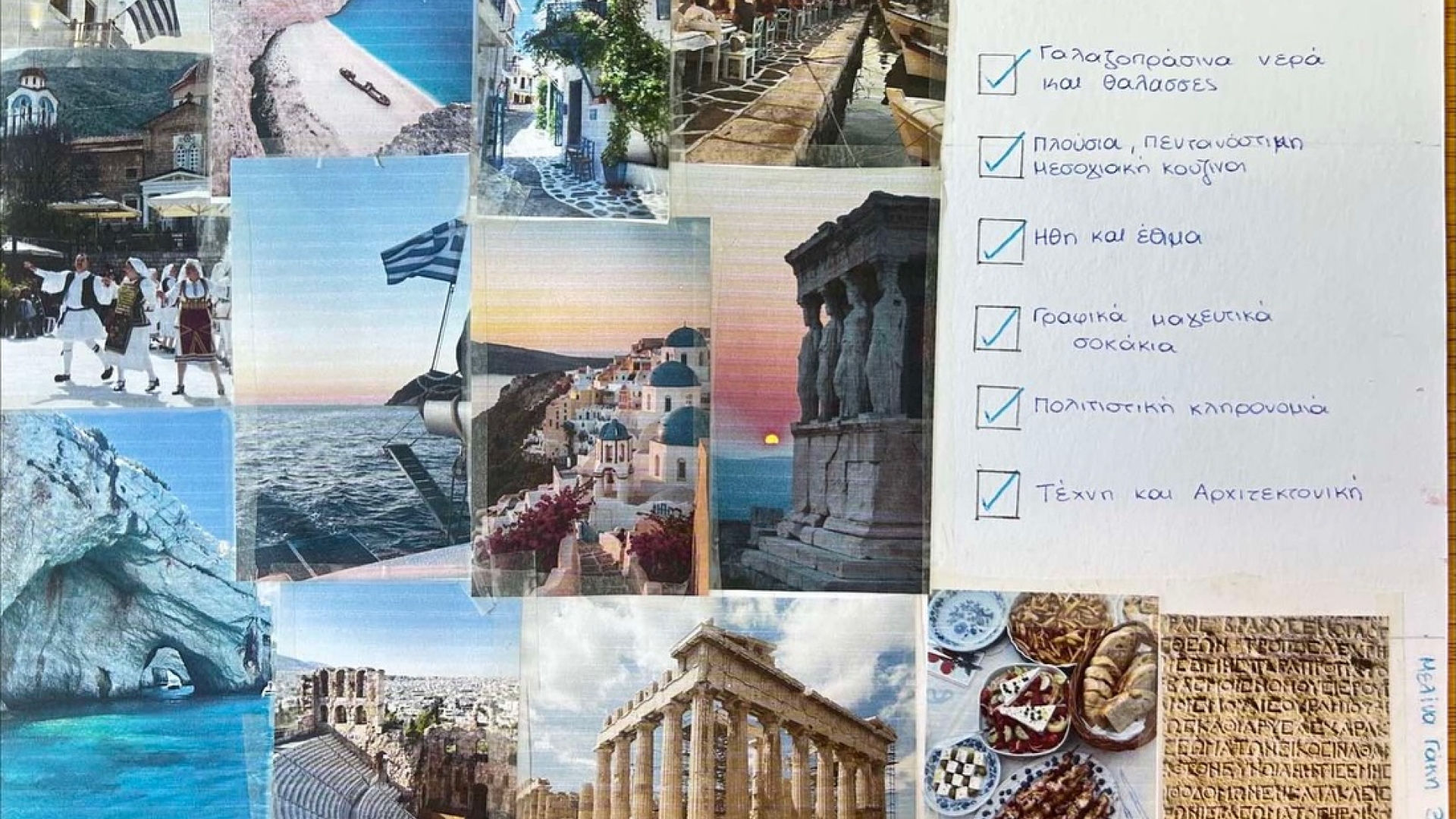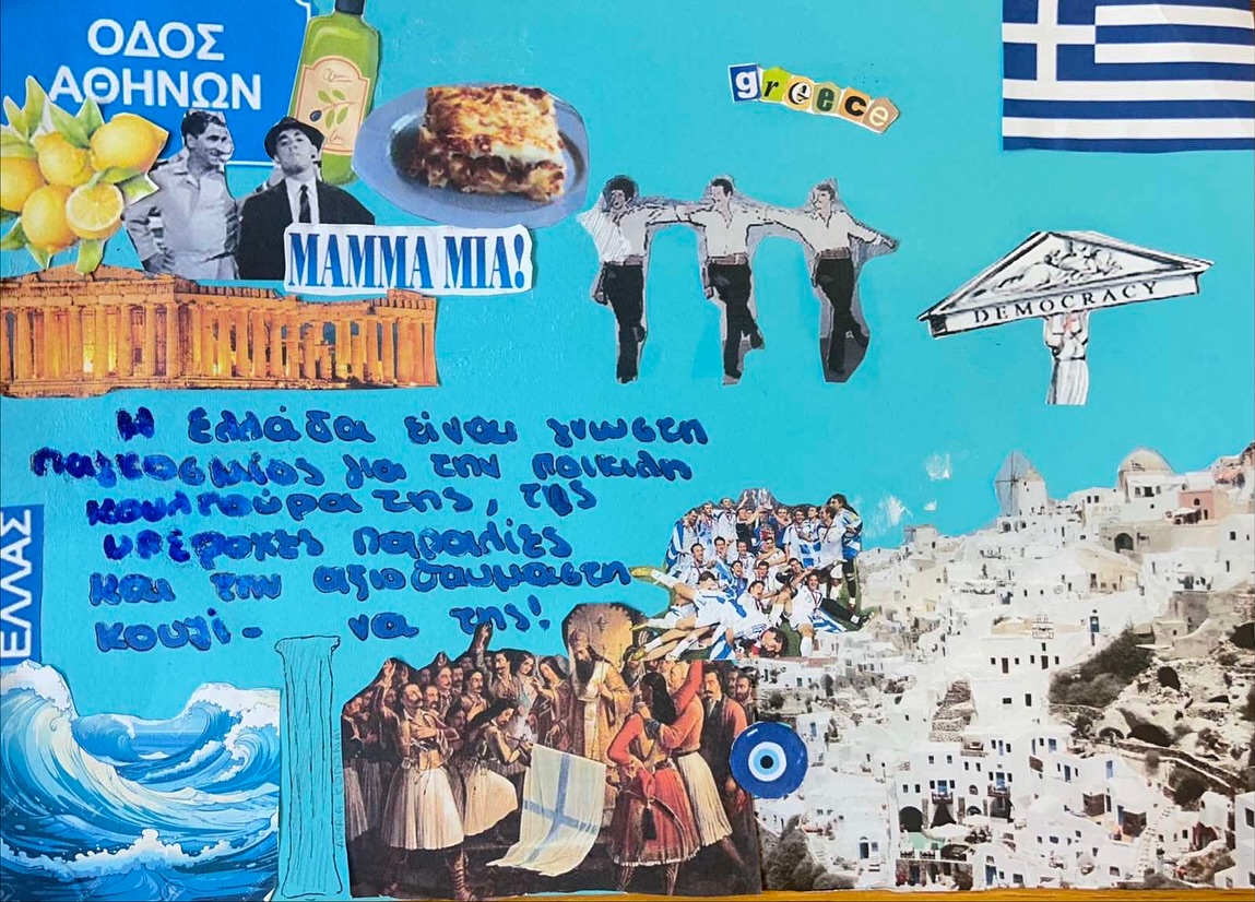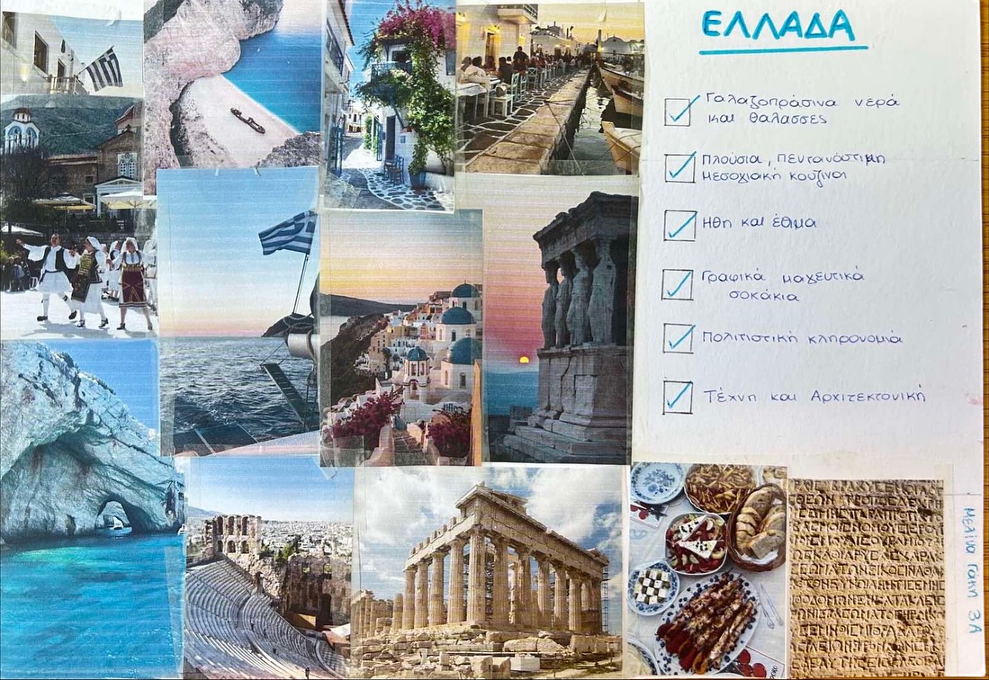 Οι μαθητές του 3Γ Γυμνασίου δημιούργησαν μοναδικά κολάζ με αφορμή την ενότητα «Η Ελλάδα στον κόσμο» — έναν τρυφερό διάλογο με την πατρίδα τους μέσα από τη δύναμη της τέχνης. ![]()