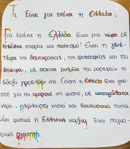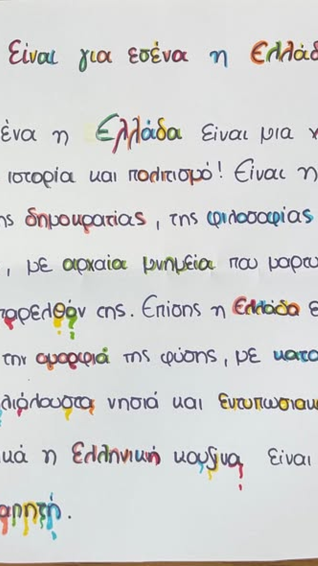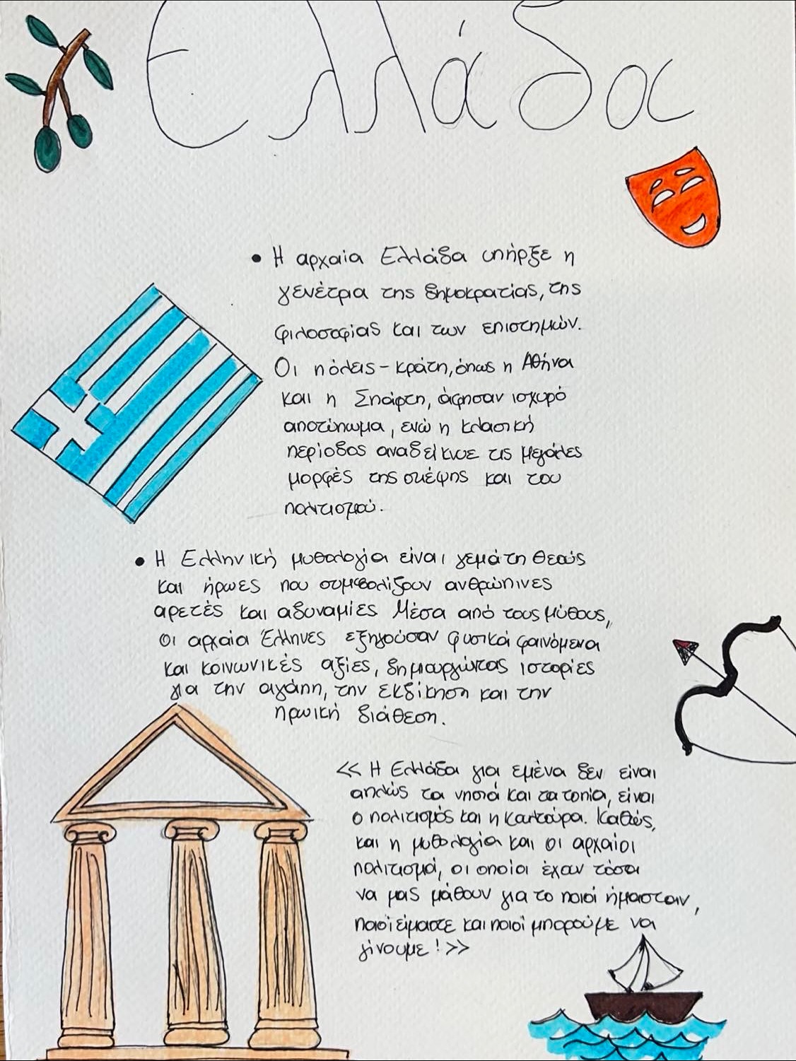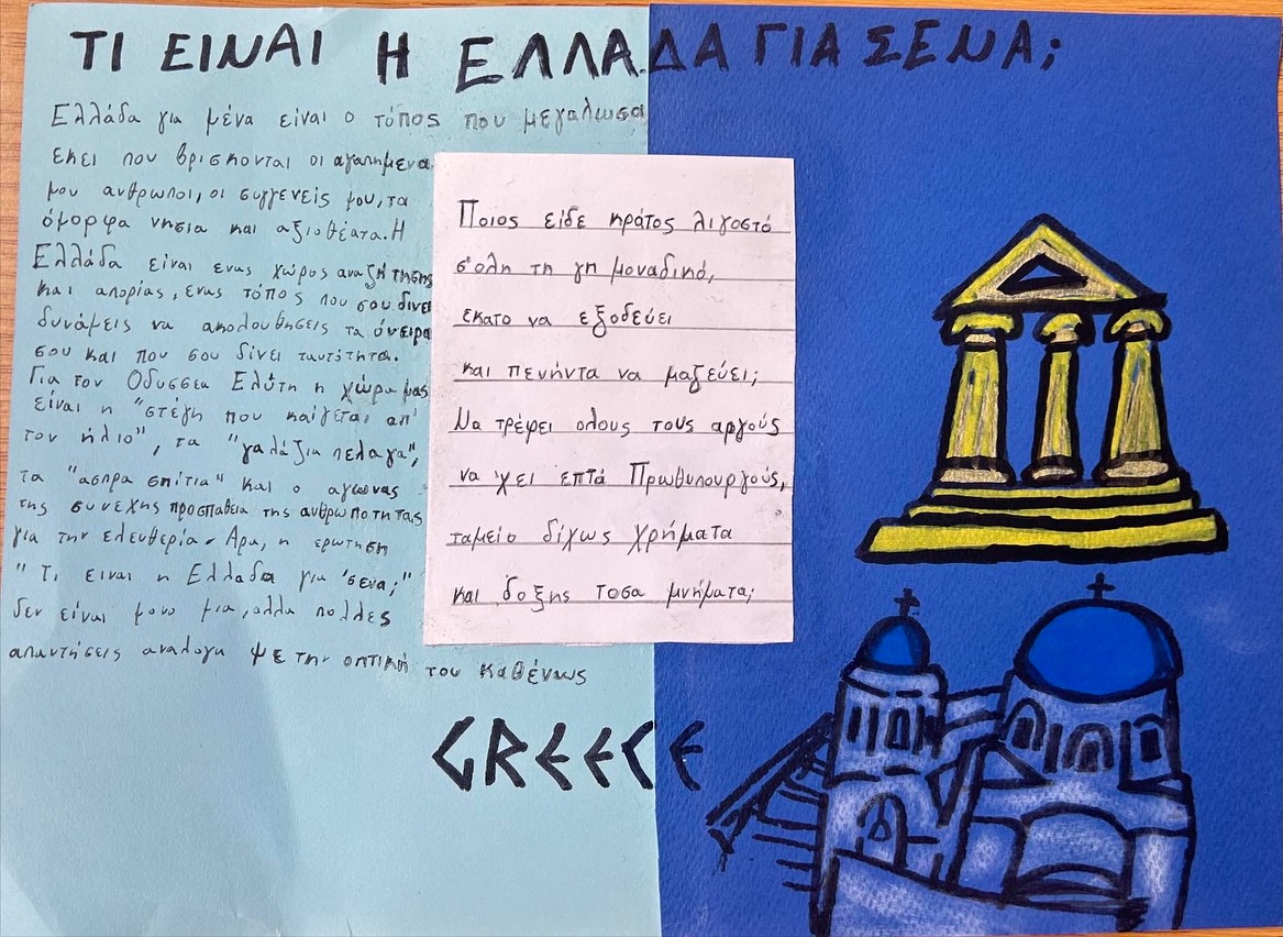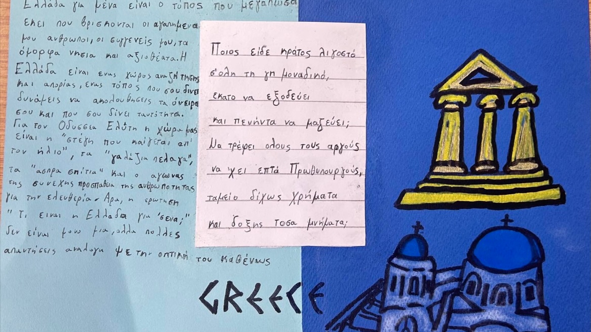 Οι μαθητές του 3Γ Γυμνασίου δημιούργησαν μοναδικά κολάζ με αφορμή την ενότητα «Η Ελλάδα στον κόσμο» — έναν τρυφερό διάλογο με την πατρίδα τους μέσα από τη δύναμη της τέχνης. ![]()