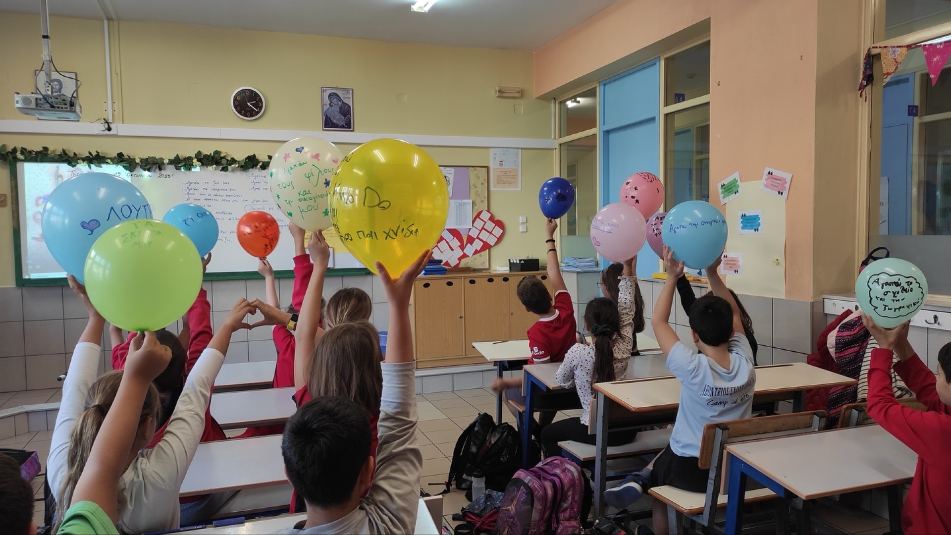 μιλήσαμε για τη ζωή, ζωγραφίσαμε τη χαρά σε σημαίες και μπαλόνια, γράψαμε τα “δώρα” της δικής μας ζωής με μπογιές και χρώματα και τα προσφέραμε ο ένας στον άλλο!