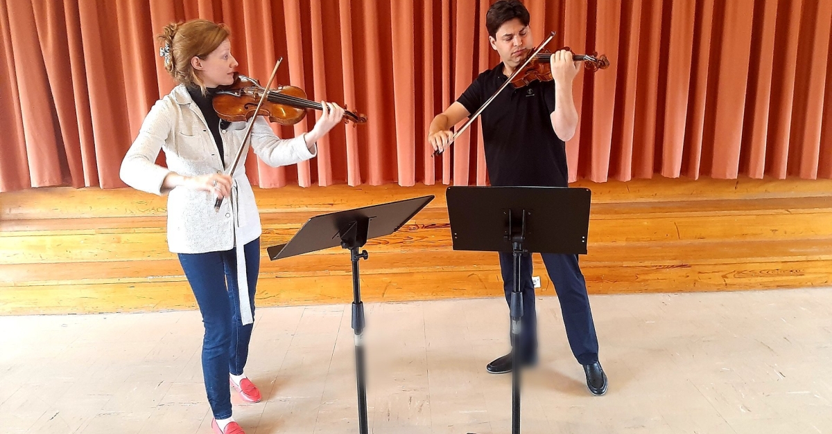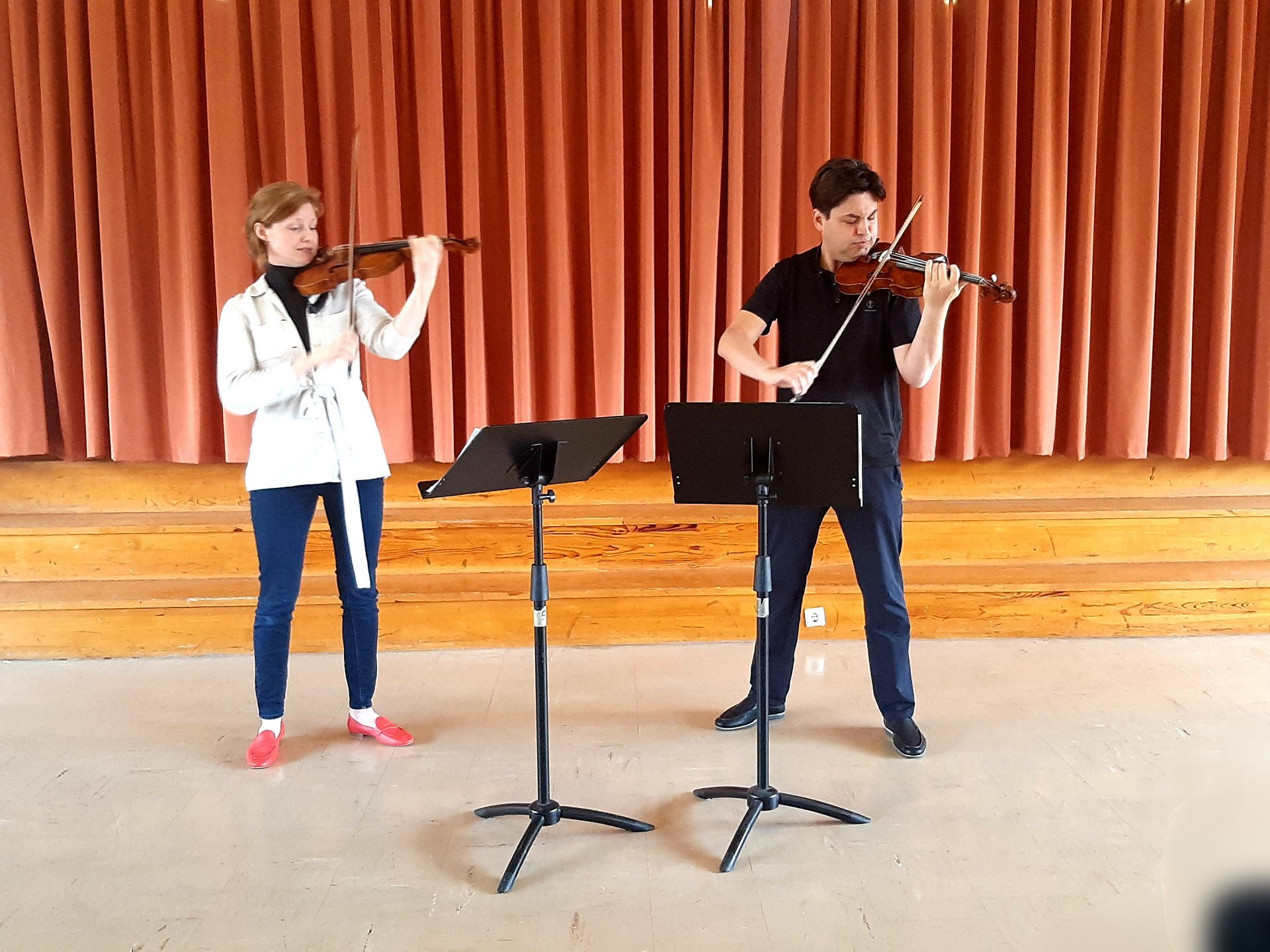 Την Παρασκευή 17 Οκτωβρίου με αφορμή το Διεθνές Μουσικό Φεστιβάλ που πραγματοποιείται στην Αθήνα (Athens International Music Festival) από τις 21 έως τις 25 Οκτωβρίου σε επιλεγμένους συναυλιακούς χώρους, είχαμε τη χαρά να υποδεχτούμε τους Asi Matathias και Tosca Opdam, -αμφότεροι Καλλιτεχνικές Διευθυντές και δεινοί ερμηνευτές βιολιού του ξεχωριστού Φεστιβάλ-, οι οποίοι μας παρουσίασαν ένα σύντομο μουσικό πρόγραμμα με τα απαράμιλλης κατασκευαστικής ποιότητας βιολιά Στραντιβάριους ενώ παράλληλα συνομίλησαν με τους μαθητές της Ε' & της ΣΤ' Δημοτικού αφήνοντας τις καλύτερες εντυπώσεις.