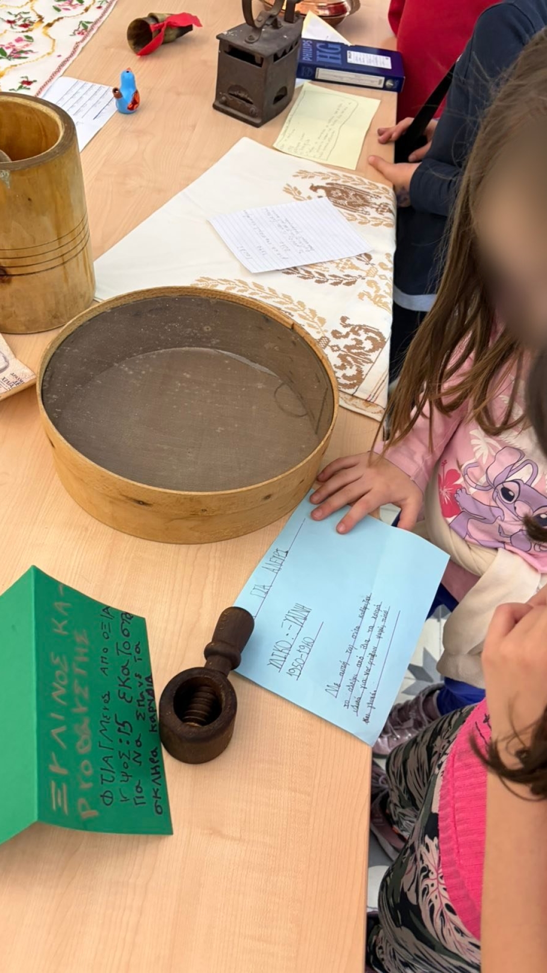 Μέσα από παλιά αντικείμενα της καθημερινής ζωής που συγκέντρωσαν τα ίδια τα παιδιά, μας ταξίδεψαν σε άλλες εποχές και μας γνώρισαν στοιχεία της παράδοσης και της λαϊκής μας κληρονομιάς.