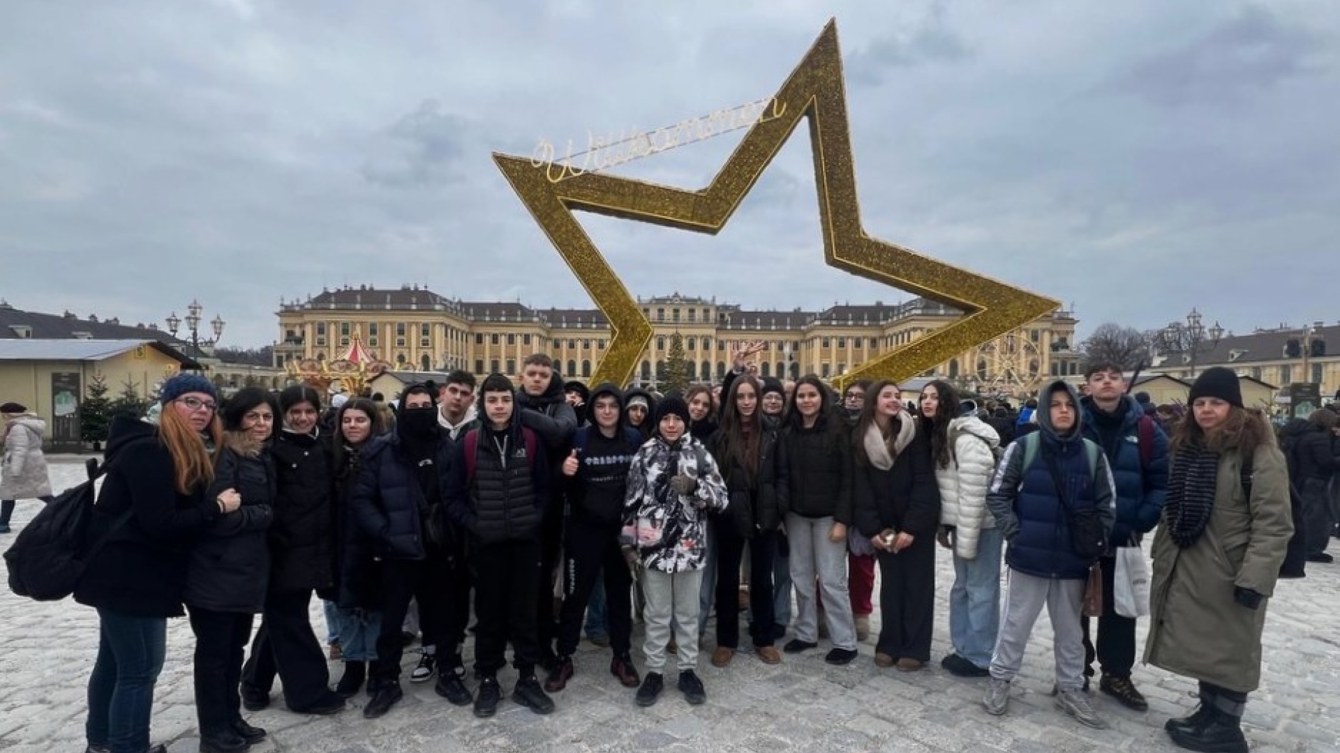 Ξεκινήσαμε με την επίσκεσή μας στο επιβλητικό Ανάκτορο Schönbrunn, το λαμπρό θερινό παλάτι της Μαρίας Θηρεσίας. Οι μαθητές περιηγήθηκαν στους χώρους του και θαύμασαν την αρχιτεκτονική και την ιστορία που το συνοδεύει. Αμέσως μετά, είχαμε ελεύθερο χρόνο στη Χριστουγεννιάτικη Αγορά του Schönbrunn, μπροστά από το παλάτι – ένας παραμυθένιος χώρος με φώτα, αρώματα και γιορτινή διάθεση.