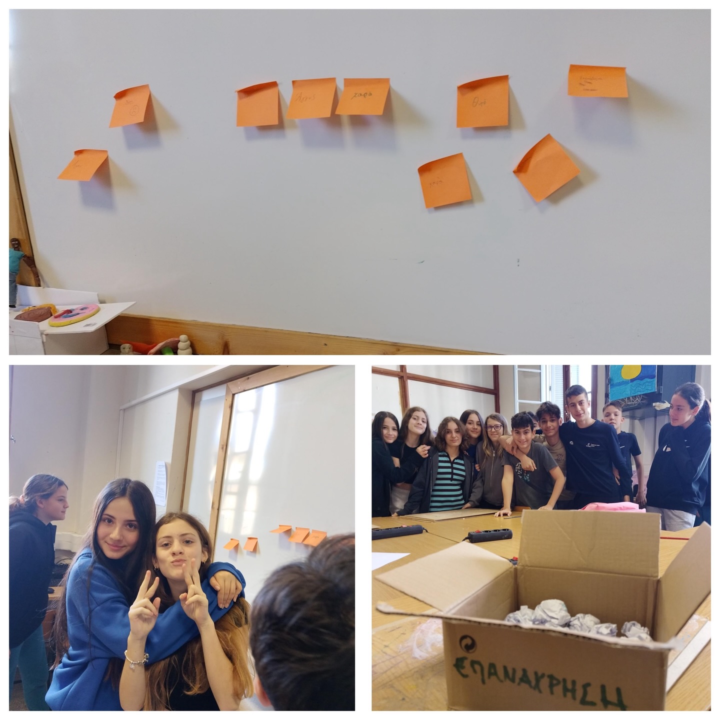 Στο μάθημα της Τεχνολογίας, οι μαθητές και οι μαθήτριες της Α’, Β’ και Γ’ Γυμνασίου προσέγγισαν τις έννοιες της παραγωγικής μονάδας, της κυκλικής οικονομίας και της επαναχρησιμοποίησης μέσα από έναν πρωτότυπο και βιωματικό τρόπο: έγιναν οι ίδιοι μέρος της «παραγωγικής διαδικασίας», όπου οι εισροές και οι εκροές συνδέθηκαν με τα συναισθήματά τους.
