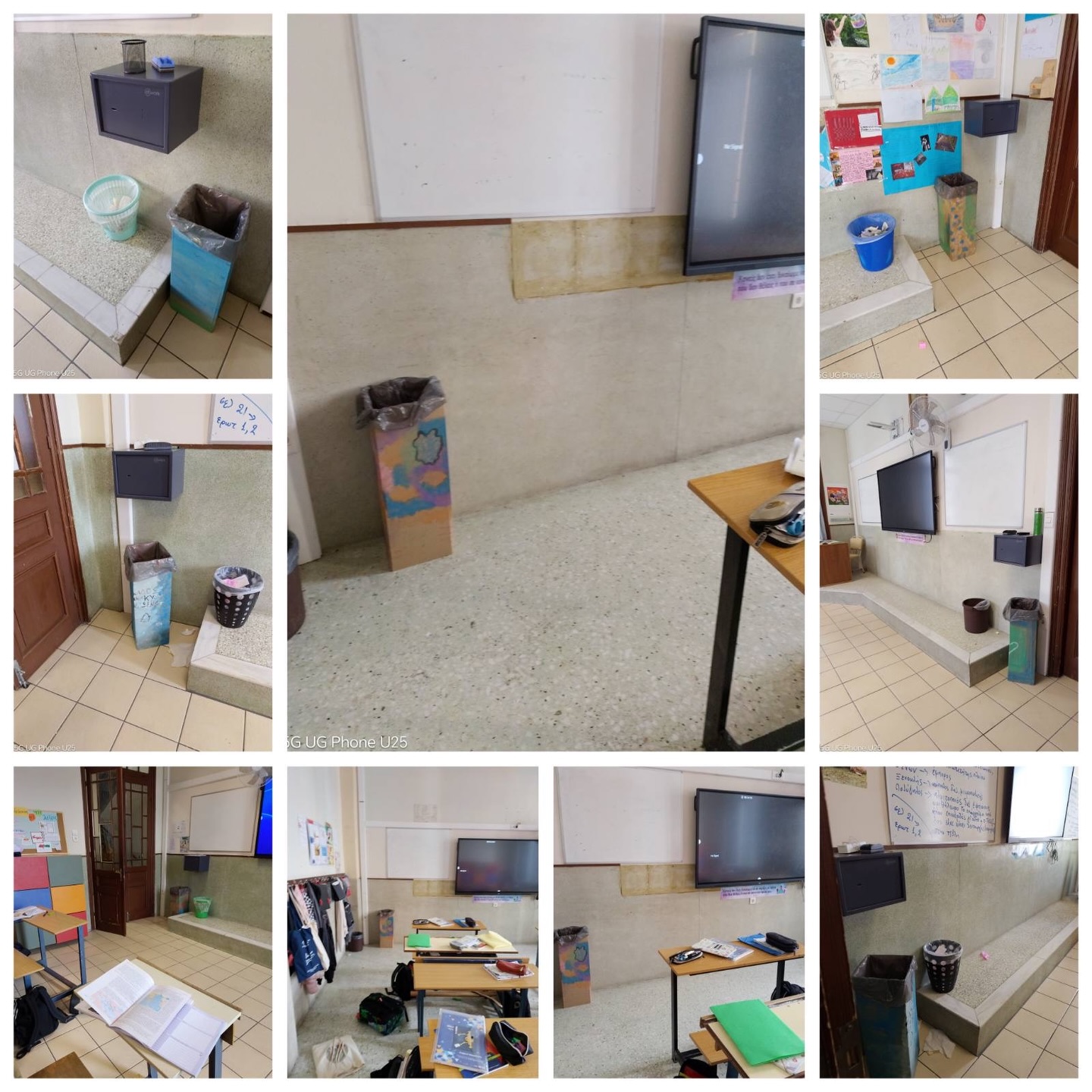 Το εγχείρημα αυτό ξεκίνησε να λαμβάνει χώρα στις αρχές του Νοέμβρη, με την βοήθεια των παιδιών της Α’ Γυμνασίου, τα οποία ζωγράφισαν στο χαρτί τις δικές τους σκέψεις για το περιβάλλον και πλέον από σήμερα οι πολύχρωμοι αυτοί κάδοι κατασκευασμένοι από ανακυκλώσιμα υλικά, έχουν τοποθετηθεί σε κάθε τάξη του Γυμνασίου με σκοπό να “υποδεχθούν” τους τόσο ρυπογόνους πλαστικούς “φίλους”, υπενθυμίζοντας την ευθύνη που έχουμε όλοι μας απέναντι στο περιβάλλον!