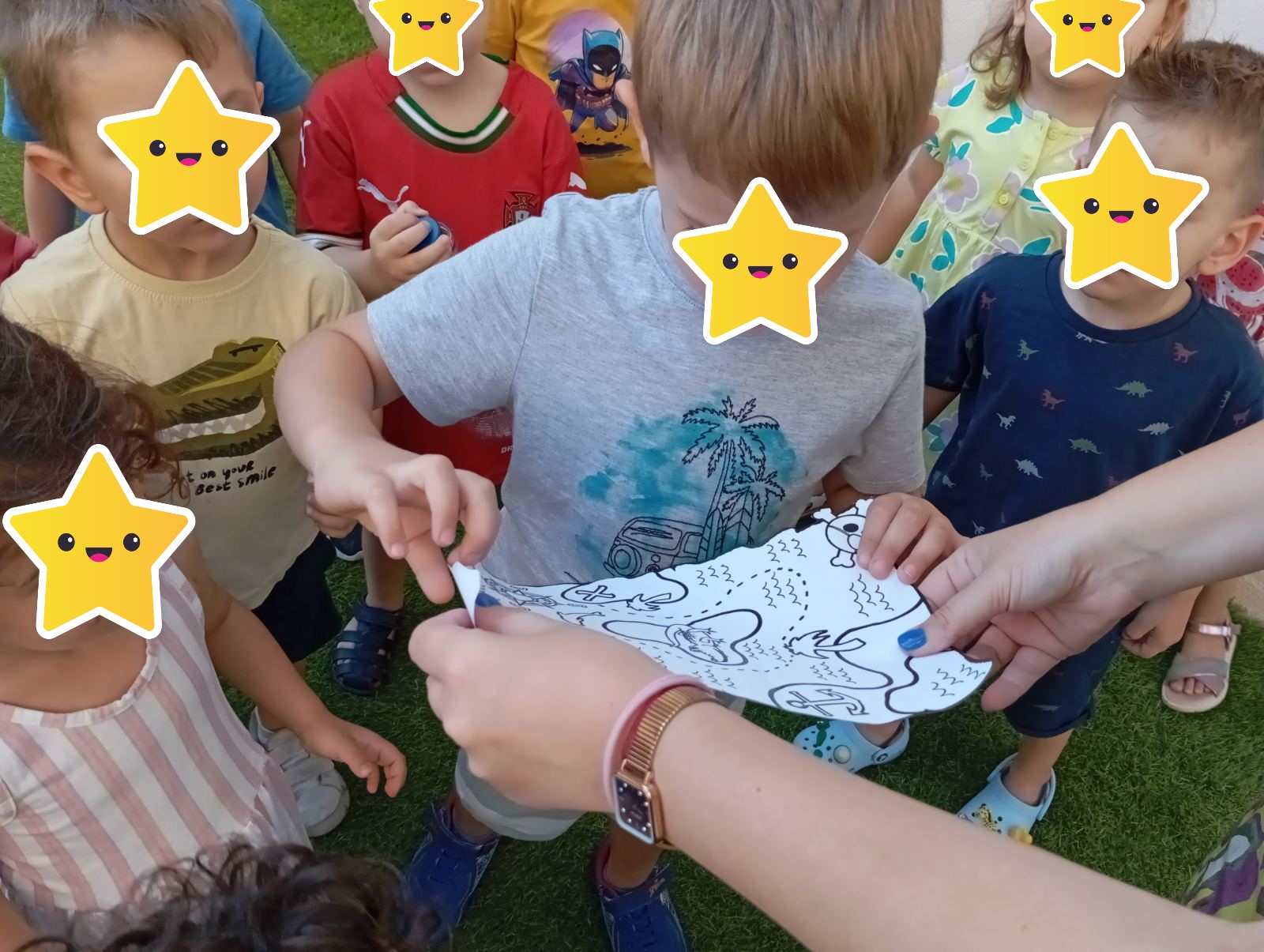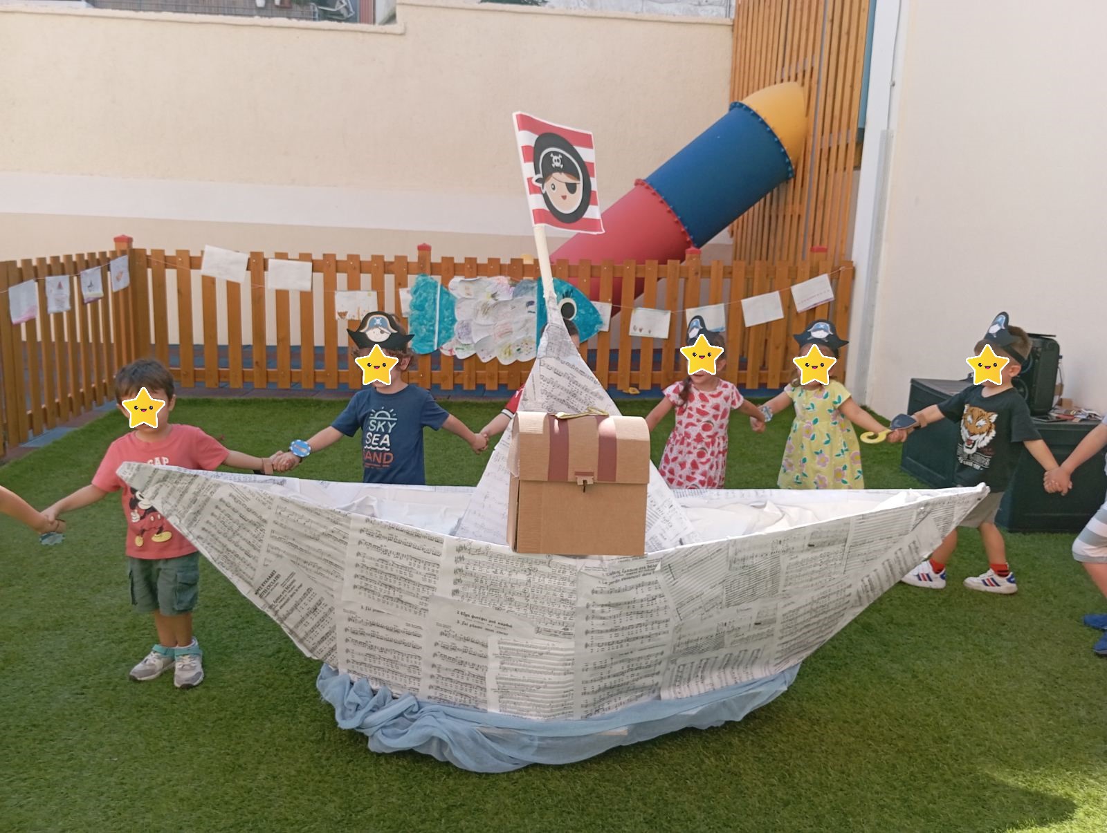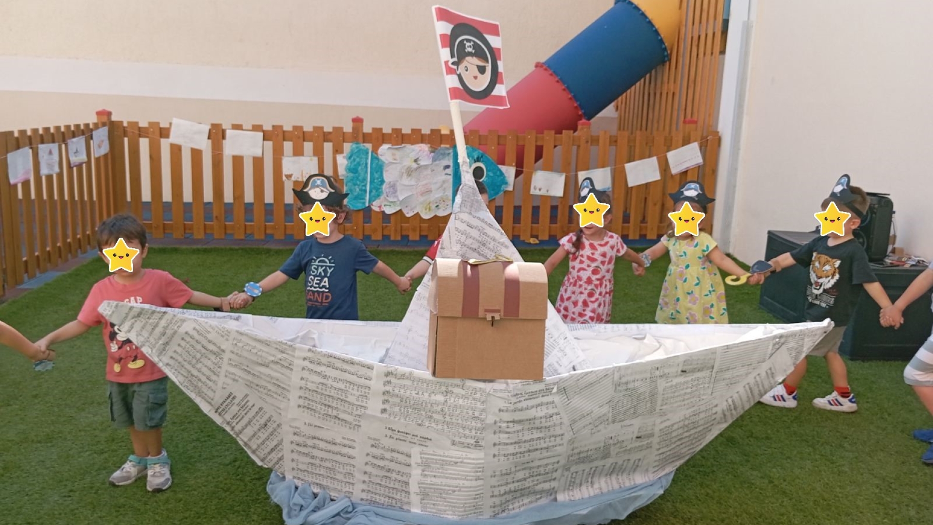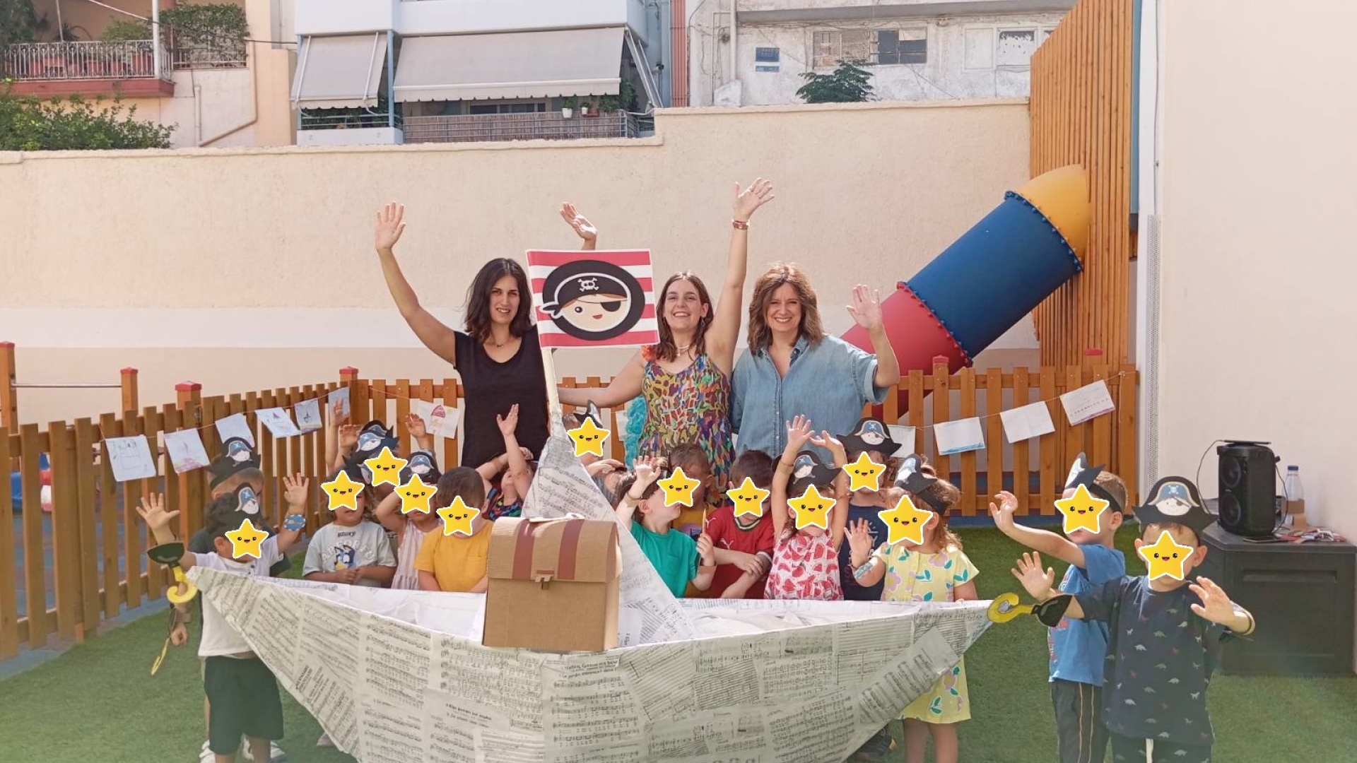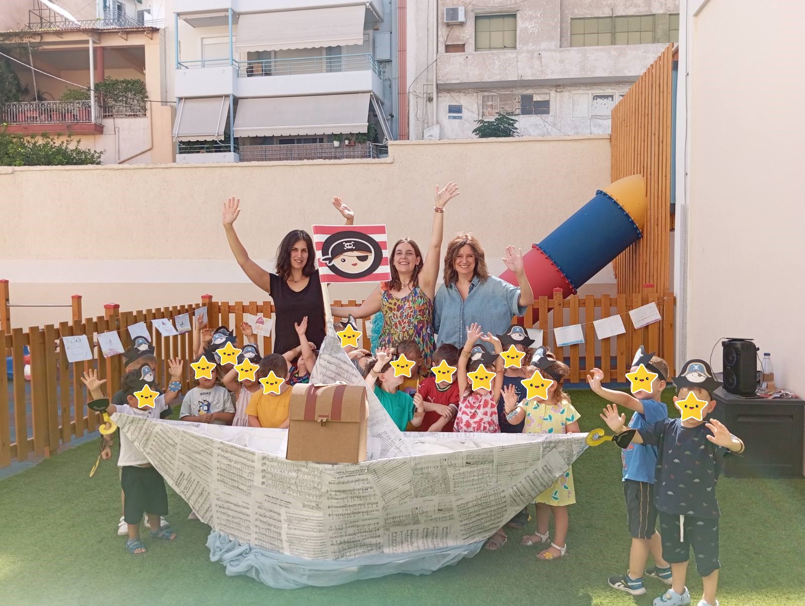 Έεεειιιι χοοοοοπ και τα παιδιά του παιδικού σταθμού μας, ξεκίνησαν την περιπέτεια ανακάλυψης του κρυμμένου θησαυρού, που άφησαν κρυφά τη νύχτα οι πειρατές στην αυλή του Διαμαντίδειου Νηπιαγωγείου της Λεοντείου Σχολής Αθηνών. Όμως τα έκρυψαν τόσο καλά που τα παιδιά πέρασαν από πολλές δοκιμασίες, ωσπου τα κατάφεραν και άνοιξαν το βαρύ σεντούκι!! Τι υπήρχε μέσα άραγε; Σσσσσσσςςςς είναι μυστικό….. Ήρθε η ώρα να σαλπάρουμε για νέες περιπέτειες!!!!!