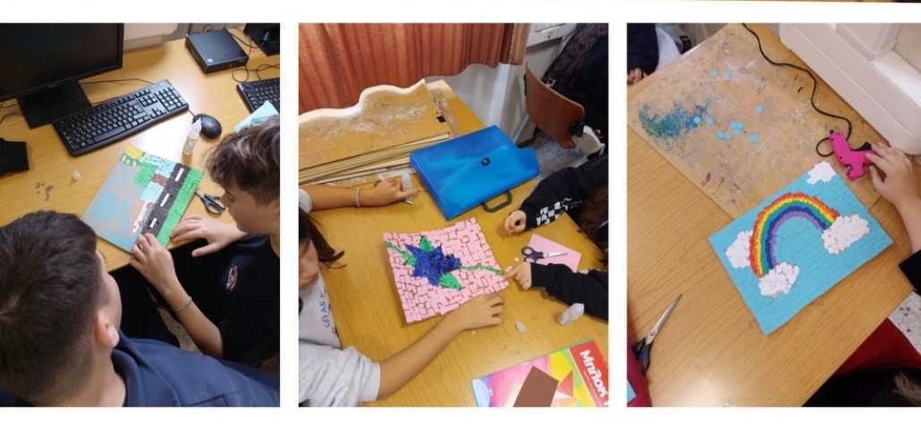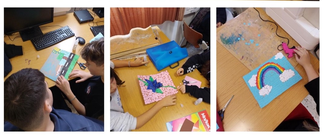 Οι μαθητές και οι μαθήτριες της Γ’ Γυμνασίου, στο μάθημα των Εργαστηρίων Δεξιοτήτων, με την καθοδήγηση των εκπαιδευτικών κκ. Στεφανίας Μπουρλή και Σίσσυς Κρητικοπούλου, απέδειξαν ότι η τέχνη του ψηφιδωτού μπορεί να μεταμορφώσει έναν χώρο.