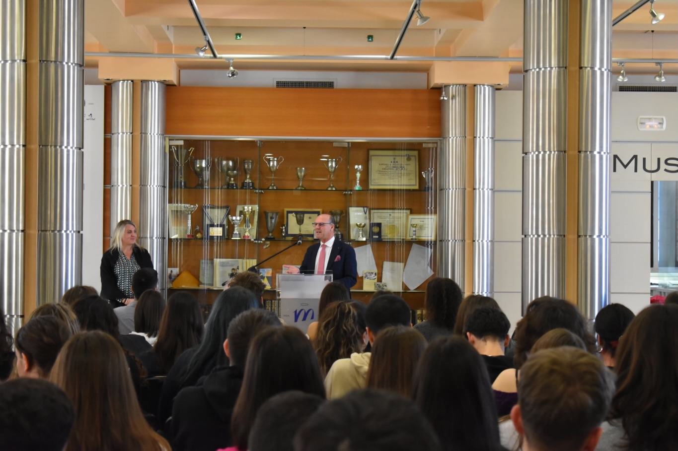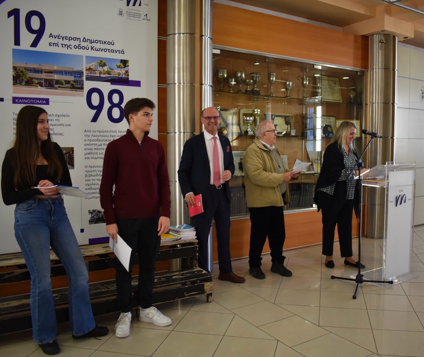 • η Πρόεδρος και τα μέλη του Μαριανού Οργανισμού Λεοντείων Σχολών και Κοινωνικών Έργων, κ.κ. Τερέζα Δελλατόλα, Αντώνης Δασύρας και Μαρία Κοκκαλάκη, Πρόεδρος της Γραμματείας Ιδιωτικών Εκπαιδευτικών Ιδρυμάτων Ελλάδος.