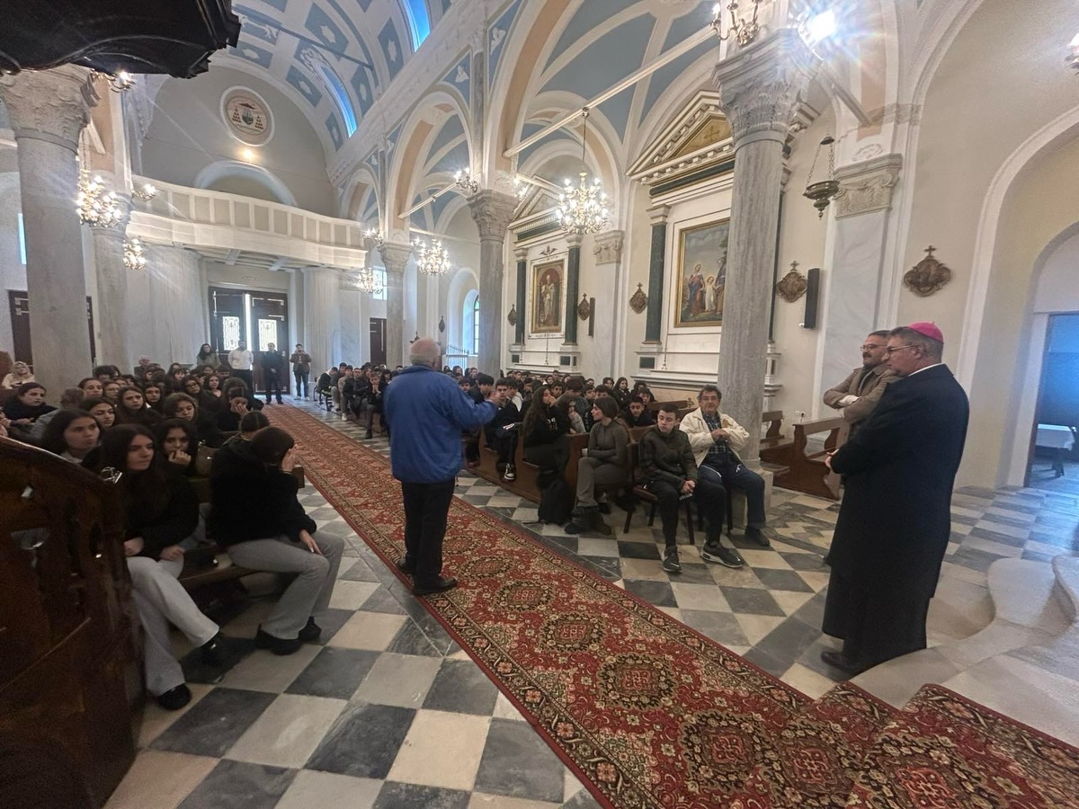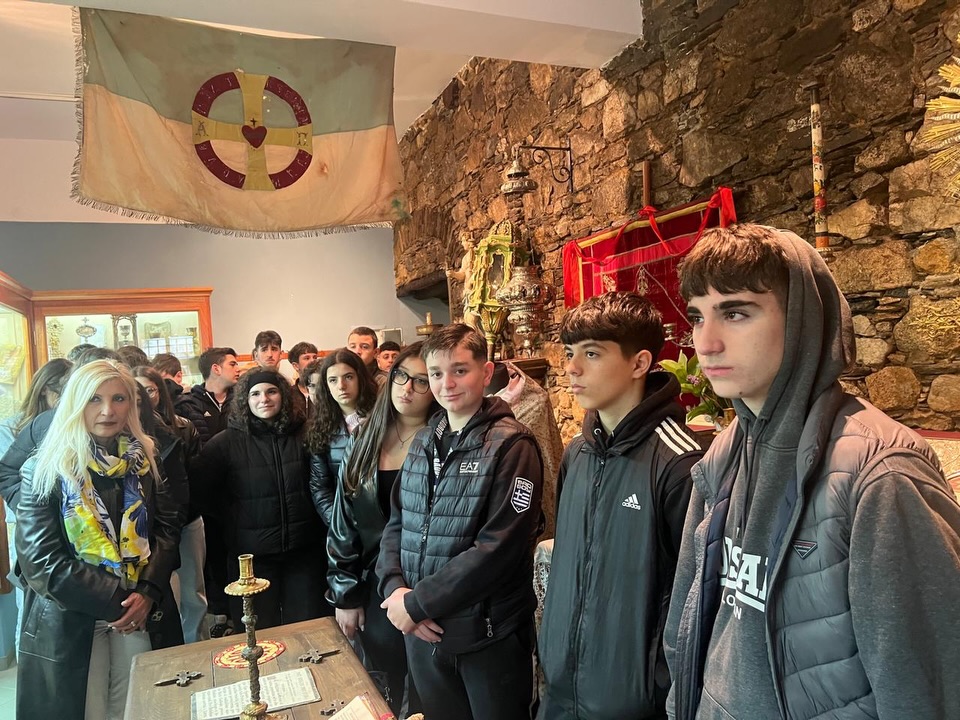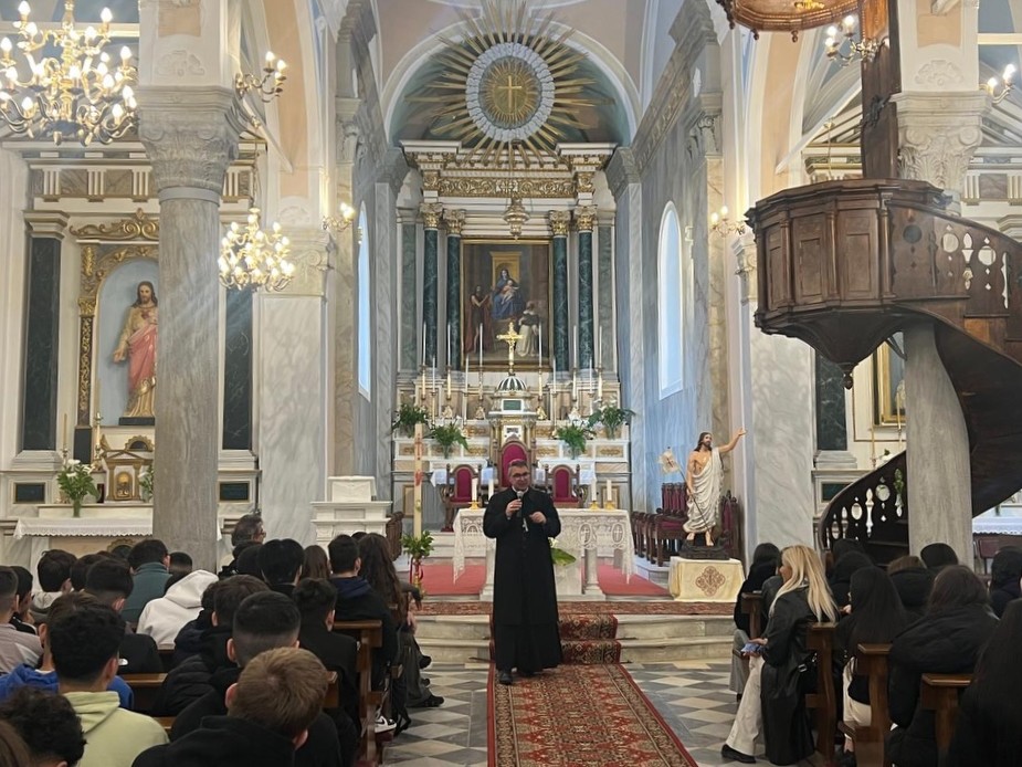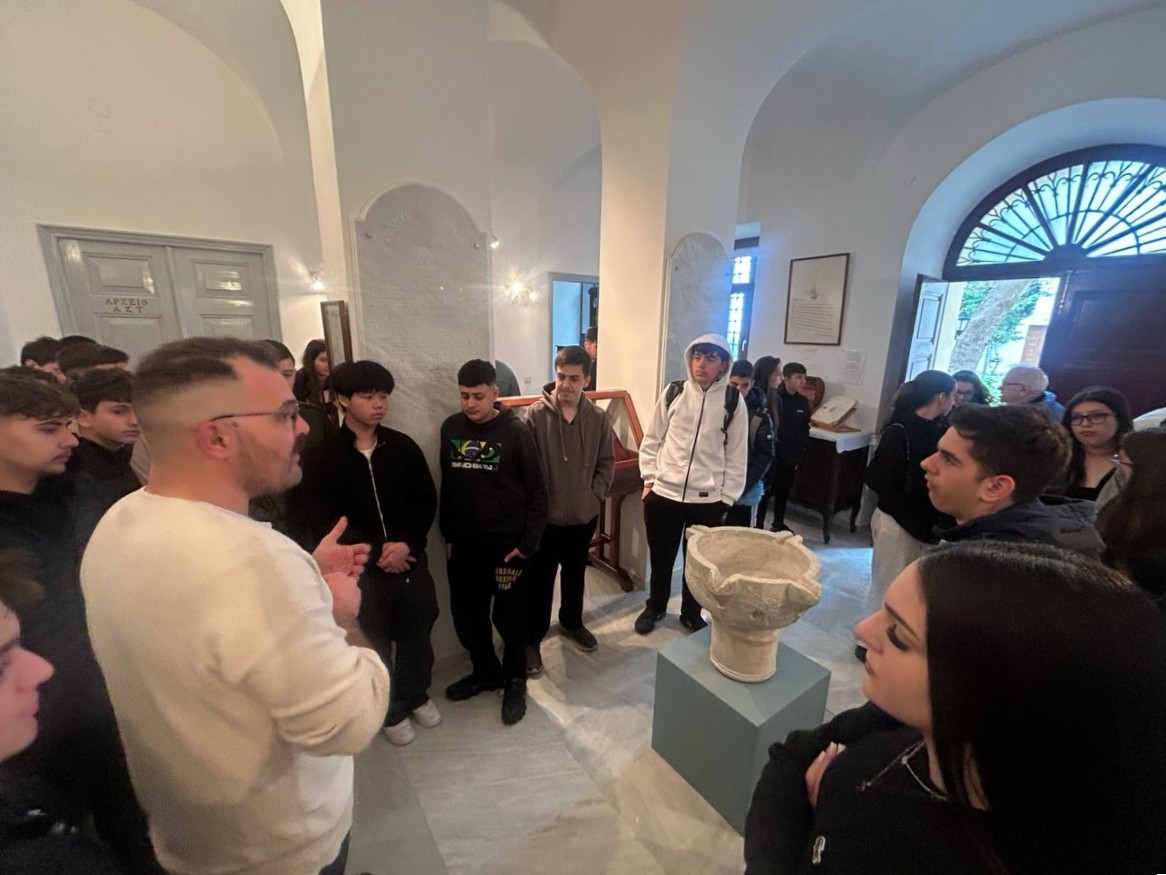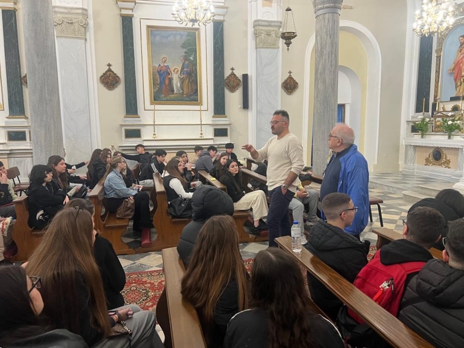 Πρώτος σταθμός ήταν το Αποστολικό Κέντρο «Πίστη και Πολιτισμός» στην Ξυνάρα, όπου οι μαθητές και οι μαθήτριες επισκέφθηκαν το μουσείο και τη βιβλιοθήκη, ξεναγήθηκαν από τον απόφοιτο της Λεοντείου Σχολής Νέας Σμύρνης, κ. Μάρκο Παλαμάρη, ερχόμενοι σε επαφή με την πνευματική και πολιτιστική κληρονομιά του τόπου. Ξεχωριστό ενδιαφέρον παρουσίασε η επίσκεψη στην καθολική εκκλησία της Παναγίας του Ροδαρίου, όπου, μέσα από την παρουσίαση του Σεβασμιωτάτου Αρχιεπισκόπου Νάξου–Τήνου, Ιωσήφ, αναδείχθηκε η αρμονική συνύπαρξη Ορθοδόξων και Καθολικών στο νησί της Τήνου, καθώς και το κλίμα αλληλοσεβασμού που χαρακτηρίζει την τοπική κοινωνία.