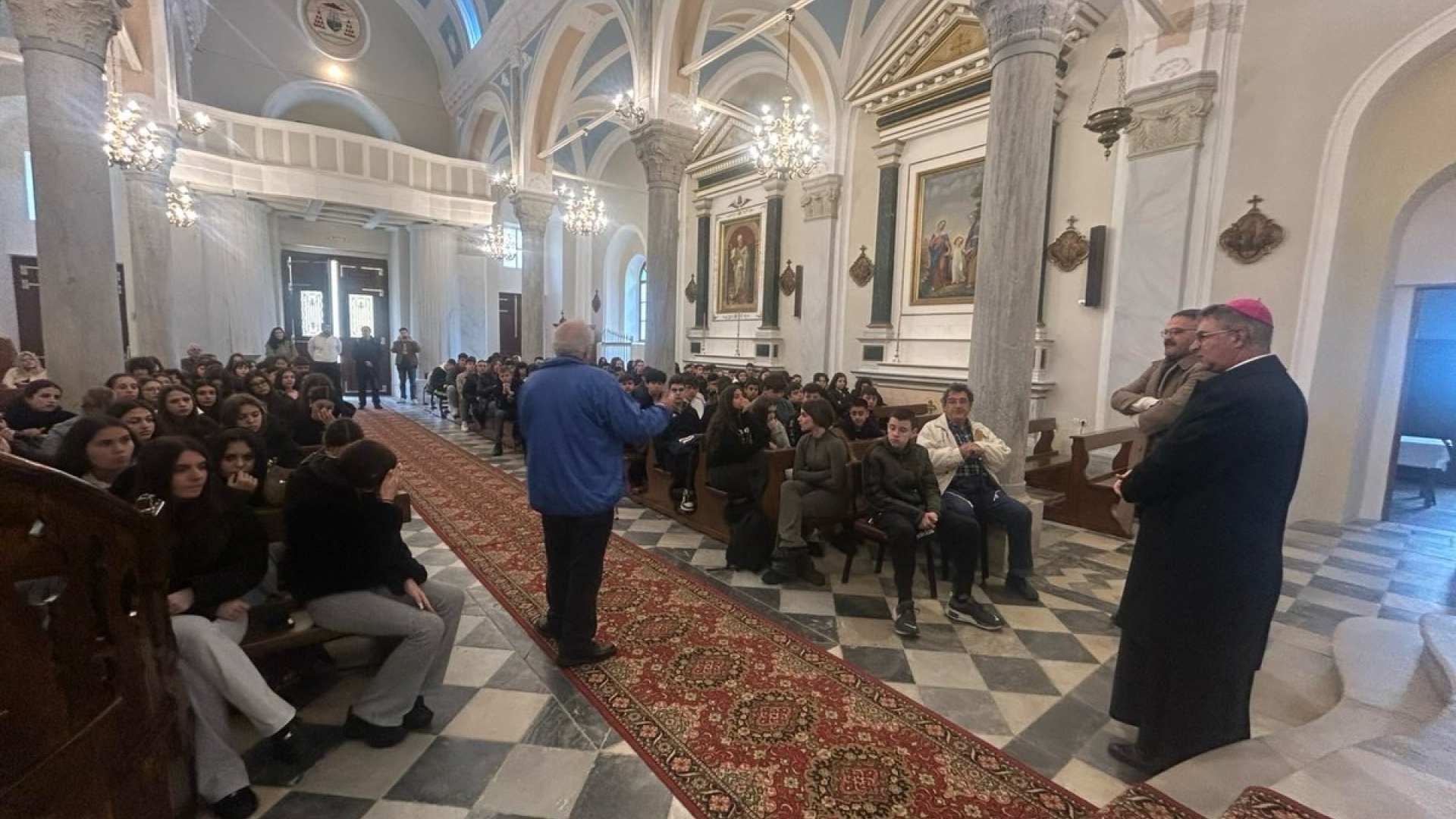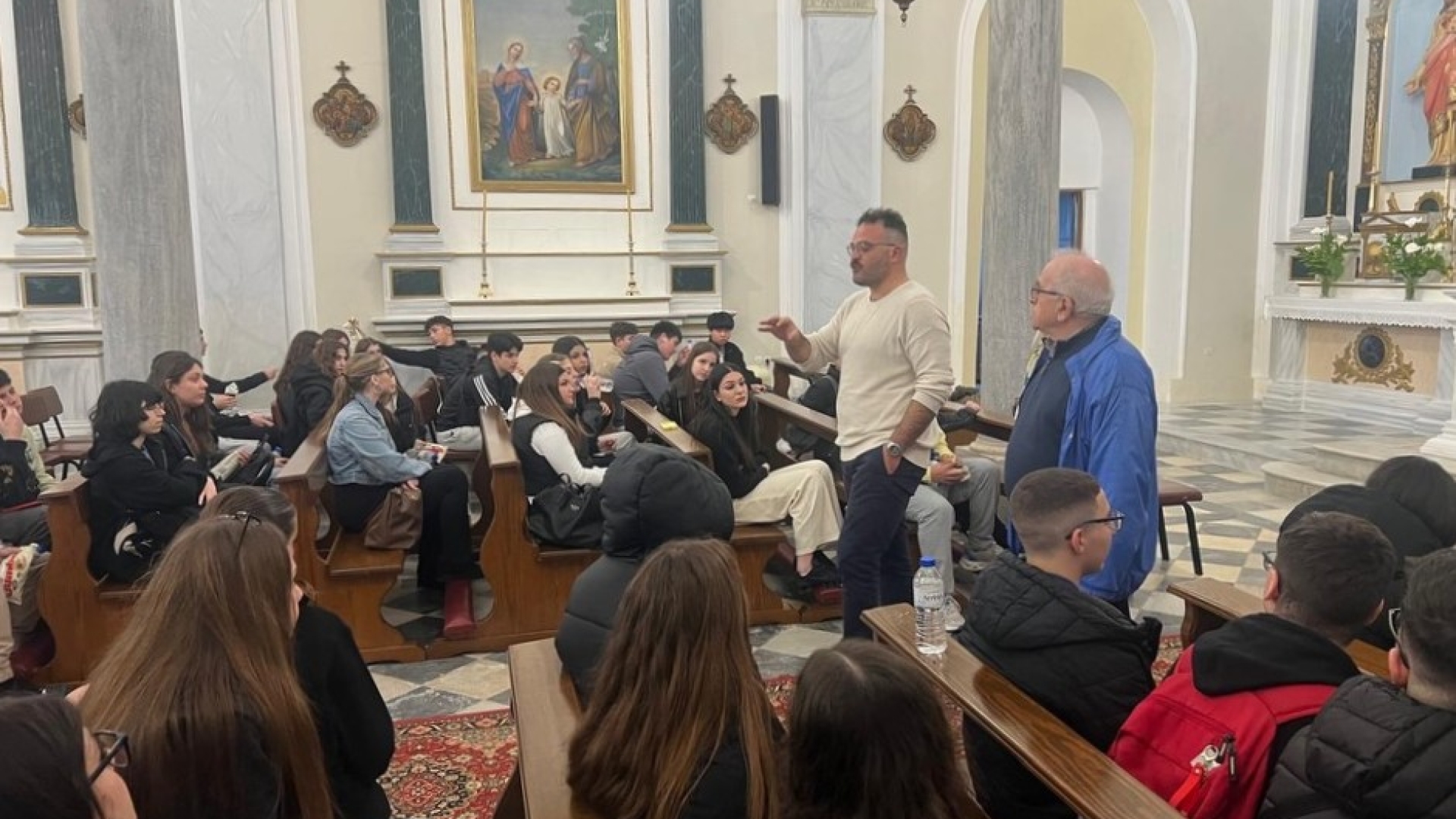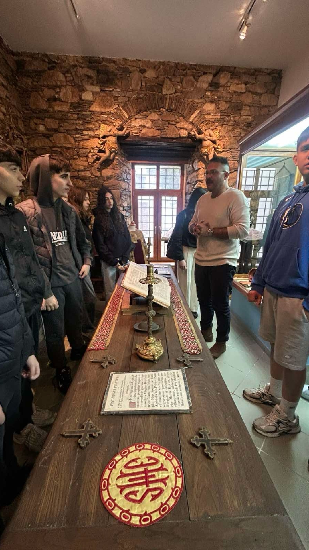 Πρώτος σταθμός ήταν το Αποστολικό Κέντρο «Πίστη και Πολιτισμός» στην Ξυνάρα, όπου οι μαθητές και οι μαθήτριες επισκέφθηκαν το μουσείο και τη βιβλιοθήκη, ξεναγήθηκαν από τον απόφοιτο της Λεοντείου Σχολής Νέας Σμύρνης, κ. Μάρκο Παλαμάρη, ερχόμενοι σε επαφή με την πνευματική και πολιτιστική κληρονομιά του τόπου. Ξεχωριστό ενδιαφέρον παρουσίασε η επίσκεψη στην καθολική εκκλησία της Παναγίας του Ροδαρίου, όπου, μέσα από την παρουσίαση του Σεβασμιωτάτου Αρχιεπισκόπου Νάξου–Τήνου, Ιωσήφ, αναδείχθηκε η αρμονική συνύπαρξη Ορθοδόξων και Καθολικών στο νησί της Τήνου, καθώς και το κλίμα αλληλοσεβασμού που χαρακτηρίζει την τοπική κοινωνία.