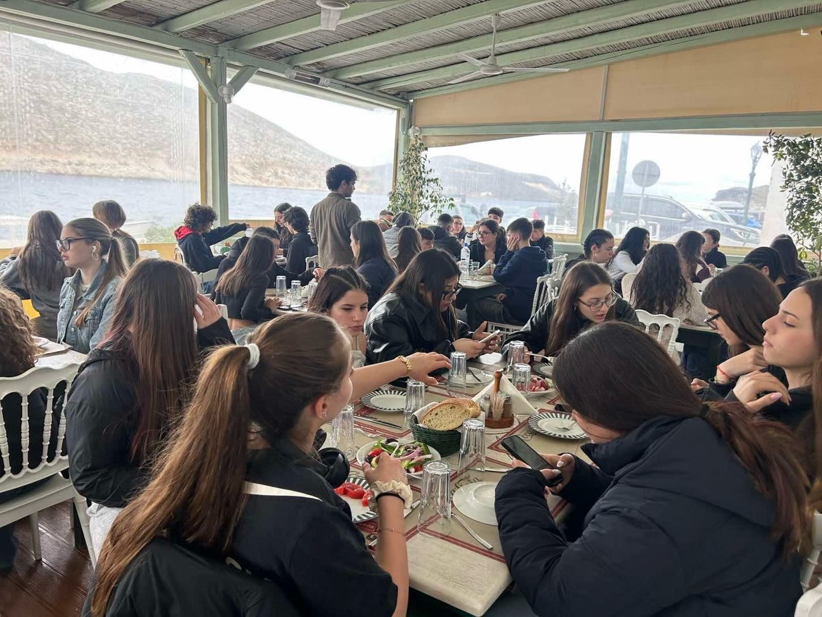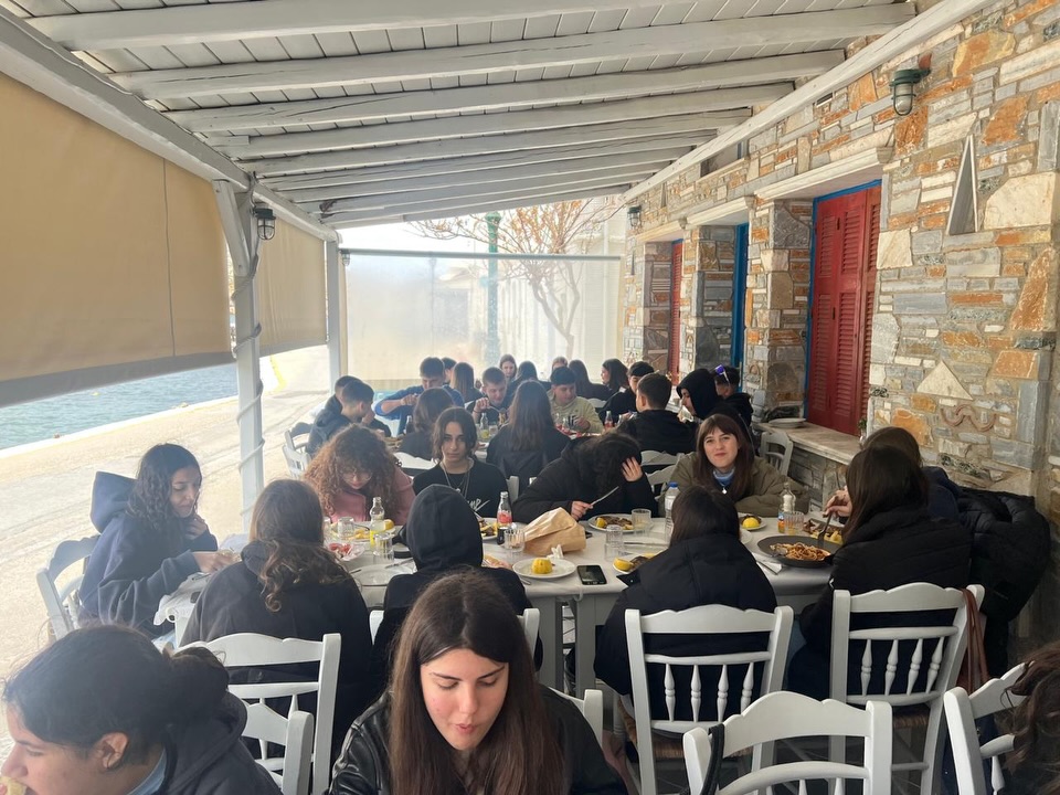 Η ημέρα συνεχίστηκε με γεύμα στον Πάνορμο, γεμάτο παραδοσιακές γεύσεις, και ολοκληρώθηκε με έναν χαλαρό περίπατο στα σοκάκια της Χώρας, μετά από μια σύντομη στάση για καφέ και γλυκό στον γραφικό Πύργο.