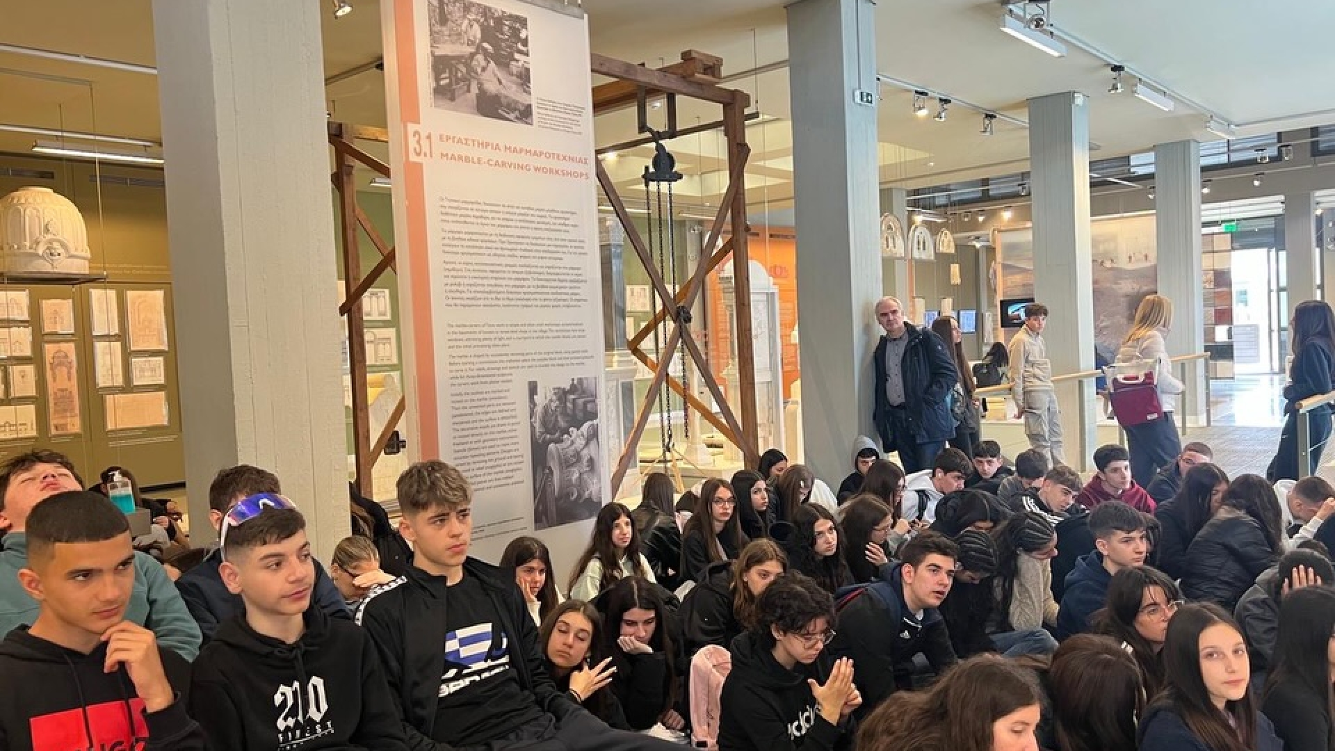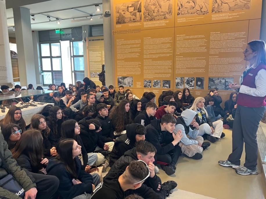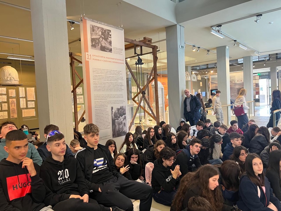 Στη συνέχεια, επισκεφθήκαμε το Μουσείο Μαρμαροτεχνίας στον Πύργο, όπου οι μαθητές γνώρισαν την τέχνη της εξόρυξης και της επεξεργασίας του μαρμάρου, εντυπωσιασμένοι από τη δεξιοτεχνία και την ιστορία της.