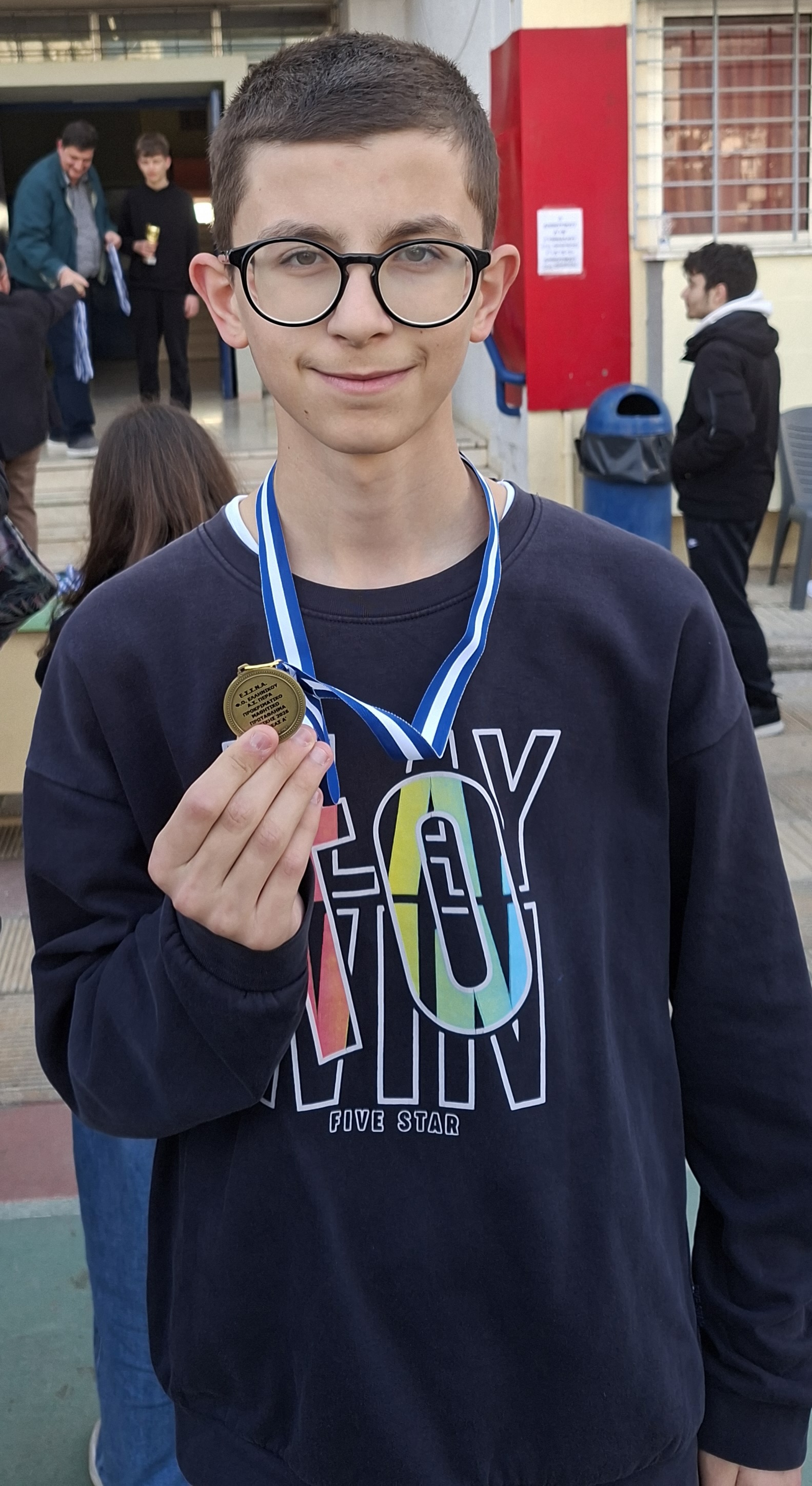 Πρόσφατα διακρίθηκε στο Προκριματικό Ατομικό Πρωτάθλημα Μαθητών - Μαθητριών Α’ Τομέα Αττικής 2026 της Ε.Σ.Σ.Ν.Α., κατακτώντας την τρίτη (3η) θέση στη γενική κατάταξη, επίδοση που αποτελεί σημαντική επιτυχία και τιμά τόσο τον ίδιο όσο και τη σχολική μας κοινότητα.
