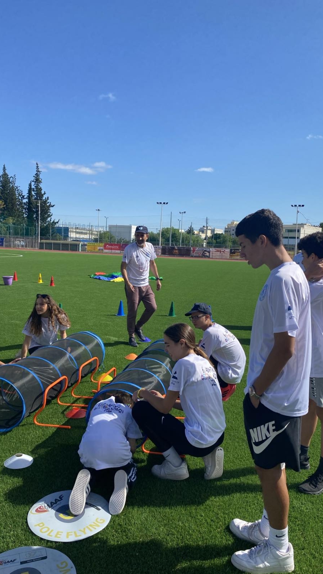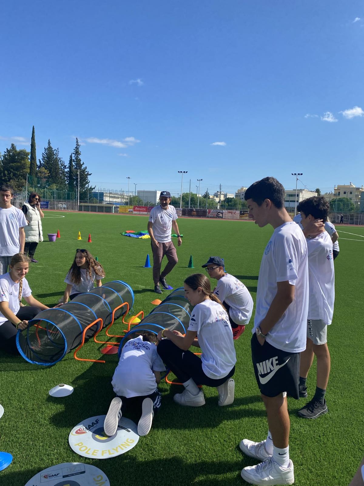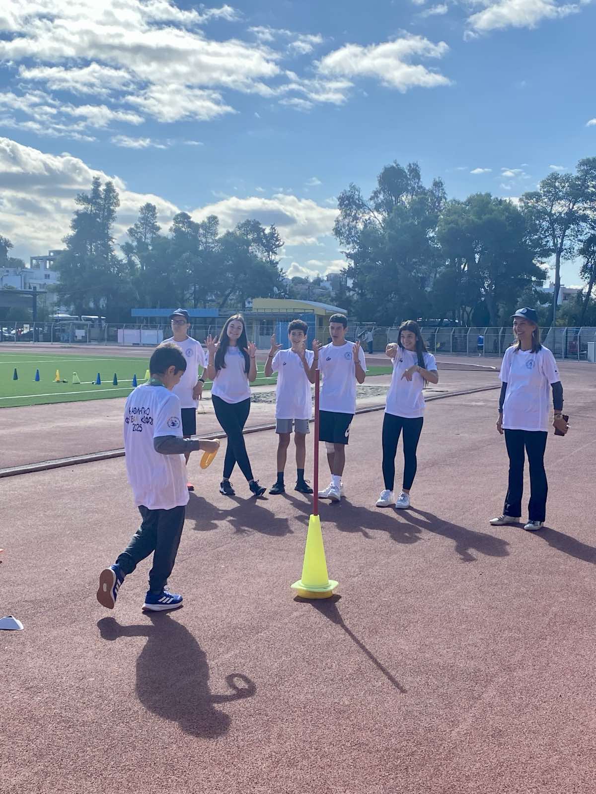 Οι μαθητές/-τριές μας βοήθησαν στην οργάνωση και την υλοποίηση των αγωνισμάτων στίβου. Στήριξαν με ενθουσιασμό τους μικρούς αθλητές/-τριες με προβλήματα ακοής, οι οποίοι με τη σειρά τους απόλαυσαν τη χαρά της άθλησης και της ομαδικής προσπάθειας.