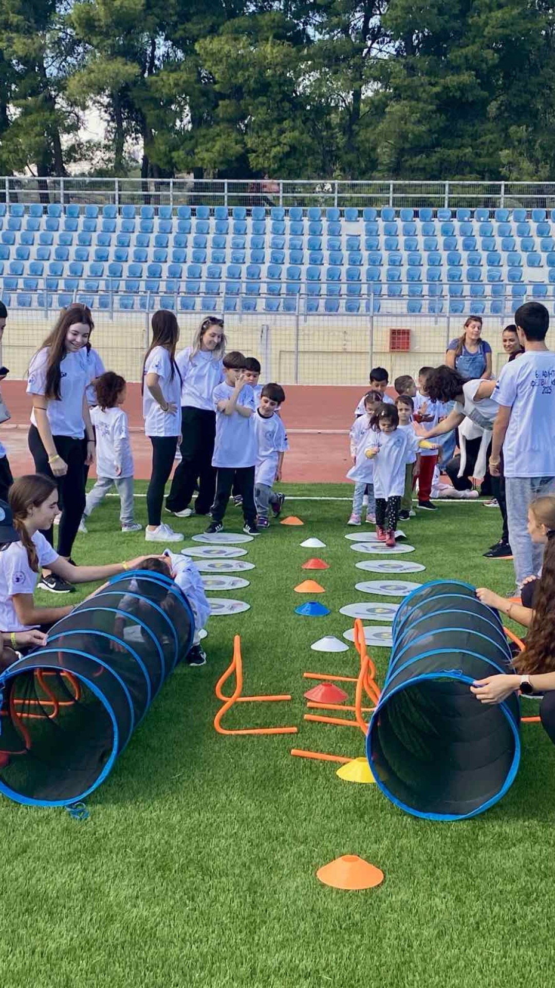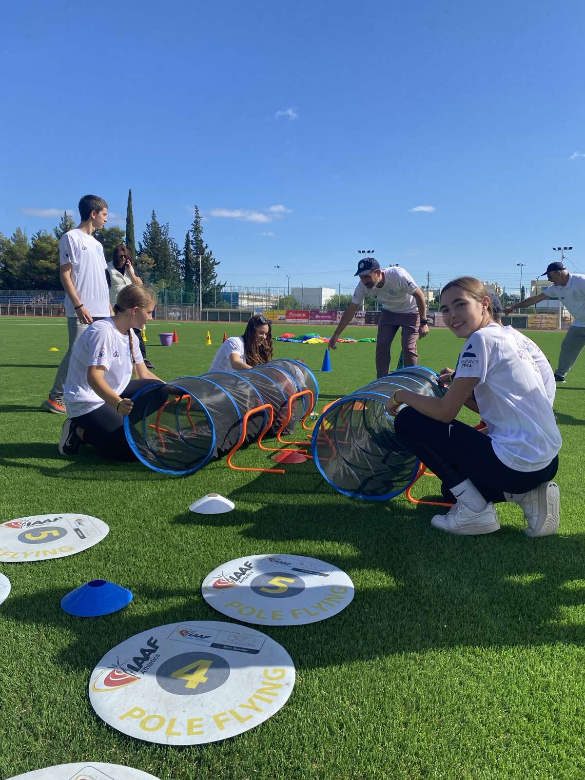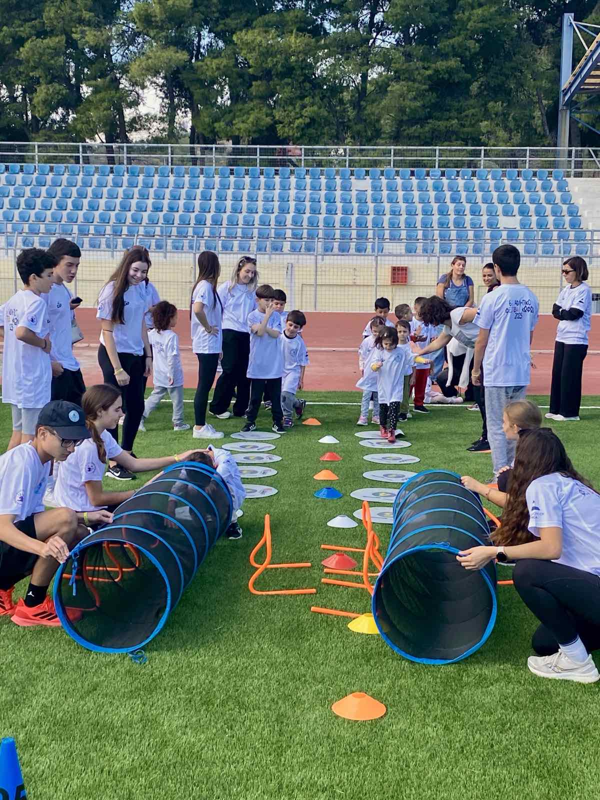Οι μαθητές/-τριές μας βοήθησαν στην οργάνωση και την υλοποίηση των αγωνισμάτων στίβου. Στήριξαν με ενθουσιασμό τους μικρούς αθλητές/-τριες με προβλήματα ακοής, οι οποίοι με τη σειρά τους απόλαυσαν τη χαρά της άθλησης και της ομαδικής προσπάθειας.