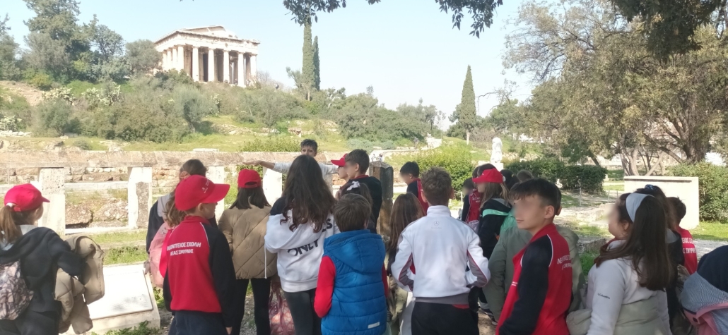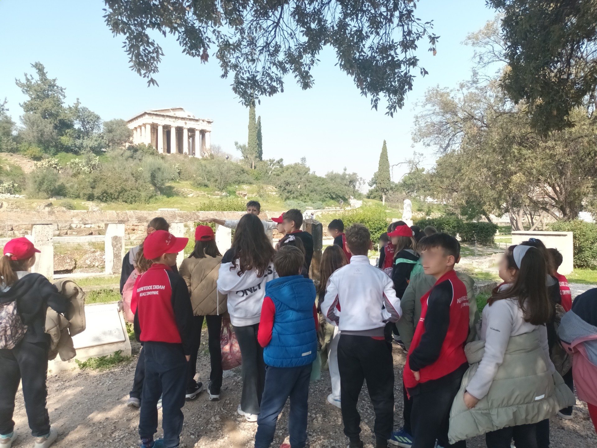 Οι μαθητές και οι μαθήτριες της Δ΄ τάξης ξεναγήθηκαν στην καρδιά της αρχαίας Αθήνας, στην Αρχαία Αγορά, που ήταν η έδρα της διοίκησης, της δικαιοσύνης αλλά και ο χώρος για το εμπόριο και τις επιχειρήσεις.