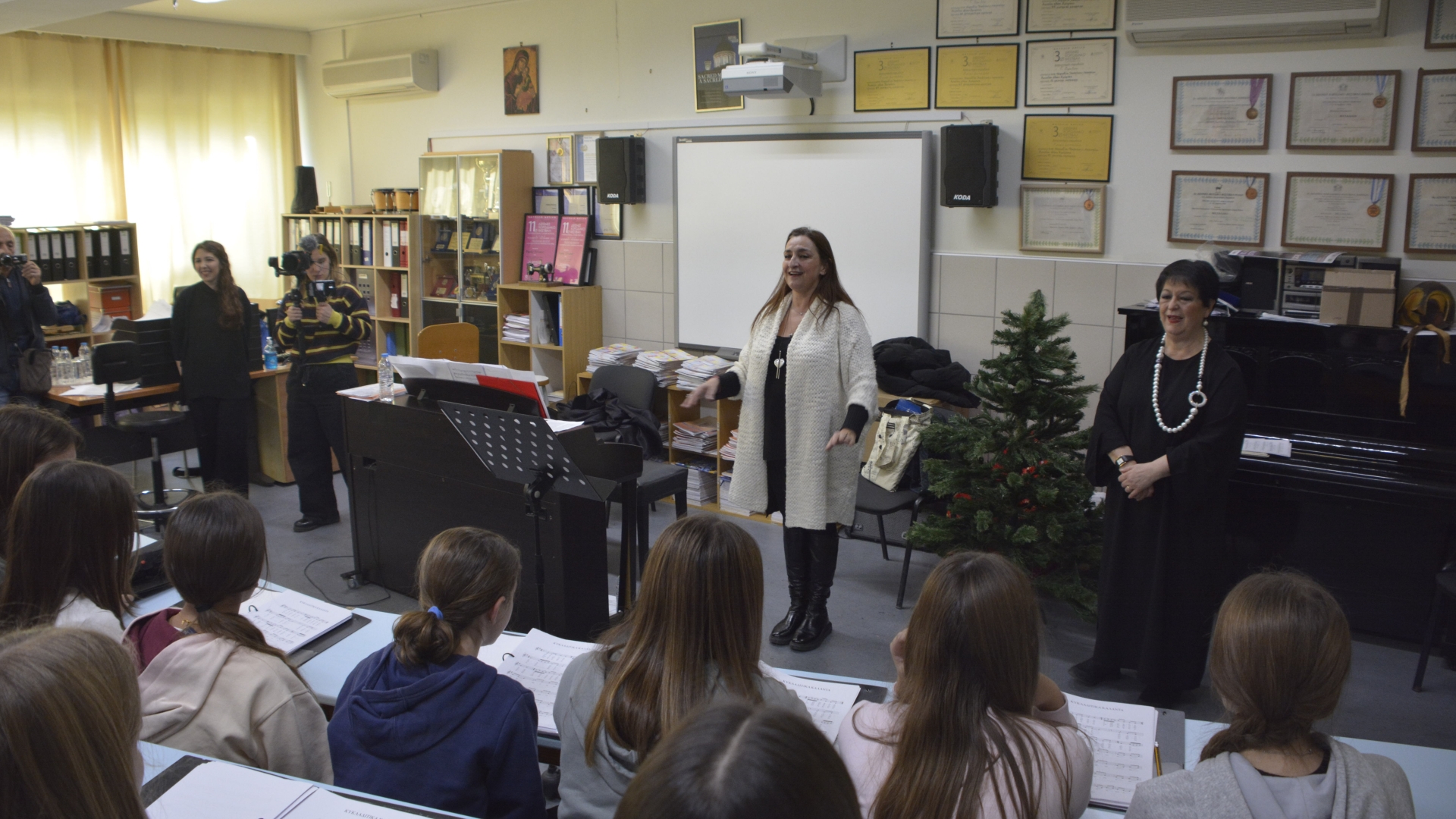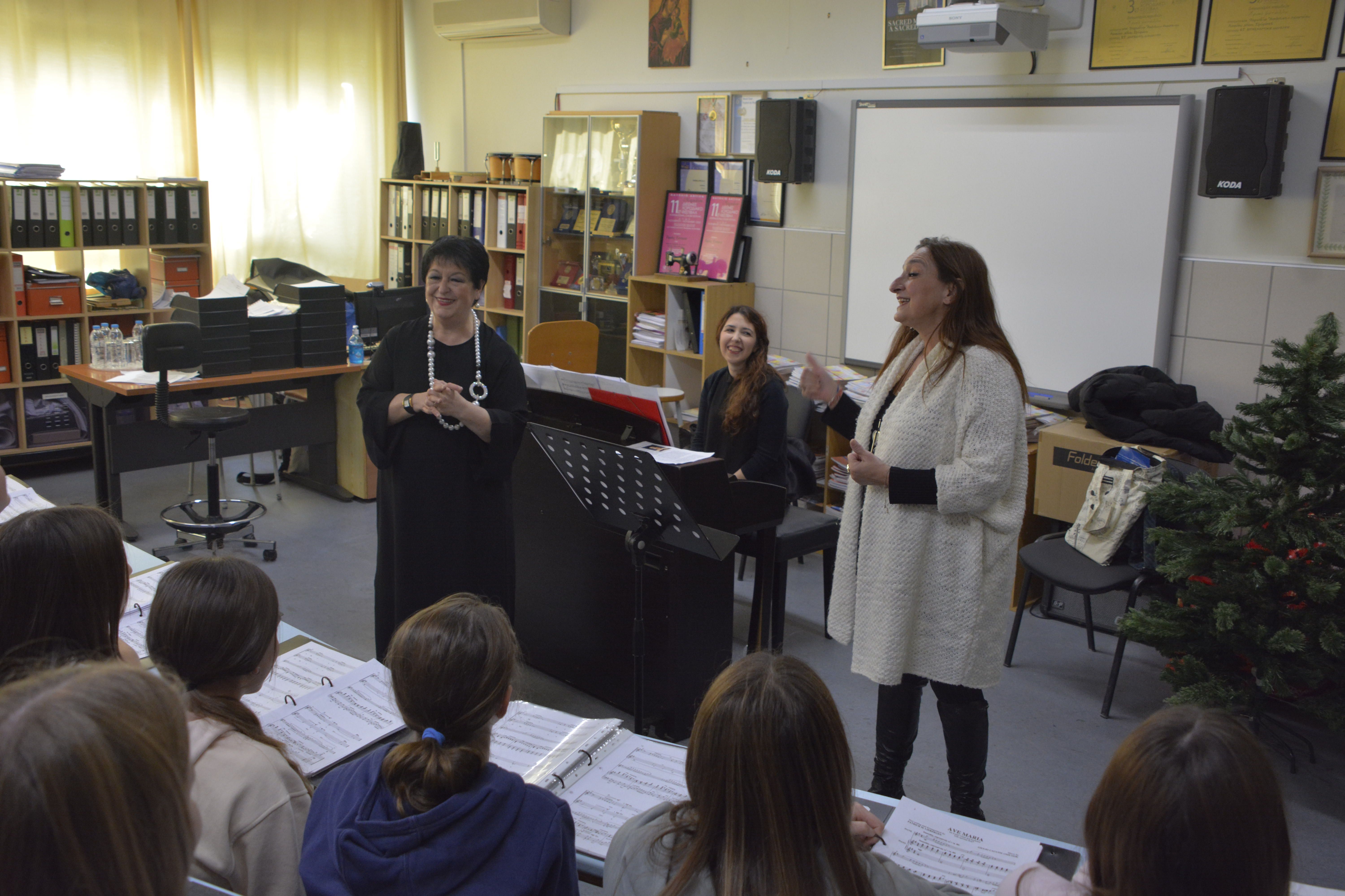 Η καταξιωμένη καλλιτέχνιδα συνομίλησε με τα παιδιά της χορωδίας και της μαθητικής ορχήστρας, μοιράστηκε εμπειρίες από την πορεία της στη μουσική και —το πιο μαγικό απ’ όλα— τραγούδησε μαζί τους, χαρίζοντάς τους μια μοναδική εμπειρία που θα θυμούνται για όλη τους τη ζωή!,