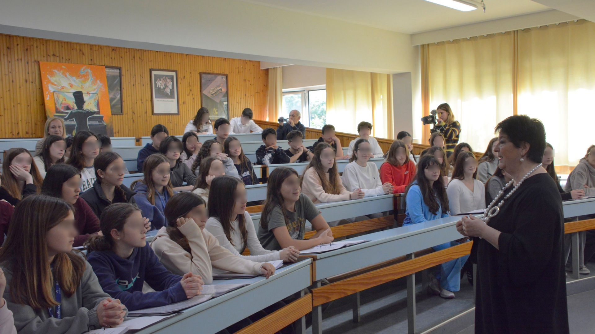Παράλληλα, απάντησε με προθυμία και ζεστασιά στις ερωτήσεις των μαθητών της σχολικής εφημερίδας, ενθαρρύνοντάς τους να κυνηγούν τα όνειρά τους με τόλμη και αγάπη για την τέχνη.