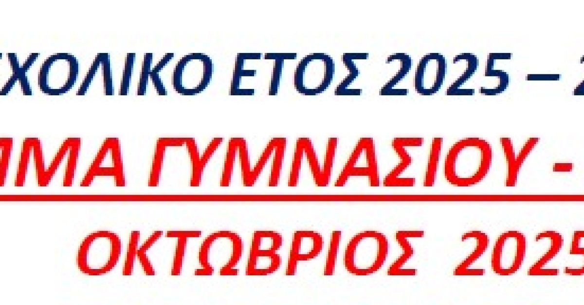 Παρακάτω μπορείτε να δείτε το πρόγραμμα Γυμνασίου-Λυκείου για το μήνα Οκτώβριο.