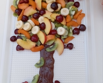 Μια φρουτένια έκπληξη περίμενε τους μικρούς μας μαθητές στο ΔΙΑΜΑΝΤΙΔΕΙΟ παιδικό Σταθμό της Λεοντείου Σχολή Αθηνών την ώρα του δεκατιανού γεύματος. Ένα λαχταριστό φρουτόδεντρο πήρε την θέση του στο τραπέζι που δημιουργήθηκε από μια ποικιλία φρούτων εποχής και ταχίνι!! Αφού το θαυμάσαμε και το μελετήσαμε καλά, το απολαύσαμε με πολύ όρεξη και αρκετή καλοκαιρινή διάθεση!! Καλό καλοκαίρι με δροσερές και φρουτένιες απολαύσεις!