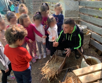 Οι μαθητές/-τριες του νηπιαγωγείου πήγαν εκπαιδευτική εκδρομή στο real kids, όπου γνώρισαν τη διαδικασία της σποράς, τα εργαλεία που χρησιμοποιούσαμε στο παρελθόν, την πινακωτή και τον παραδοσιακό ξυλόφουρνο. Γυρνώντας στο σχολείο, τα παιδιά ζύμωσαν με πολύ ενθουσιασμό το δικό τους ψωμάκι.